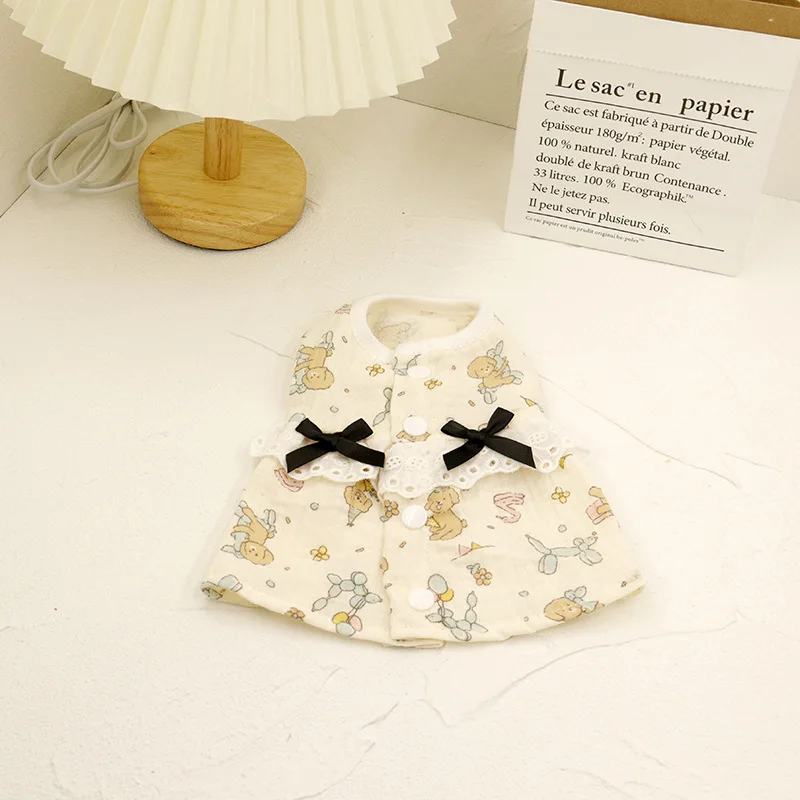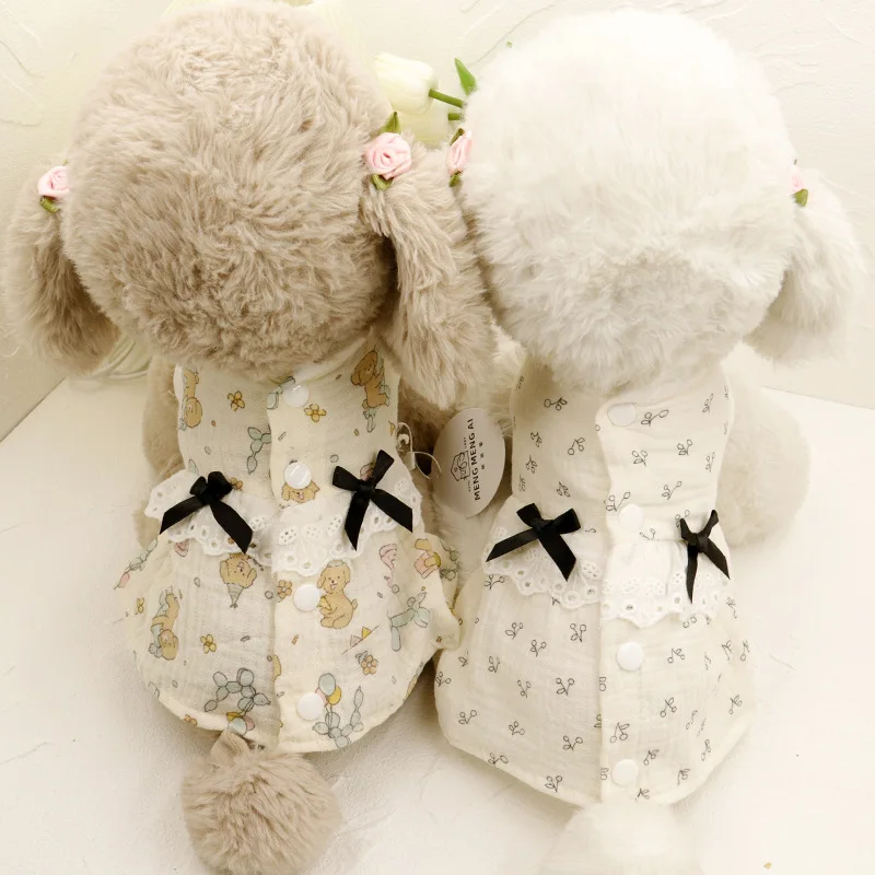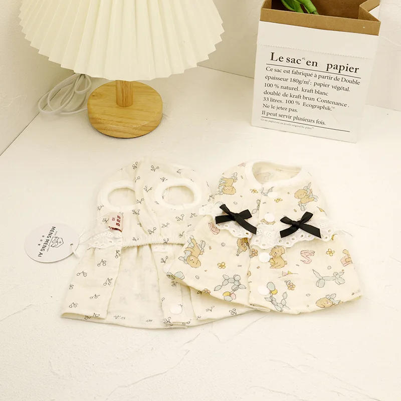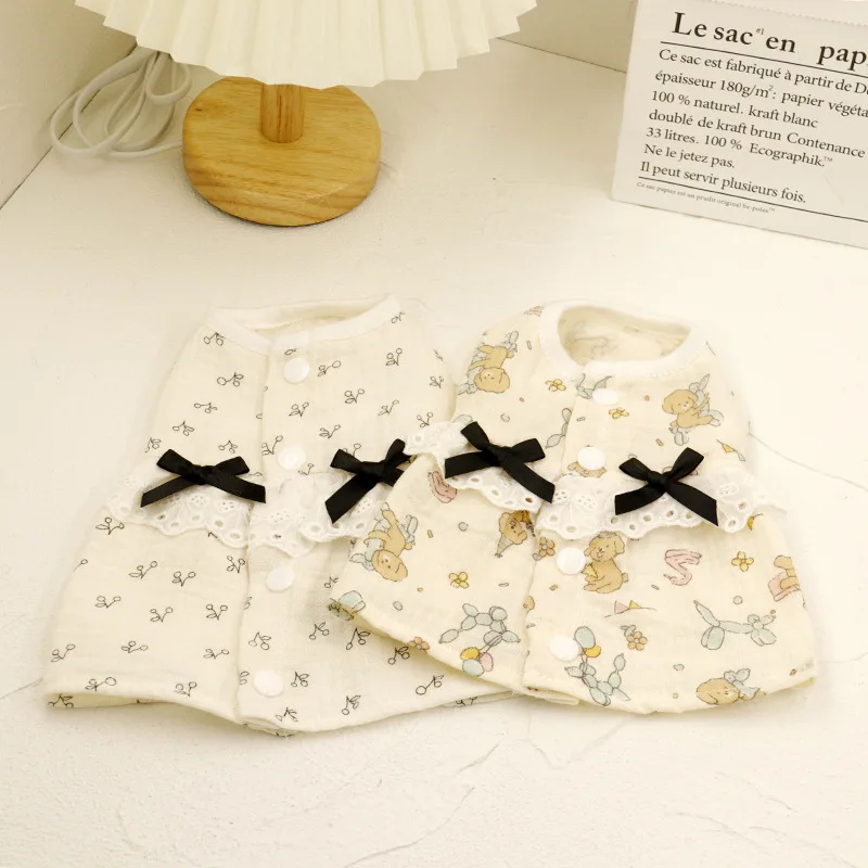 Vestido de primavera/verano para mascotas, ropa para gatos, chaleco de peluche, ropa de dormir para el hogar, cárdigan con lazo bonito, ropa para cachorros, ropa para perros pequeños