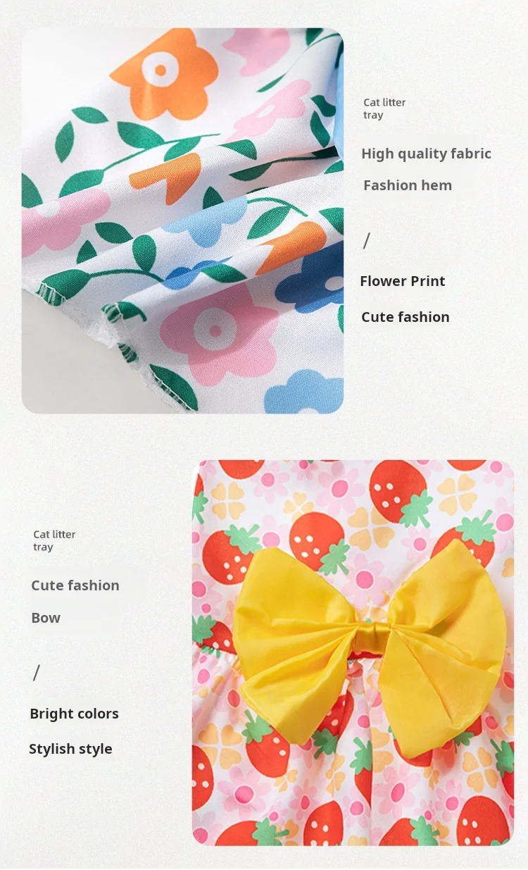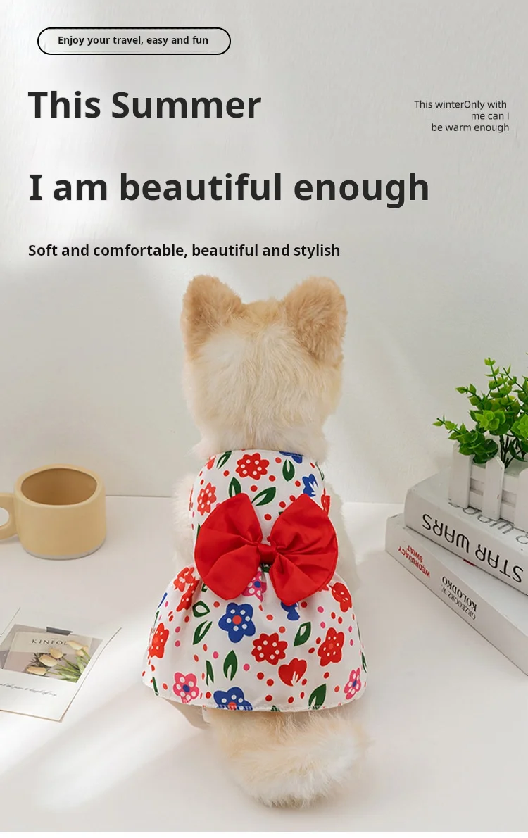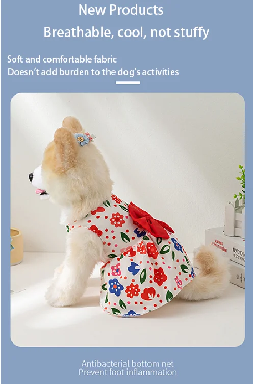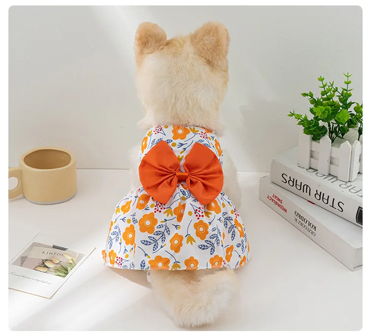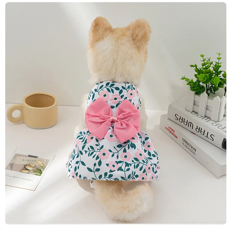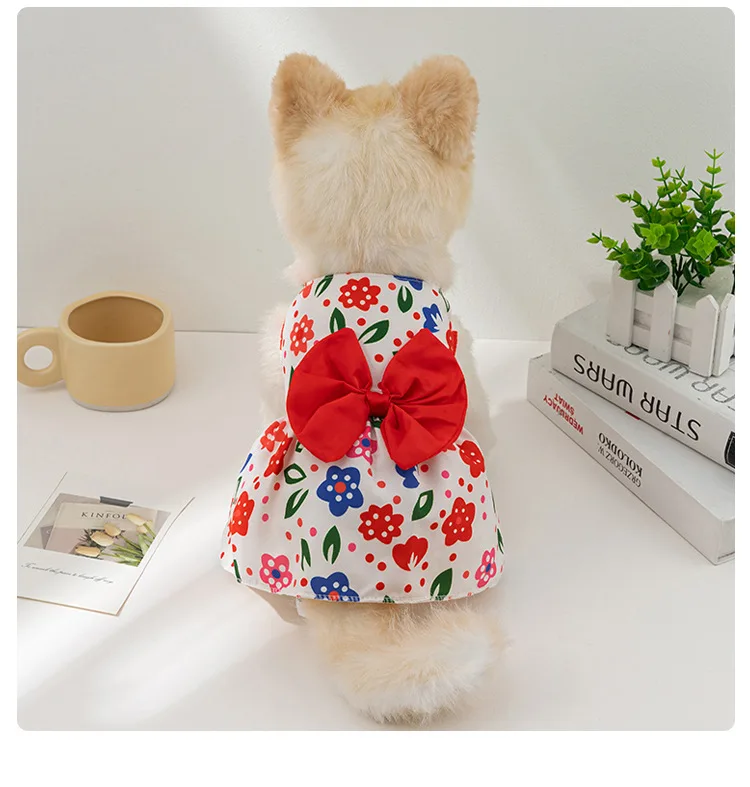Vestido de princesa con estampado de perro, falda fina con botón de lazo para cachorro y gato, ropa de Chihuahua para fiesta de boda, Verano