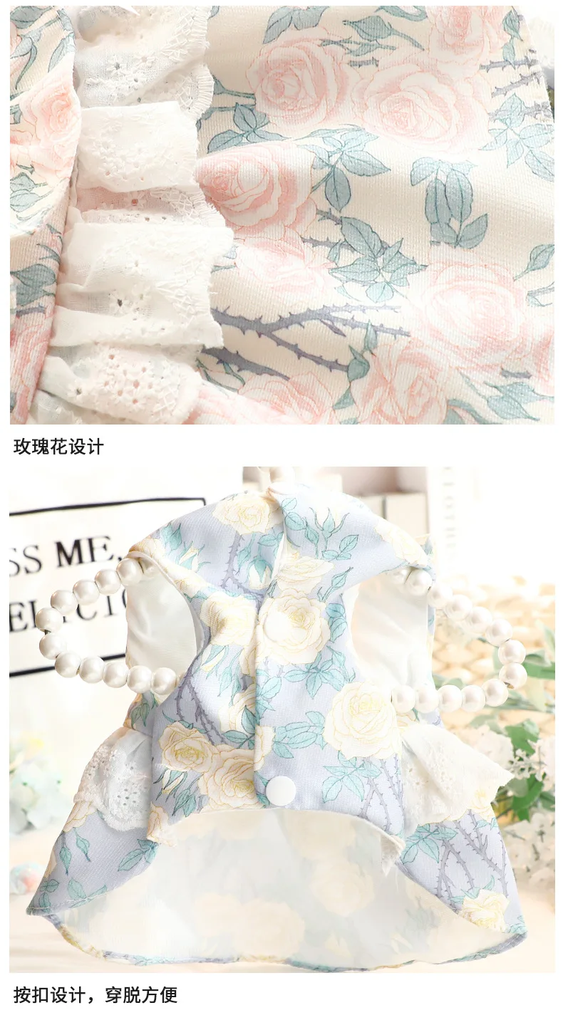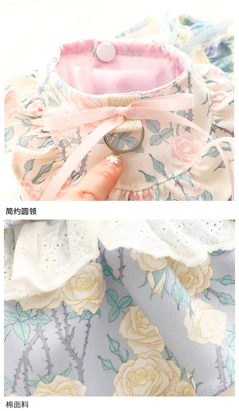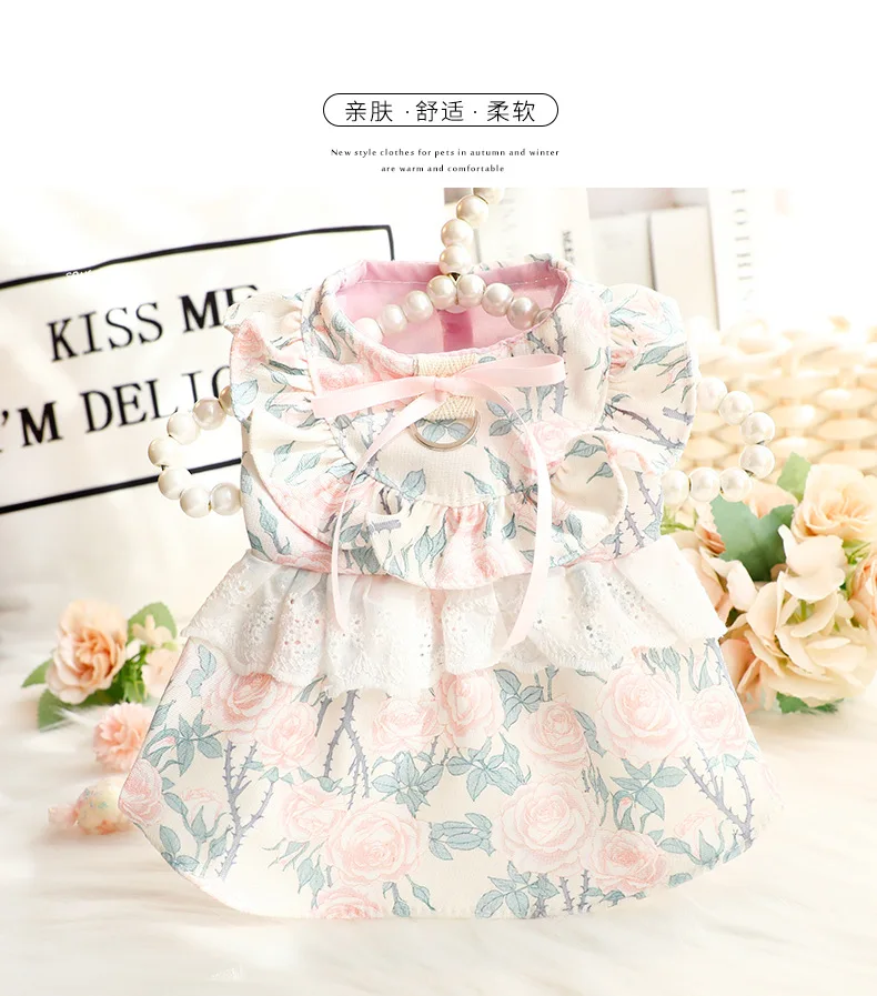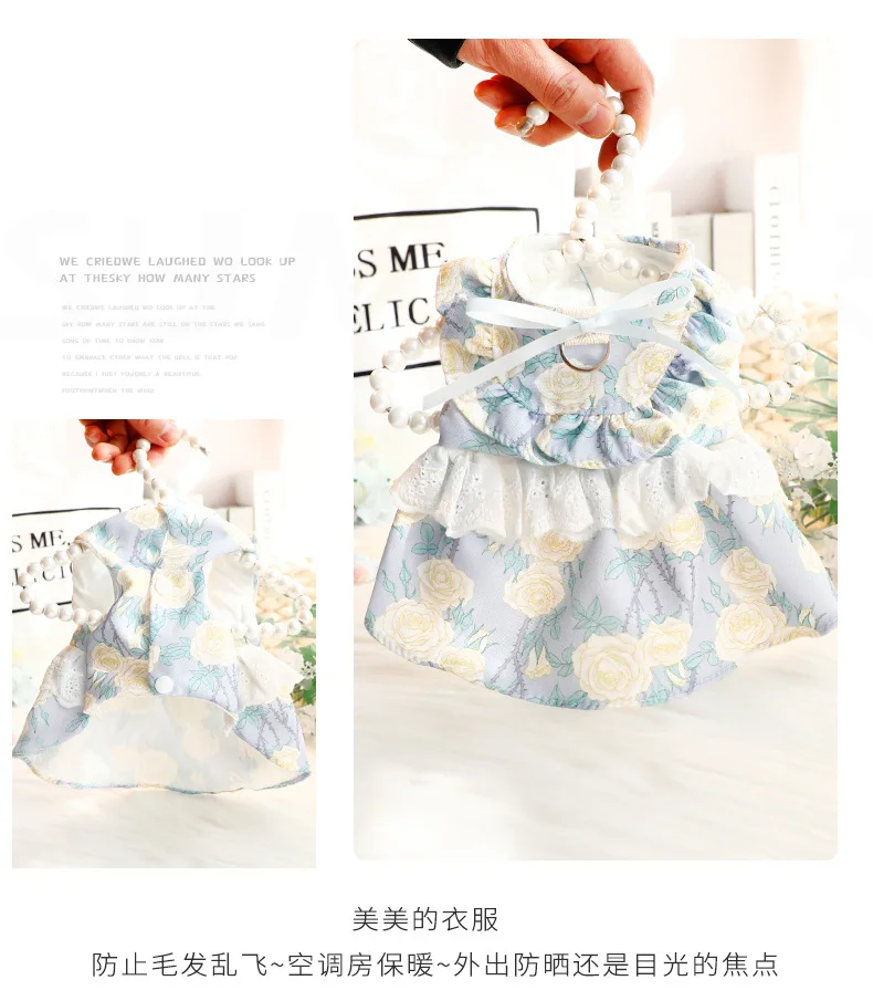 Vestido de princesa fino de primavera y verano, ropa con estampado Floral, falda con volantes y anillo en D para perros pequeños
