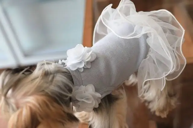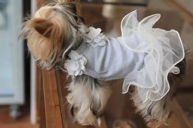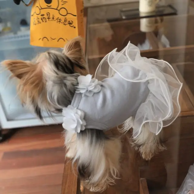 Vestido de princesa floral 3d para mascotas para gatos y perros pequeños - Falda elegante con volantes de encaje, vestido de fiesta de boda transpirable para Yorkie, Bichon