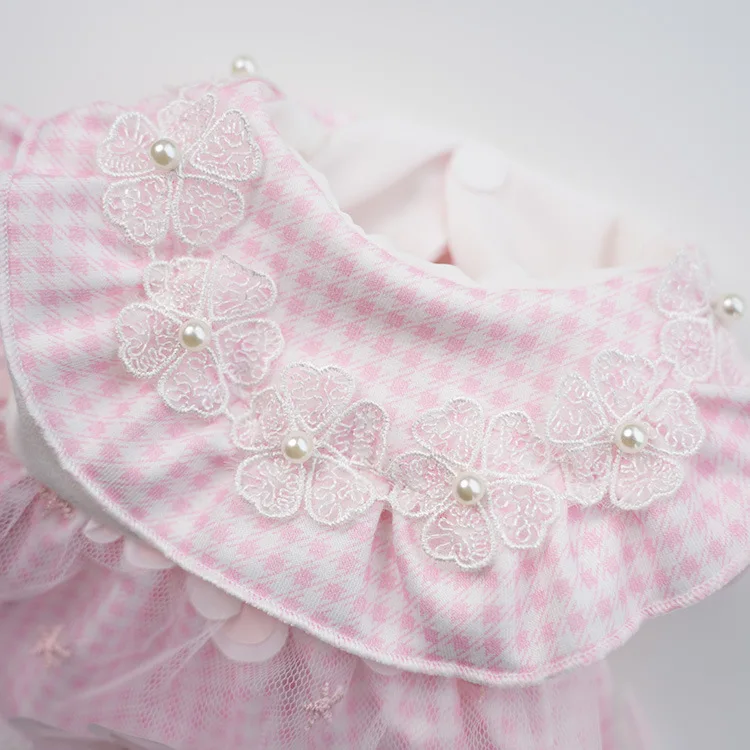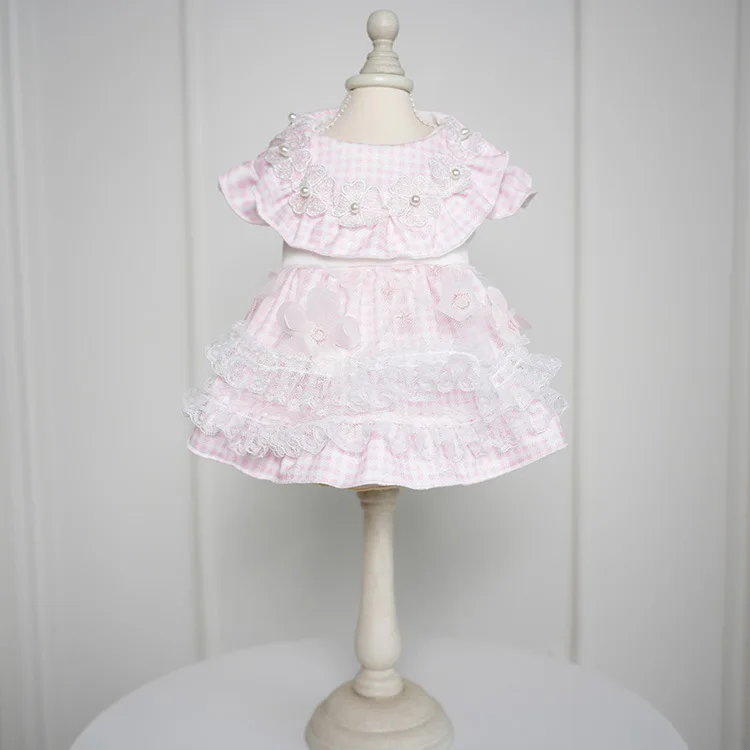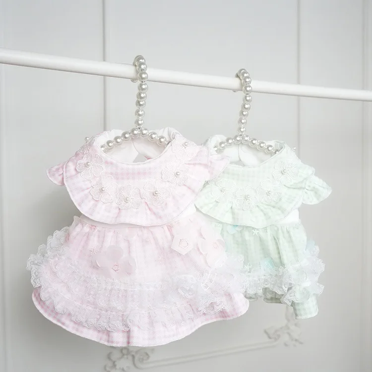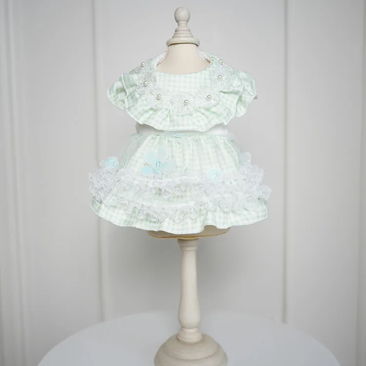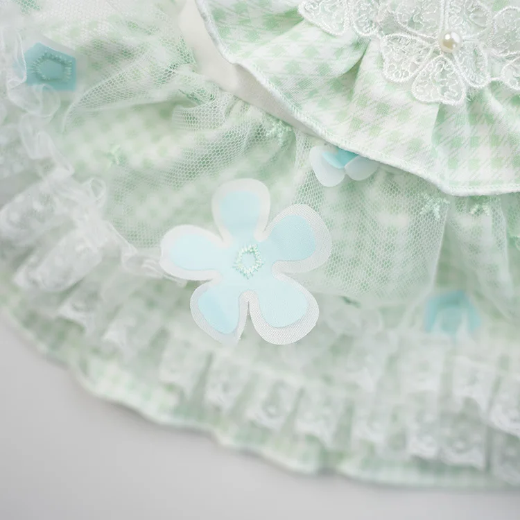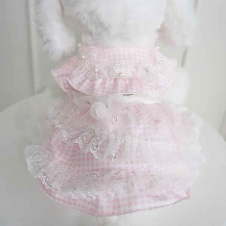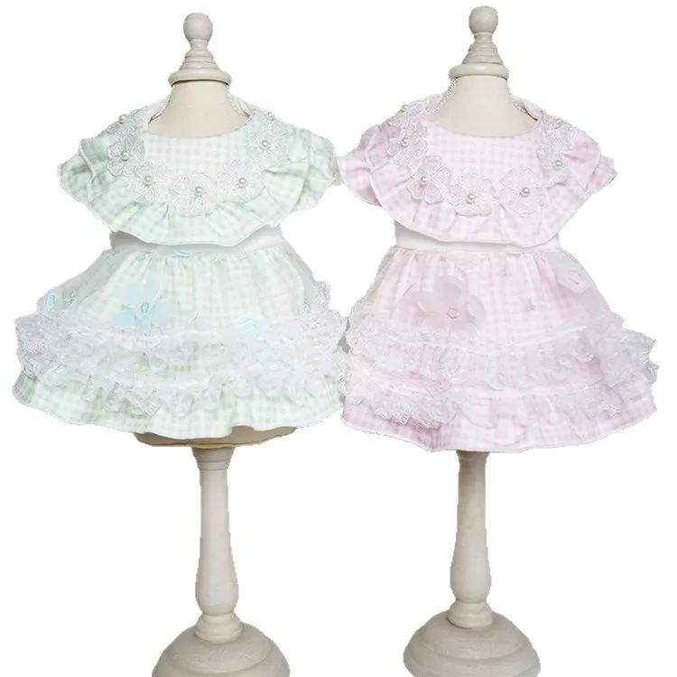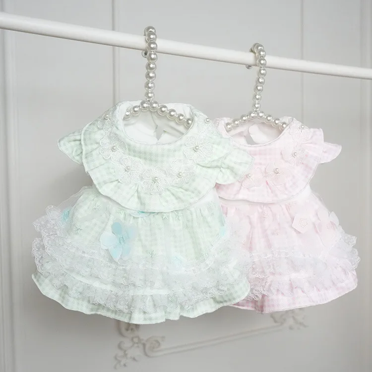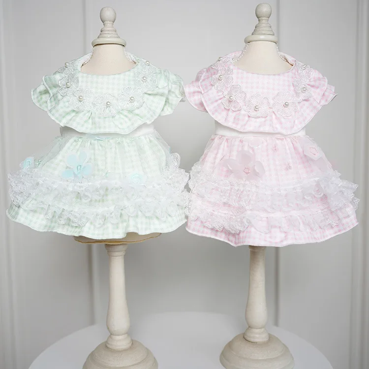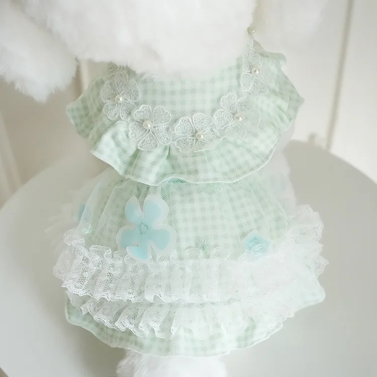 Vestido de princesa para mascotas con bordes de hojas de loto, vestido de encaje multicapa de encaje dulce, ropa de primavera para mascotas, ropa para perros y gatos pequeños