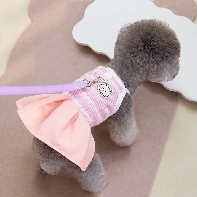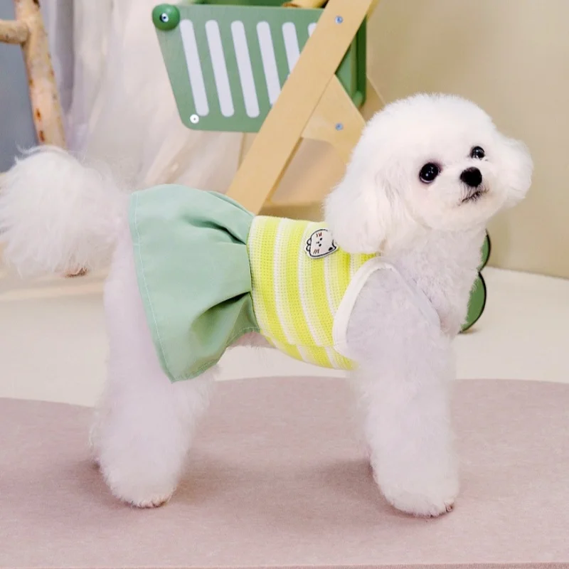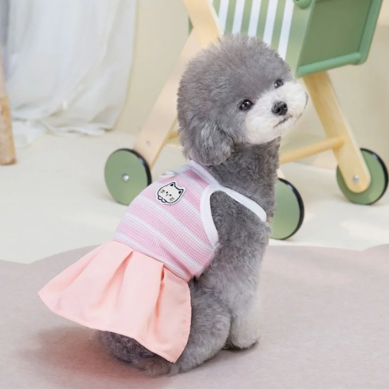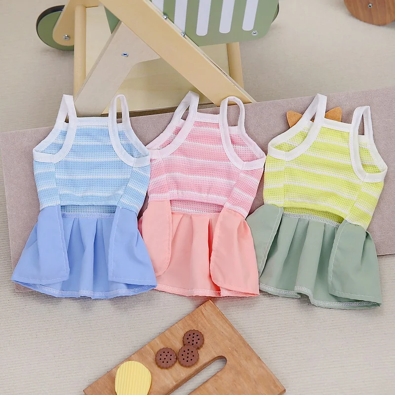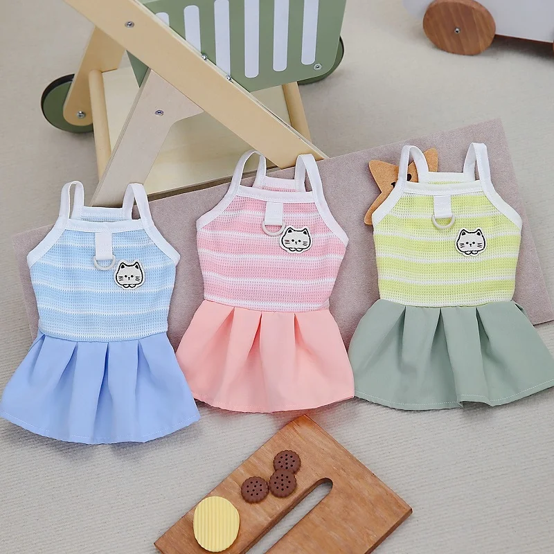 Vestido de princesa de verano para mascotas, ropa con estampado de dibujos animados para perros, falda con tirantes a rayas para cachorros, vestidos bonitos para gatos, ropa con tirantes para mascotas