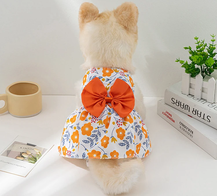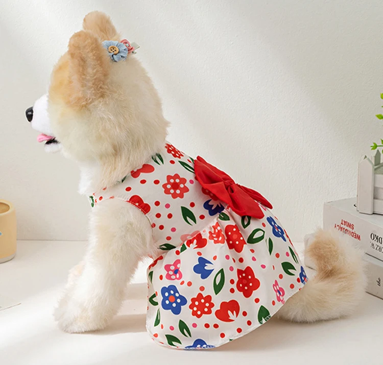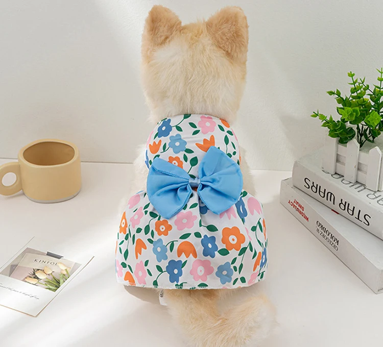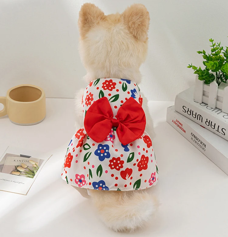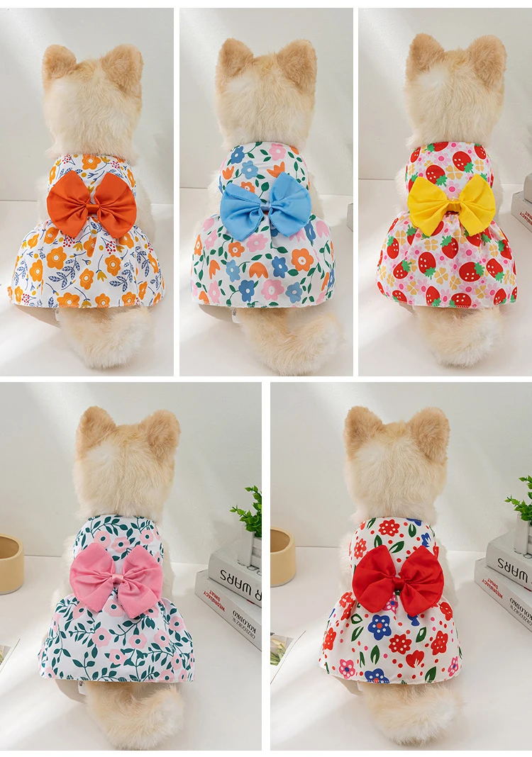 Vestido de princesa para perros de verano, ropa estampada bonita para cachorros con lazo, vestido transpirable para mascotas para gatos, perros pequeños y medianos, ropa para Chihuahua