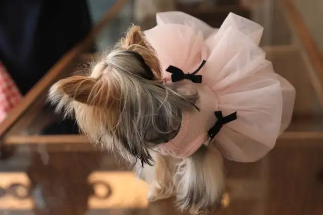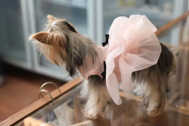 Vestido de princesa rosa para mascotas, chaleco transpirable con lazo, vestido de novia con brotes de flores para perros pequeños, vestido de fiesta de boda transpirable para Yorkie