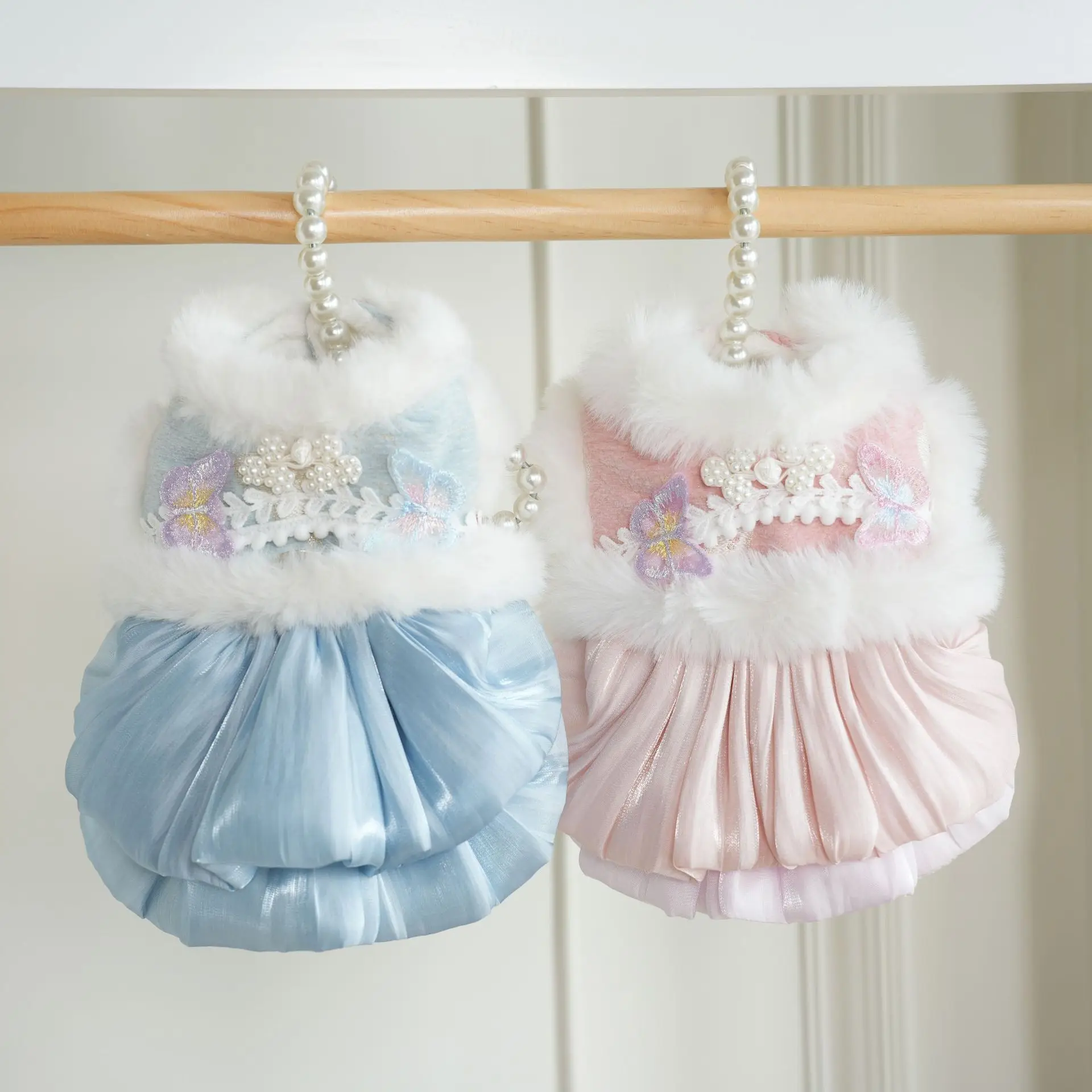 Vestido de princesa Tang para mascotas con patrón de conejo y mariposa, abrigo cálido de Año Nuevo para cachorros pequeños/medianos, ropa bonita para mascotas
