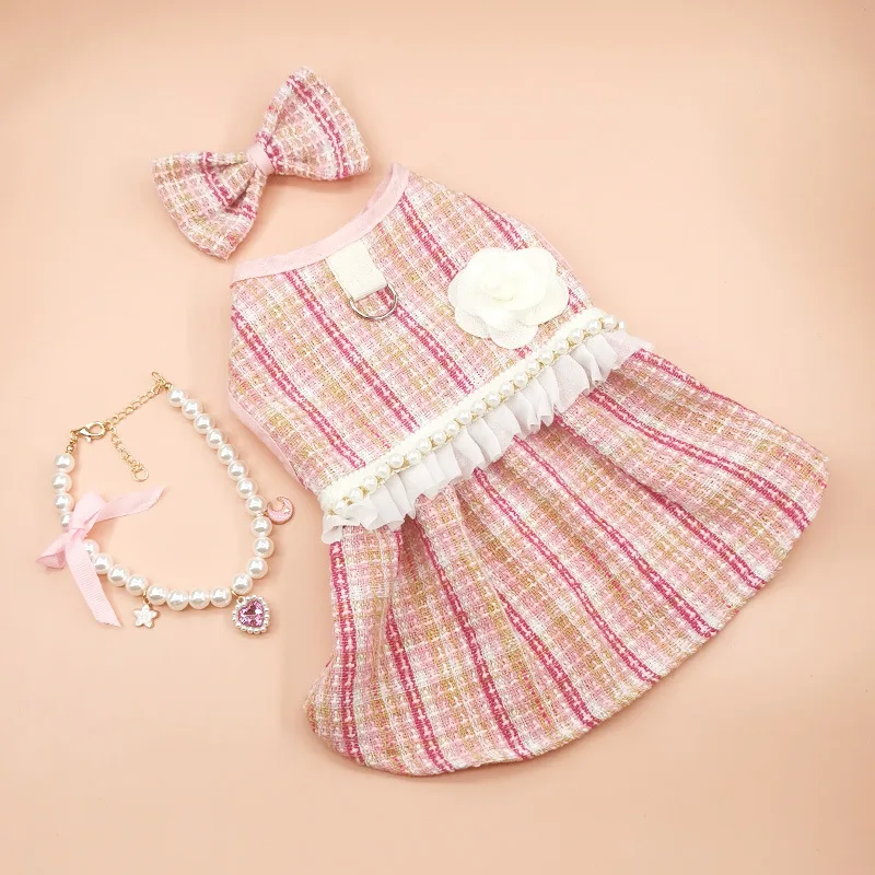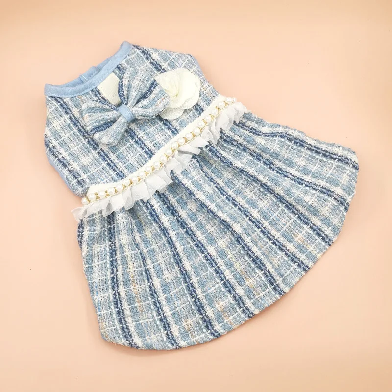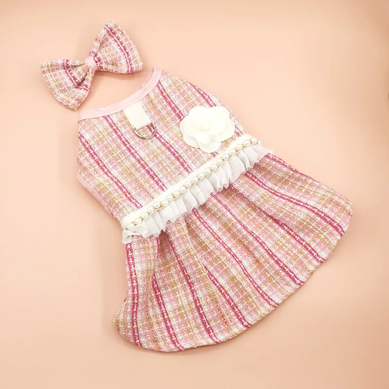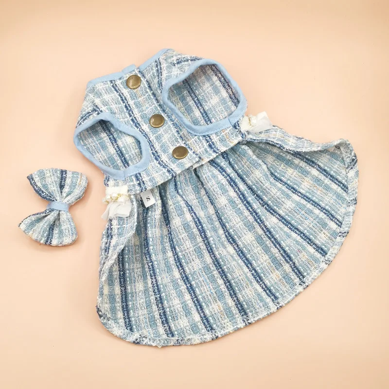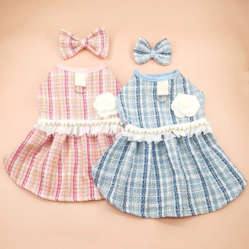 Vestido a rayas a cuadros para mascotas, falda para perros, abrigo para perros, falda para gatos, pajarita, vestidos para perros pequeños, Otoño e Invierno