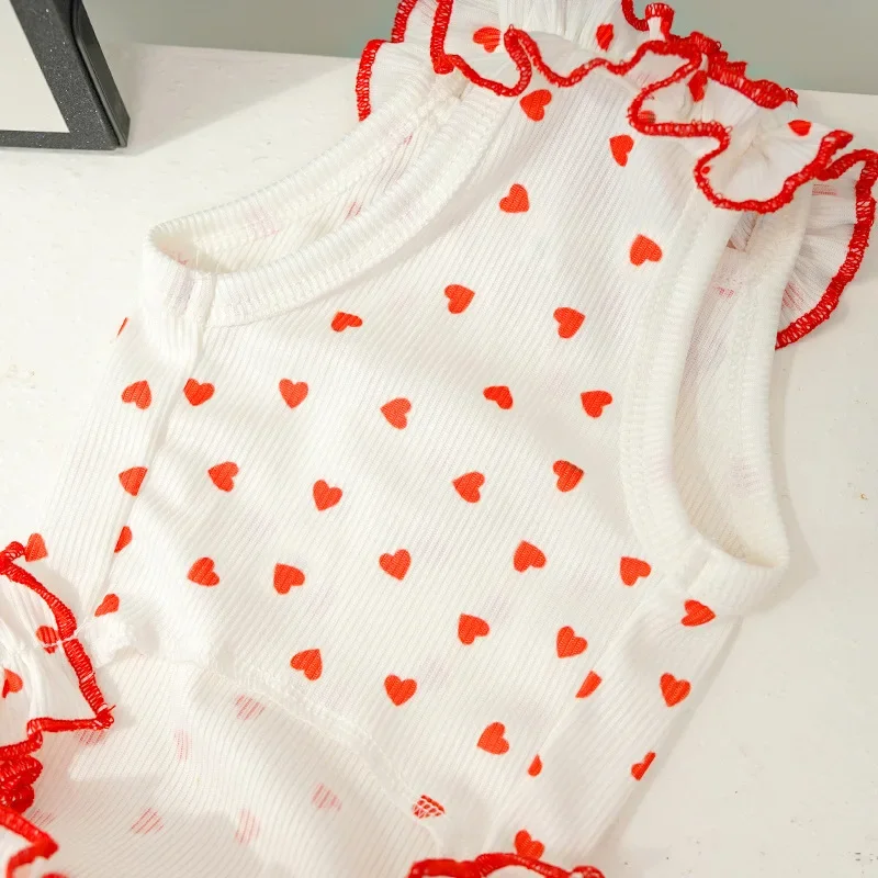 Vestido refrescante de verano para perros, ropa para perros con estampado de corazón y lazo fino, falda para mascotas, disfraz para cachorros y gatitos, chaleco para perros para niñas Chihuahua Bichon Yorkie