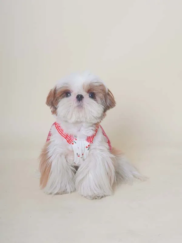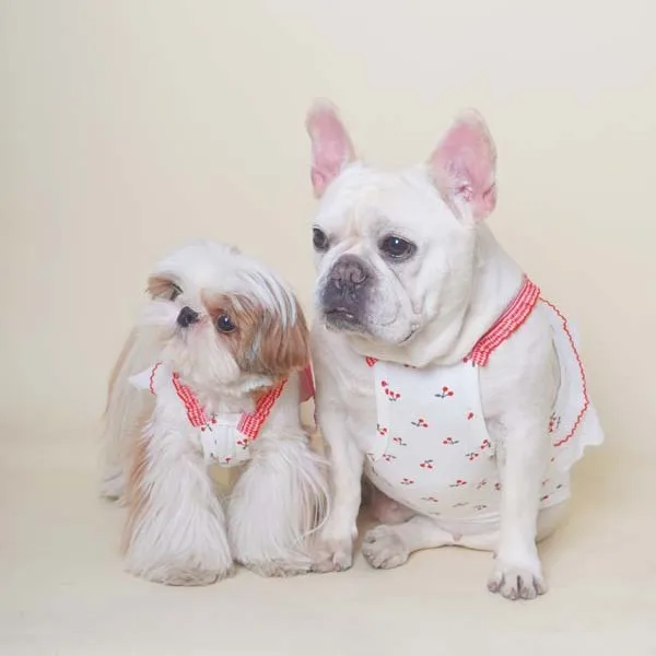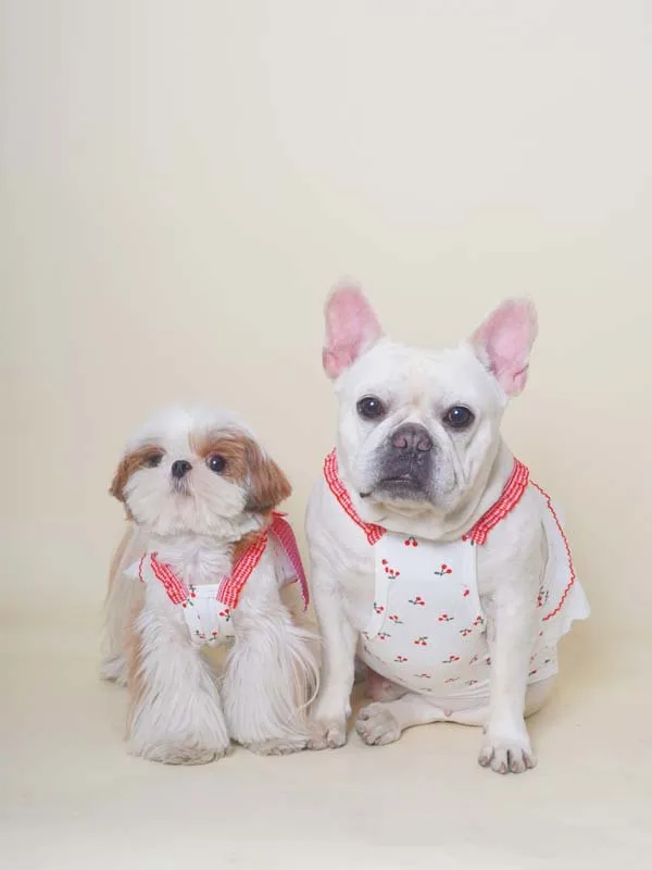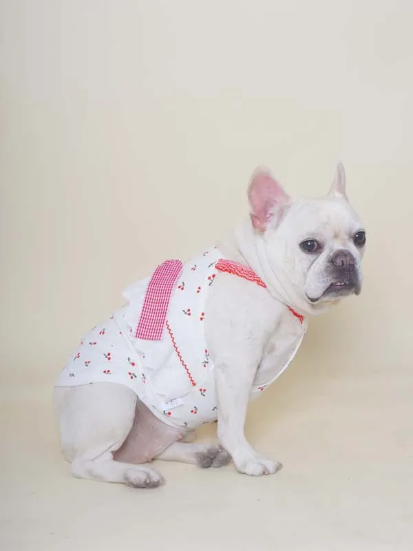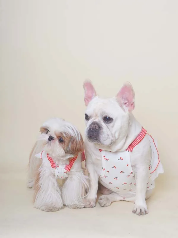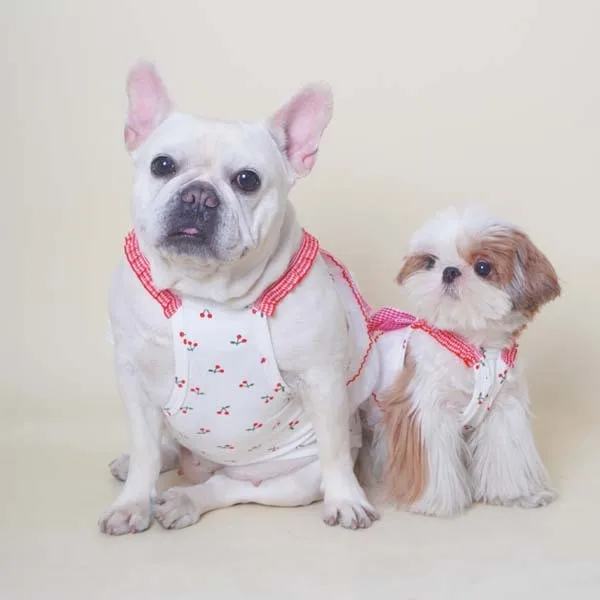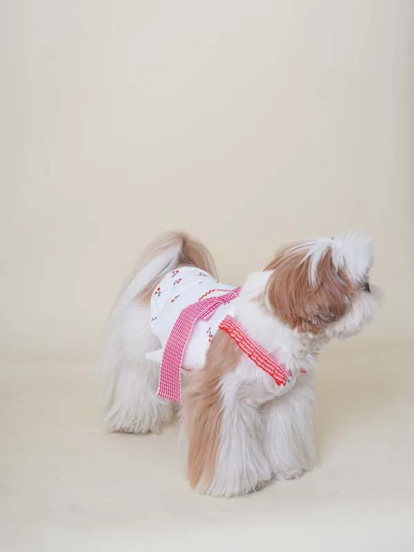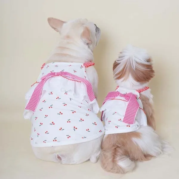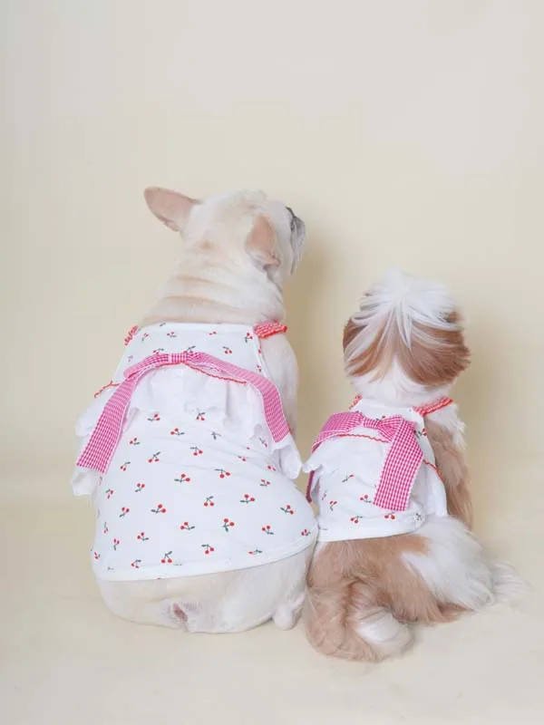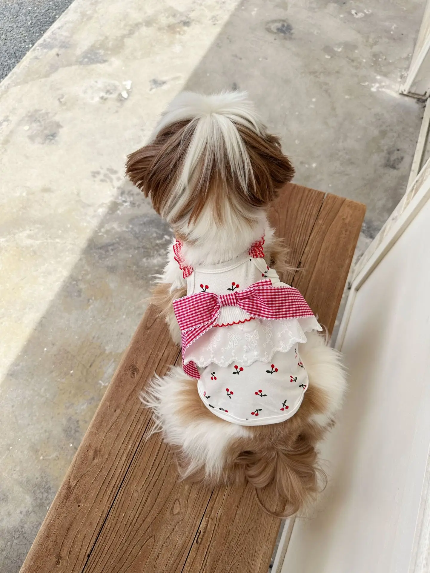 Vestido rojo a cuadros con lazo para mascotas, vestido de tirantes de cereza de peluche Schnauzer, camiseta sin mangas para perros pequeños, ropa para perros pequeños
