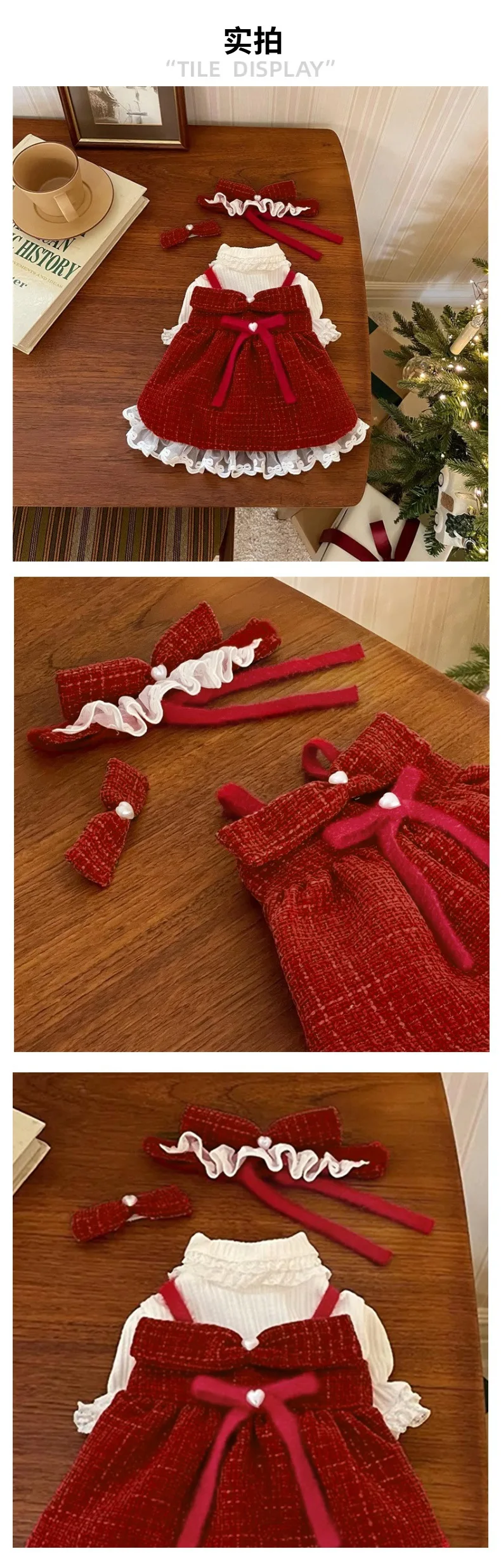 Vestido rojo con lazo para Navidad, Año Nuevo, Otoño/Invierno, abrigo grueso y cálido para gatos, ropa para perros pequeños, ropa para cachorros, regalo