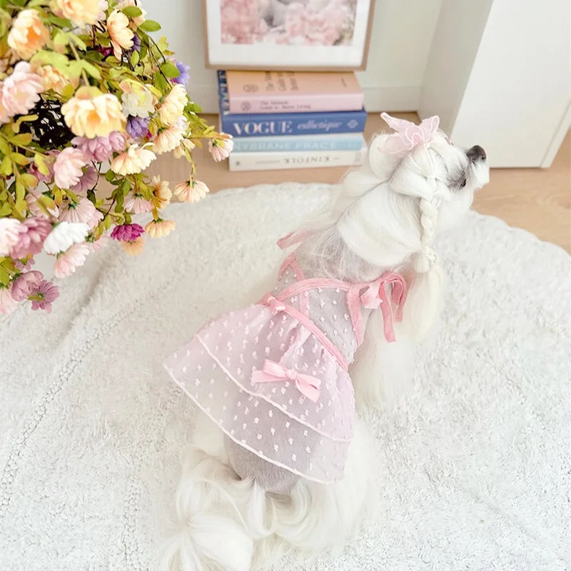 Vestido rosa para perro, vestido de encaje con volantes, transpirable, fresco, con capas para perros pequeños, trajes de fiesta de verano para niñas, ropa de Chihuahua maltesa
