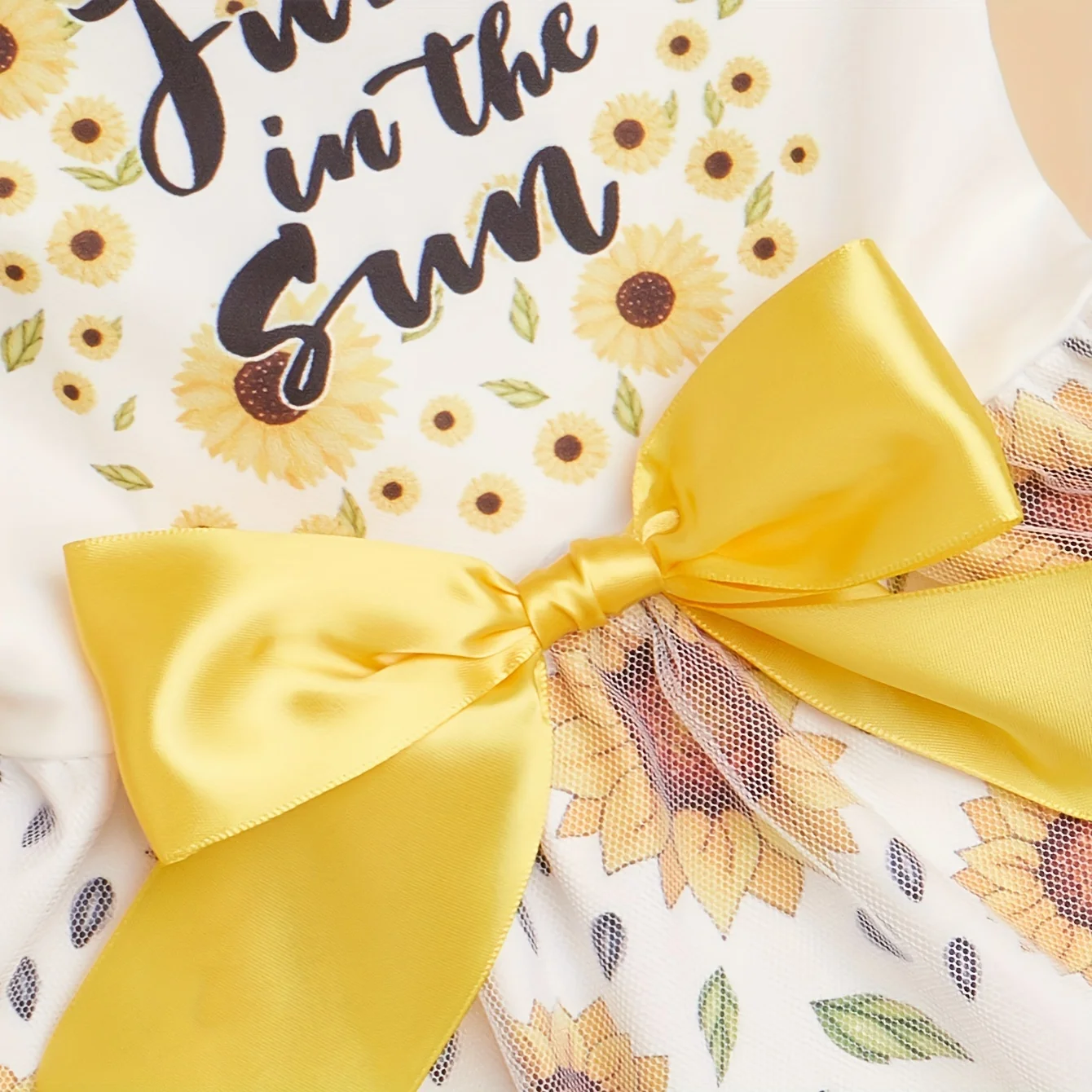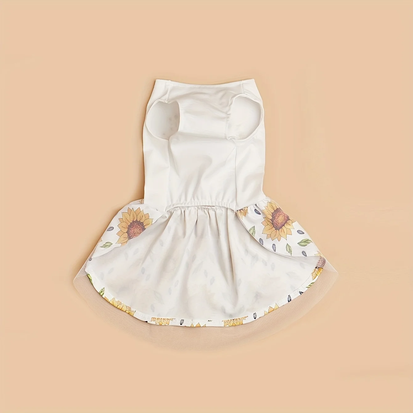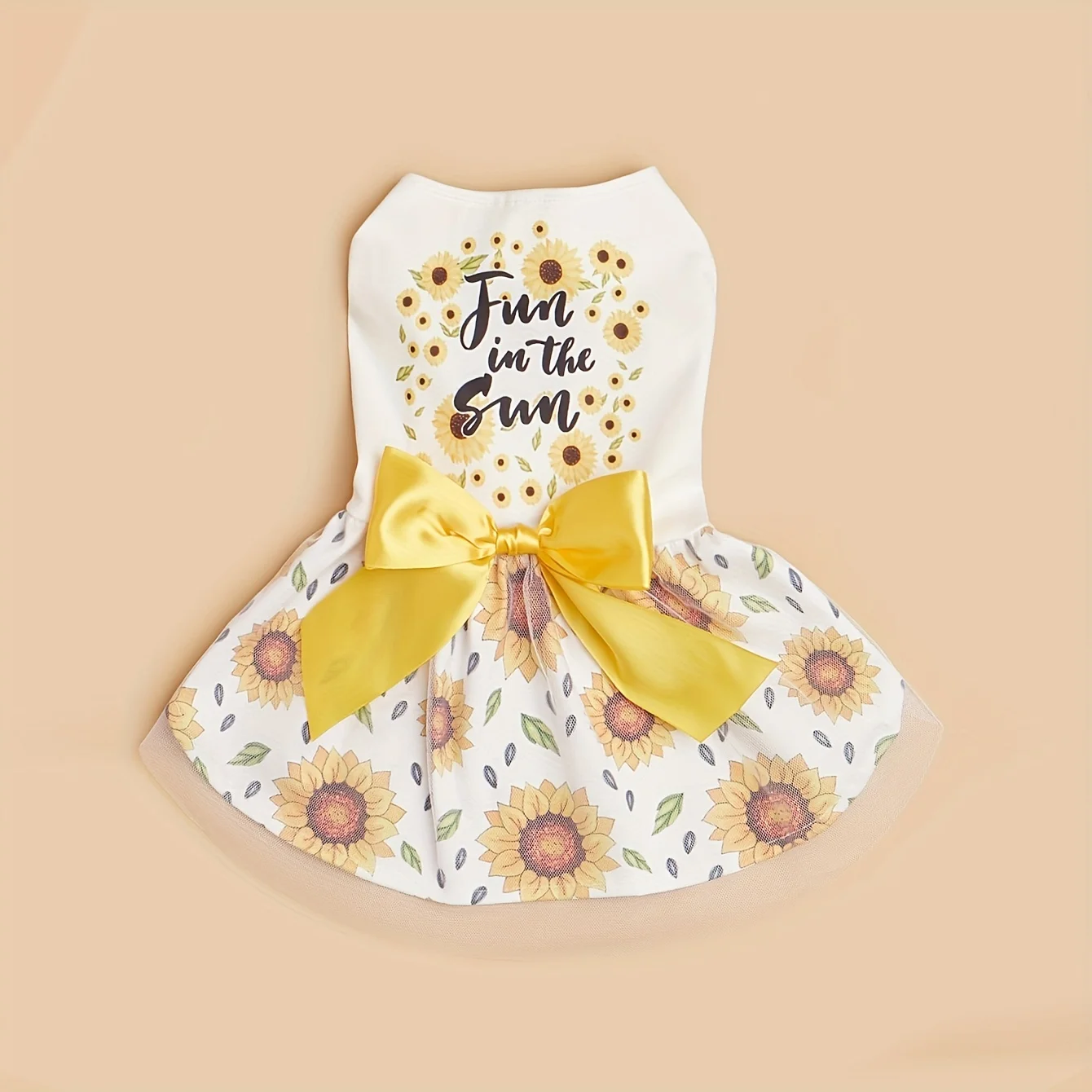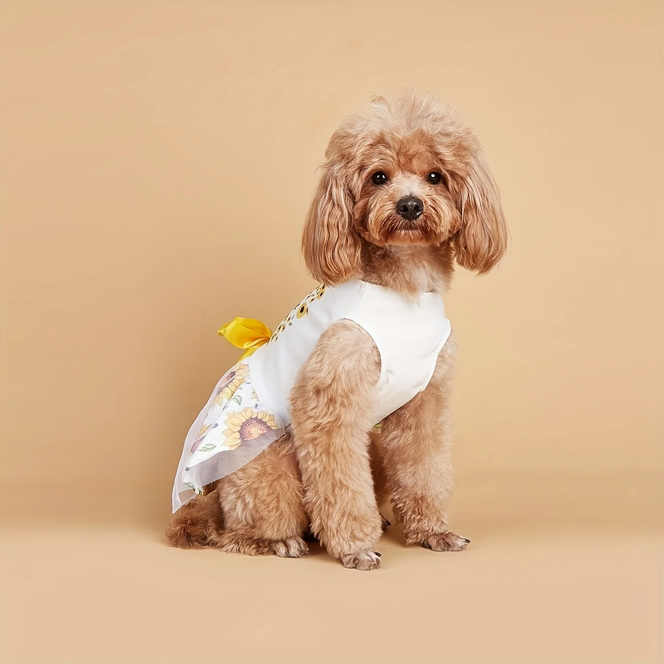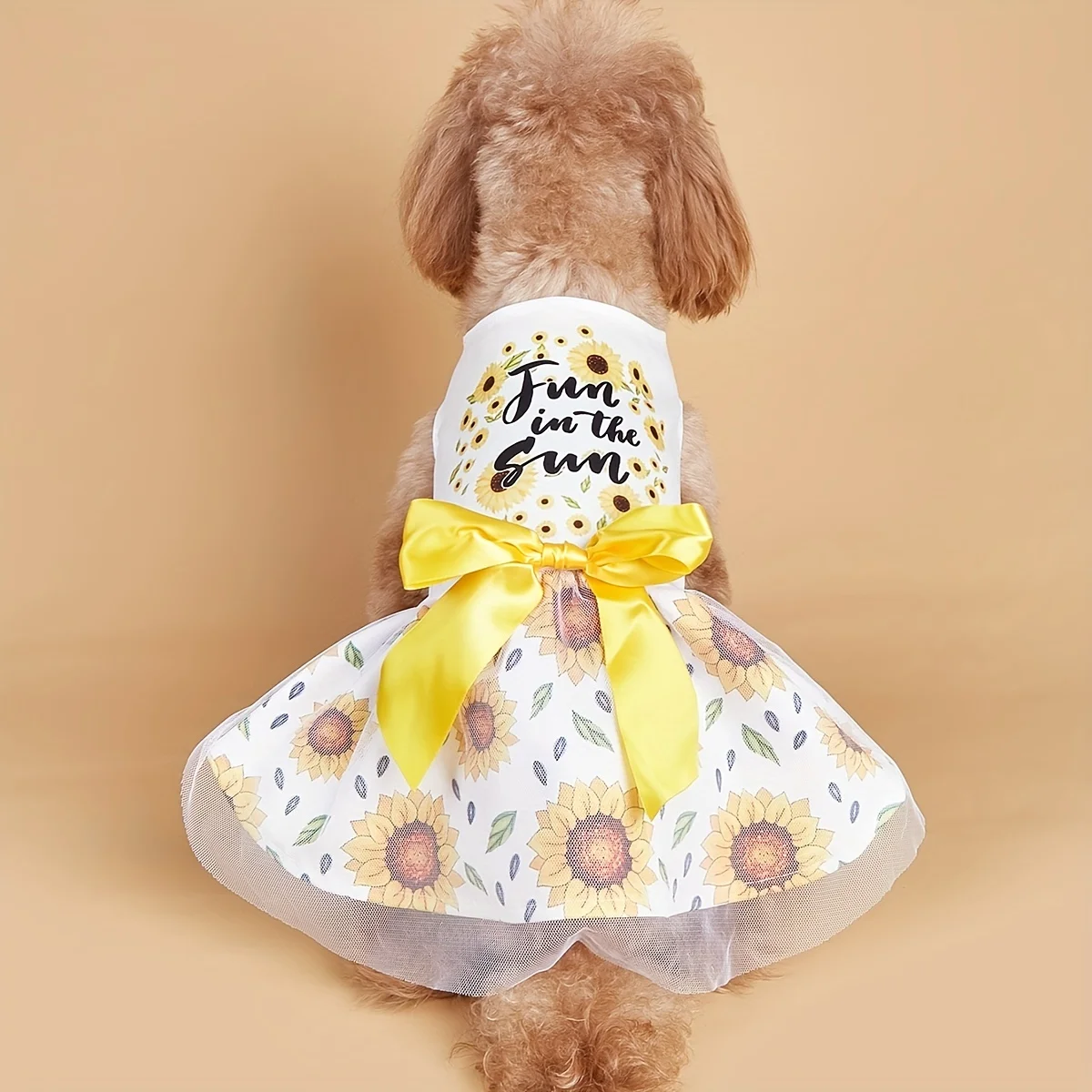 Vestido sin mangas para perro y niña, ropa con estampado de girasol para mascota, con lazo para gato, disfraz para cachorro
