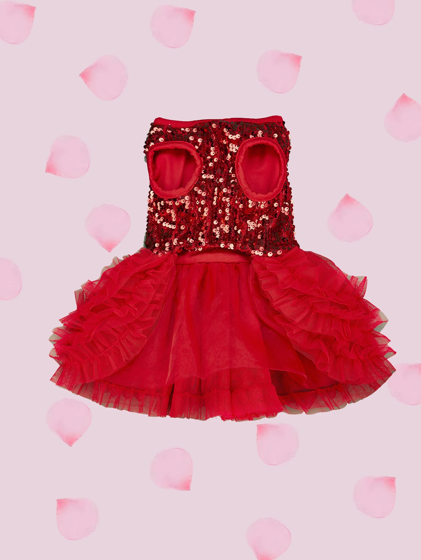 ¡El vestido rojo (top de lentejuelas y falda de tul) vibrante y maravilloso para el Día de San Valentín, Navidad o cualquier ocasión especial! Bien hecha, excepto que la falda de tul tiene bordes crudos en la parte posterior en lugar de estar terminada. Entrega rápida y feliz con este vestido.