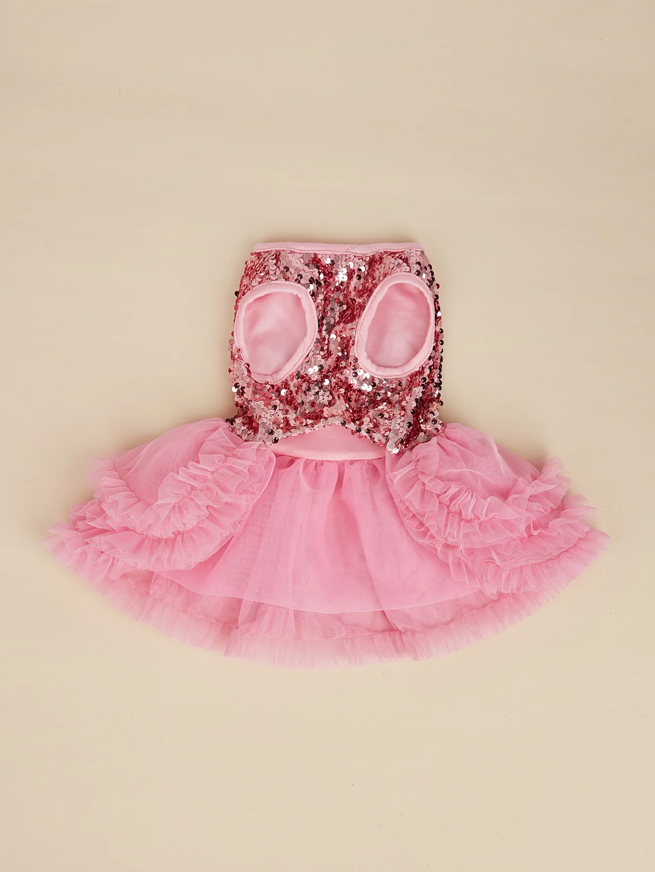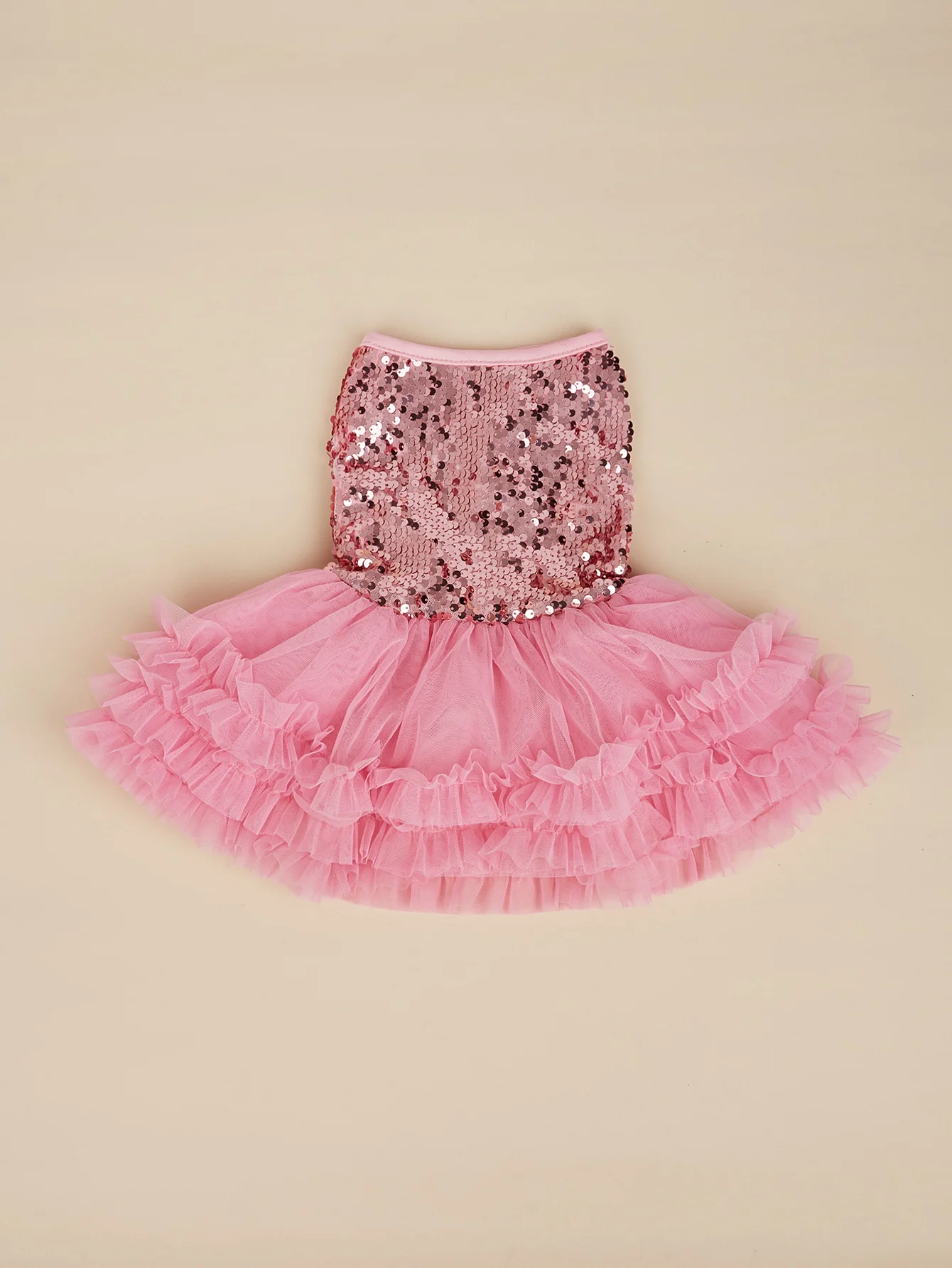 ¡El vestido rosa (top de lentejuelas y falda de tul) es vibrante y maravilloso para cualquier ocasión especial! Bien hecho, excepto que la falda tiene bordes crudos en la parte posterior en lugar de estar terminada. Entrega rápida y feliz con este vestido.