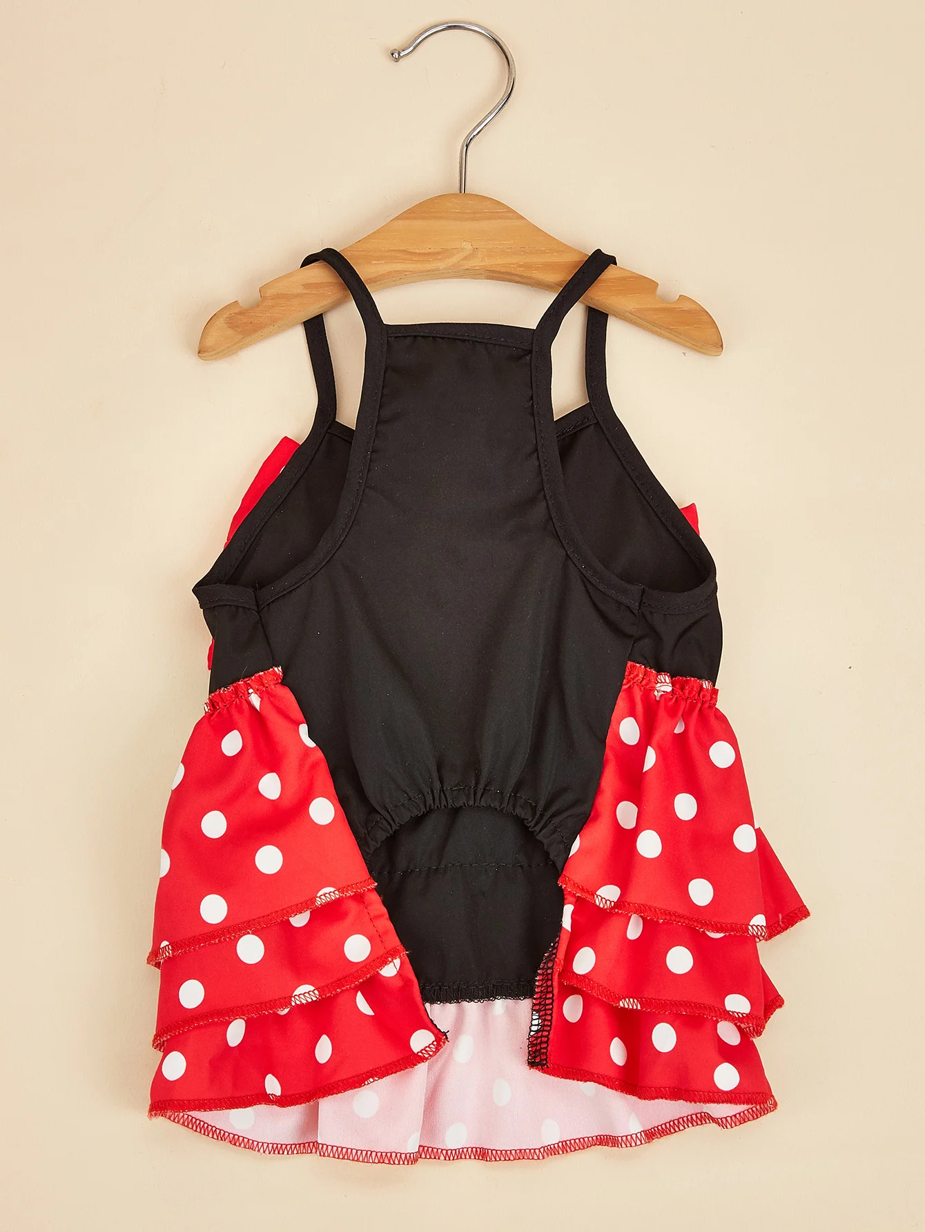 Vestido sin mangas para perro y niña, ropa de lunares para mascotas, ropa para perros con lazo rojo, vestidos para cachorros, atuendo de disfraz