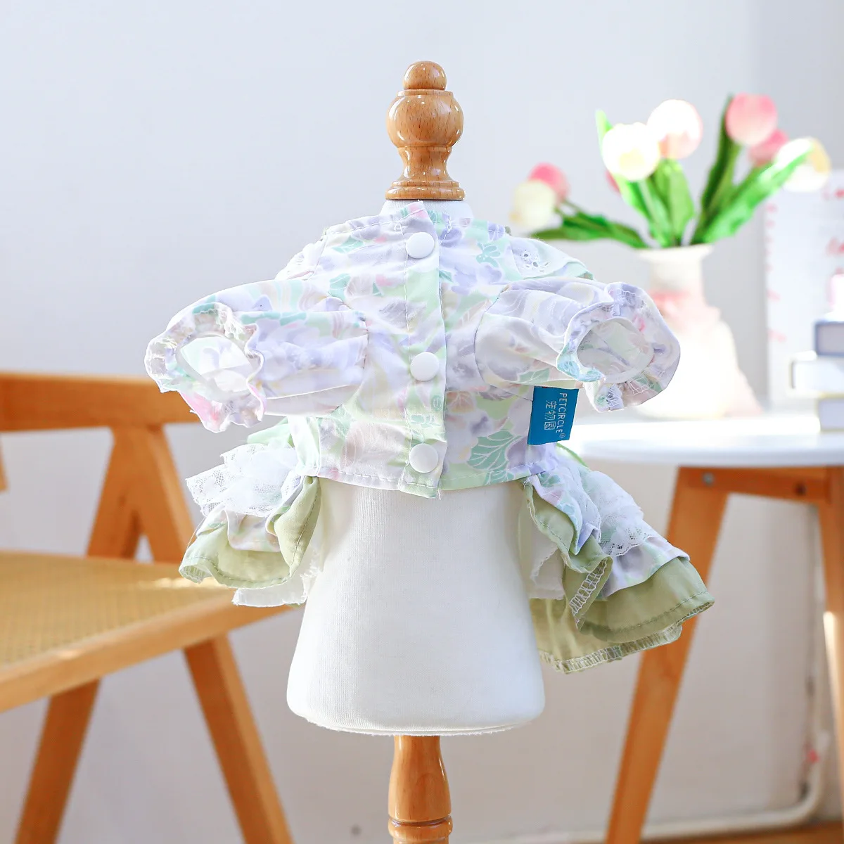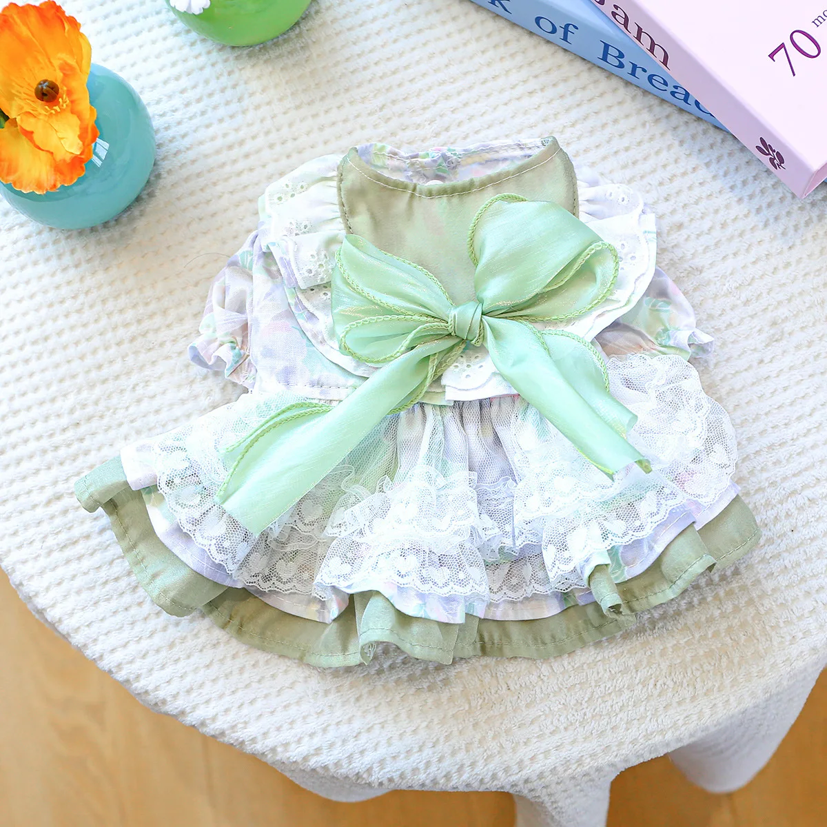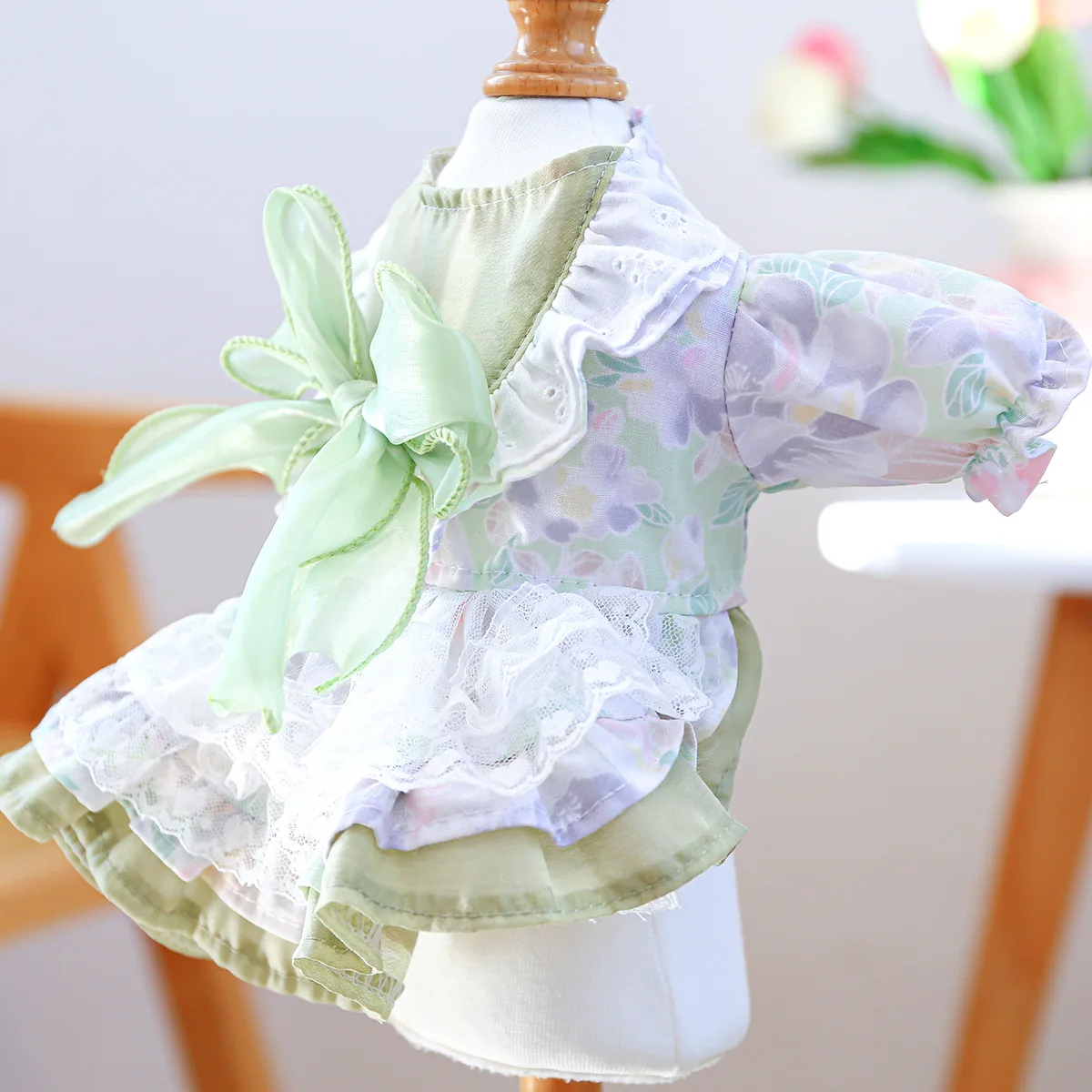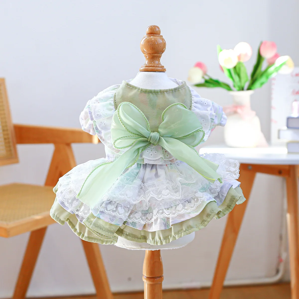 Vestido de sirvienta de primavera para mascotas, vestido con lazo de malla para perros, ropa para perros pequeños, ropa para cachorros con lazo, accesorios para perros