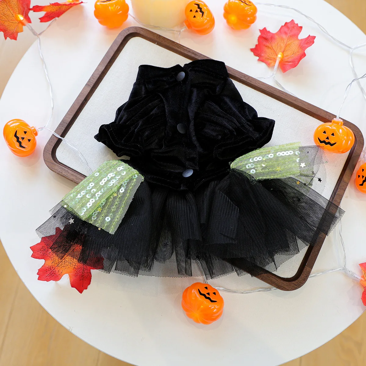 Vestido de terciopelo negro de Halloween para perros, vestido para mascotas con bordado, falda de tul para mascotas, falda tutú para mascotas, ropa de cosplay para mascotas, ropa de fiesta para perros