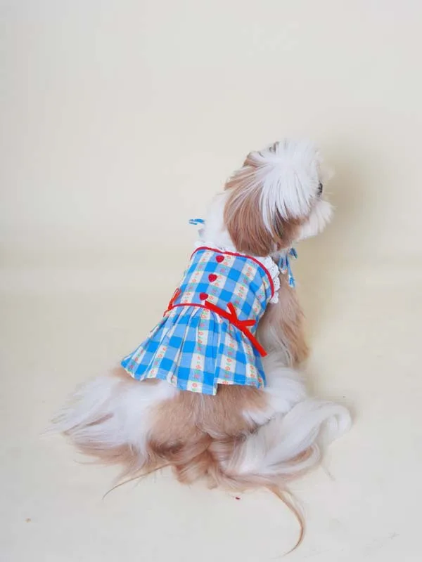 Vestido de tirantes a cuadros de primavera para mascotas, Schnauzer Teddy, vestidos de princesa para perros pequeños, ropa para cachorros