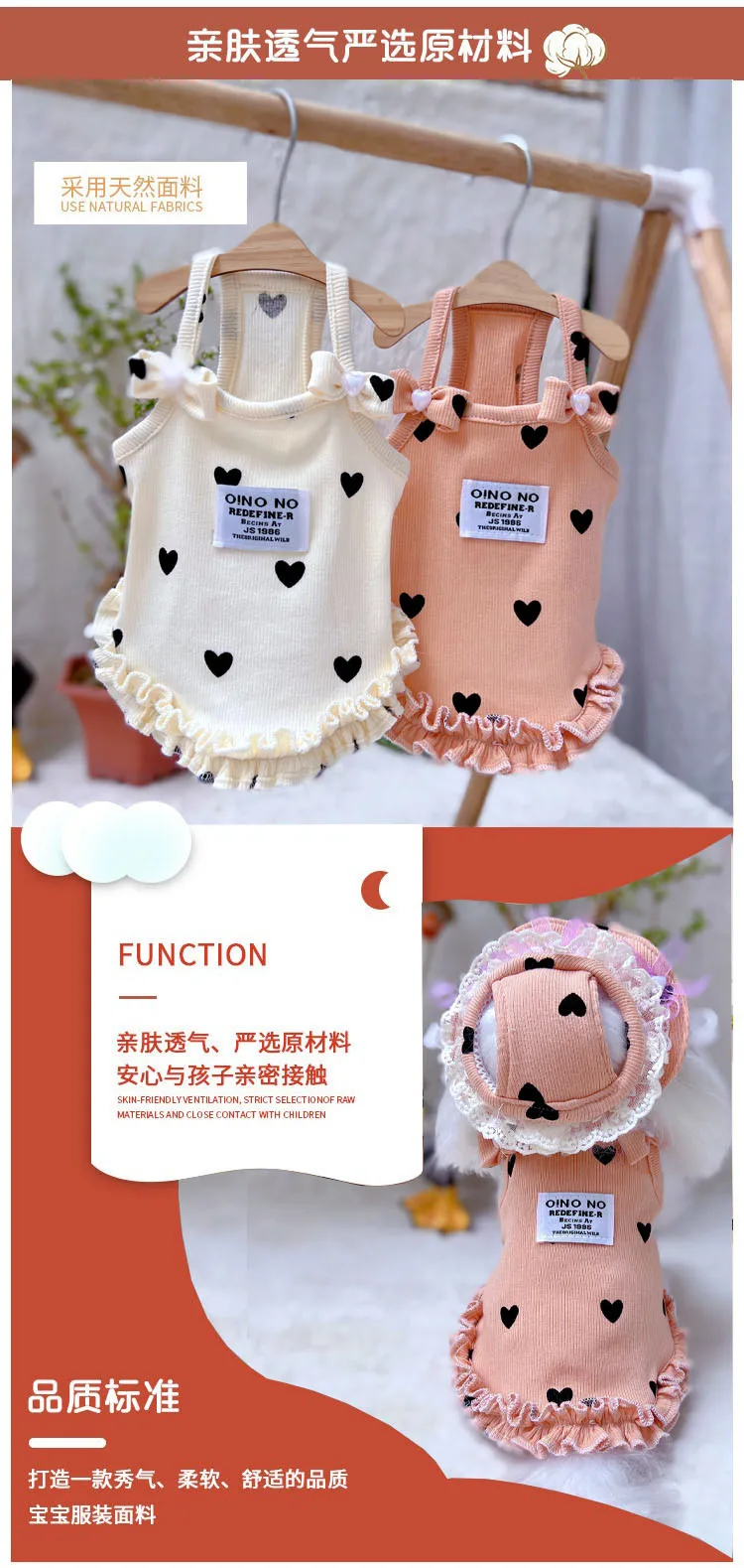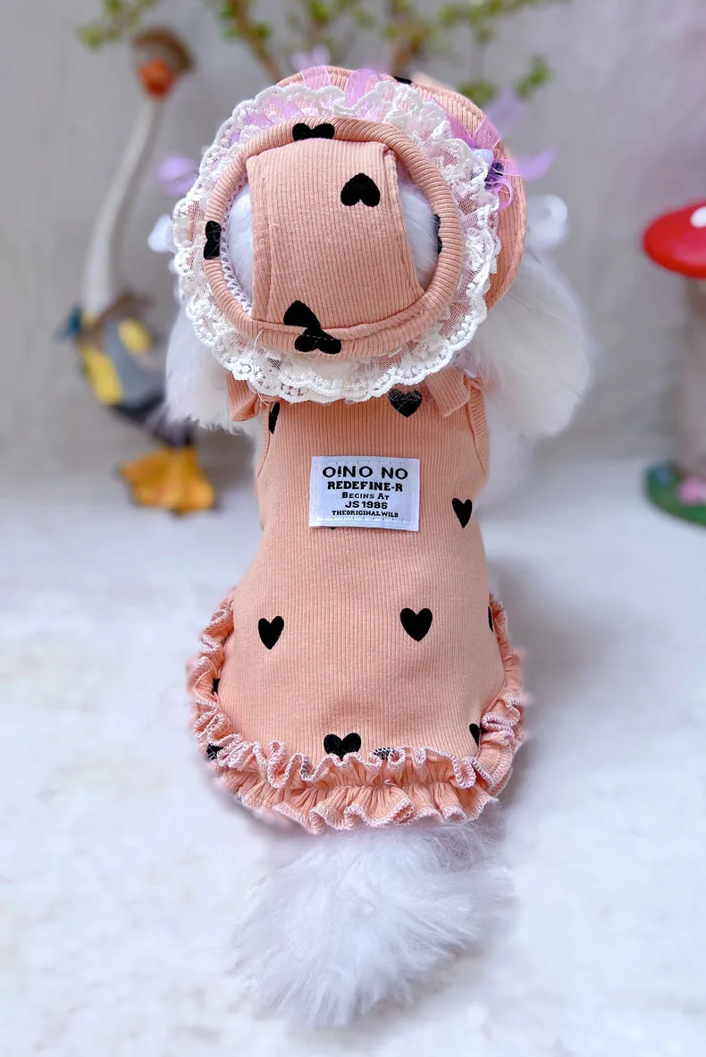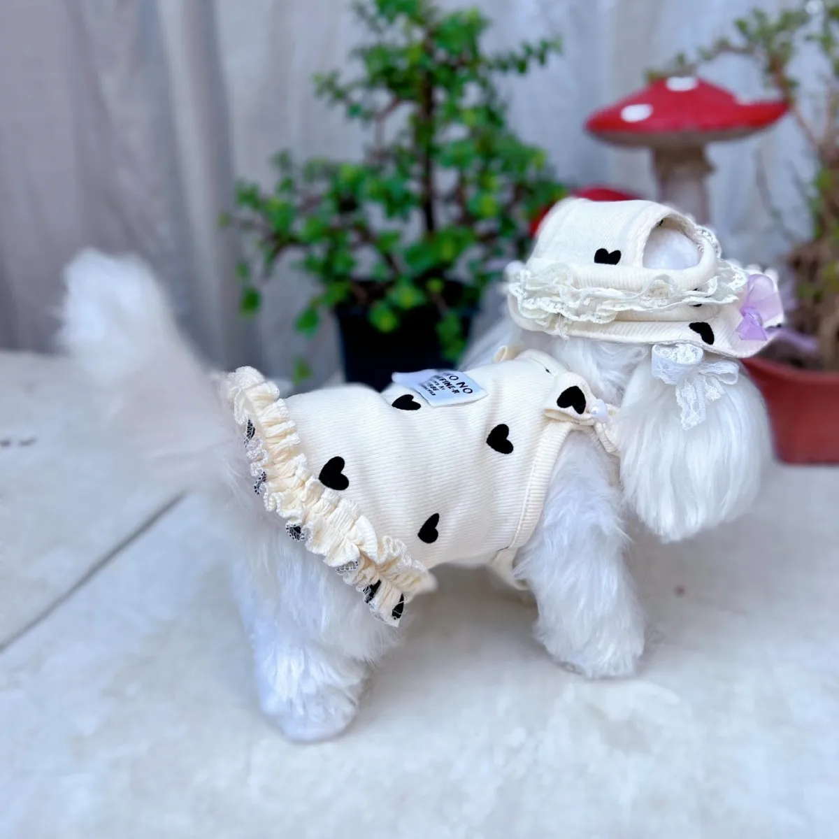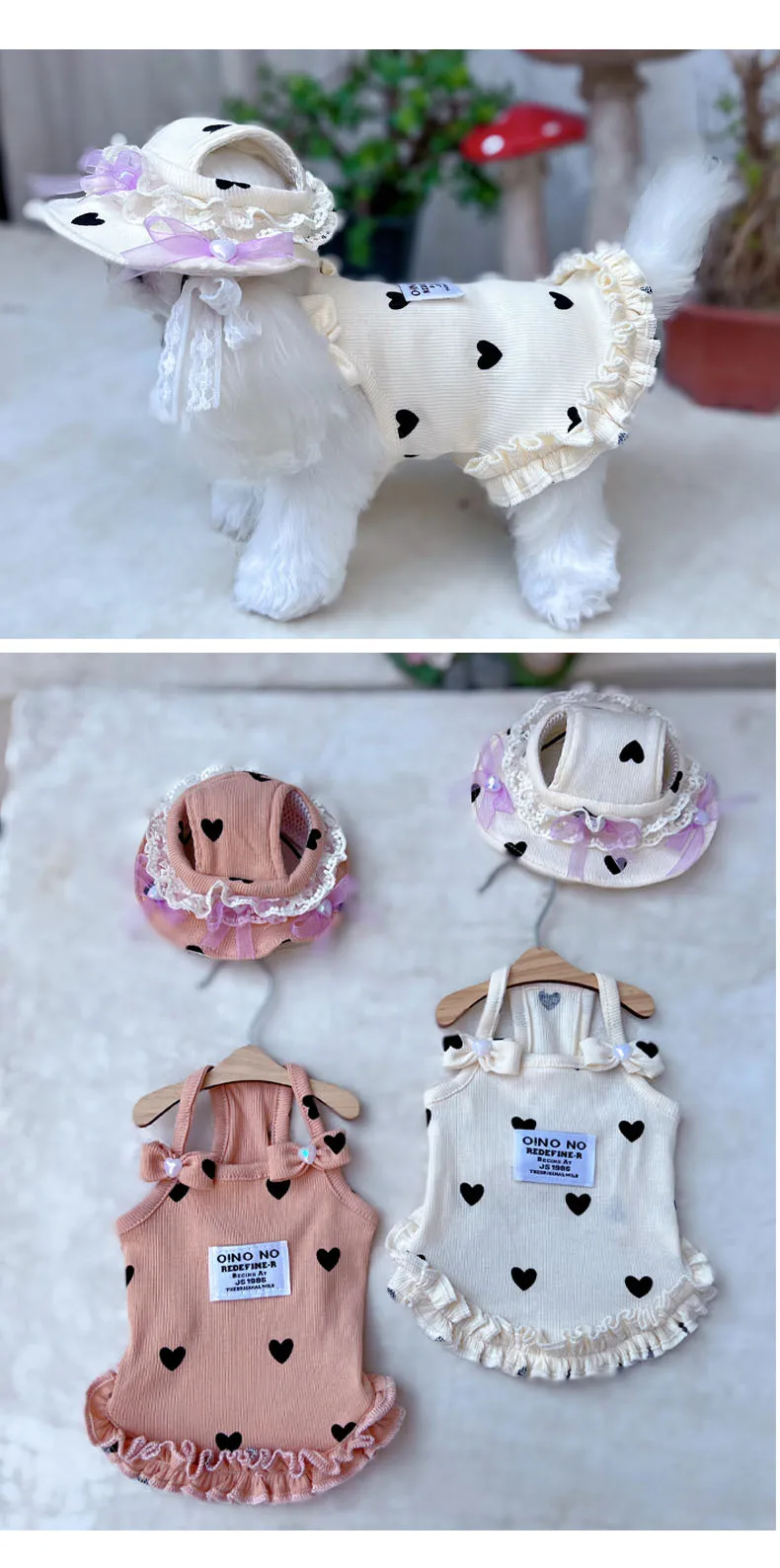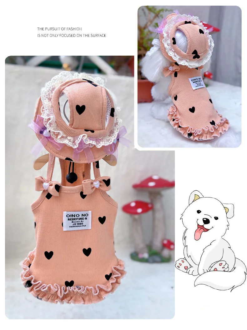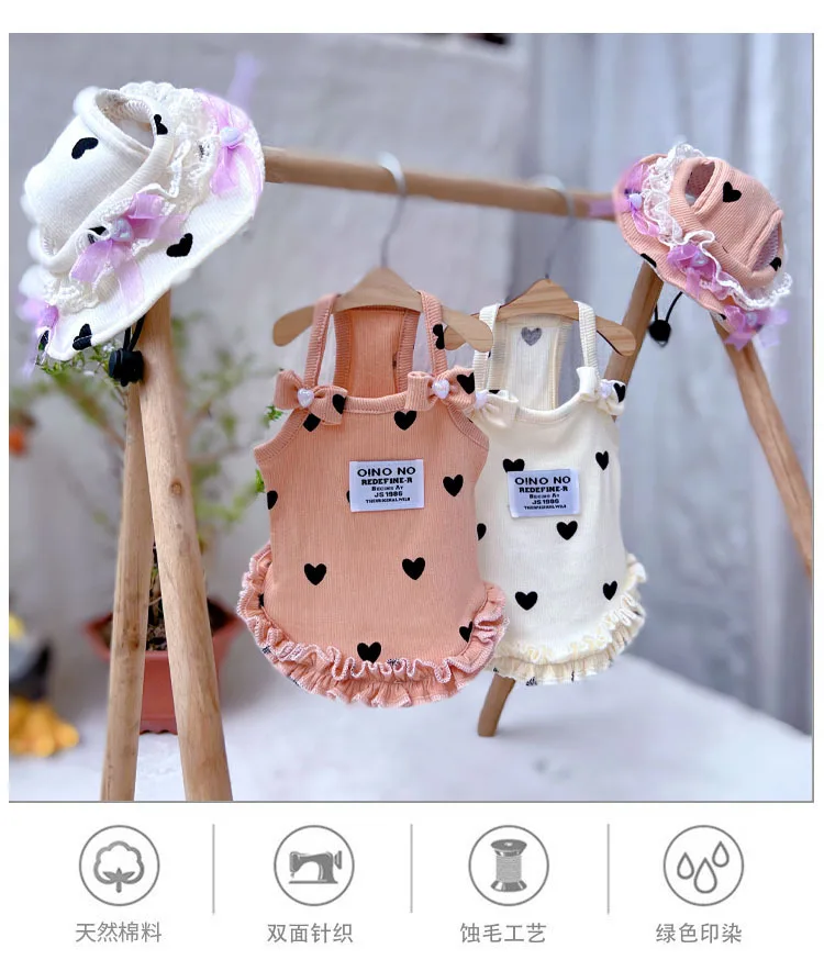 Vestido de tirantes de encaje para primavera/verano para mascotas, conjunto de sombrero bonito, ropa para perros pequeños, vestido con tirantes elásticos altos, chaleco de princesa para gatos