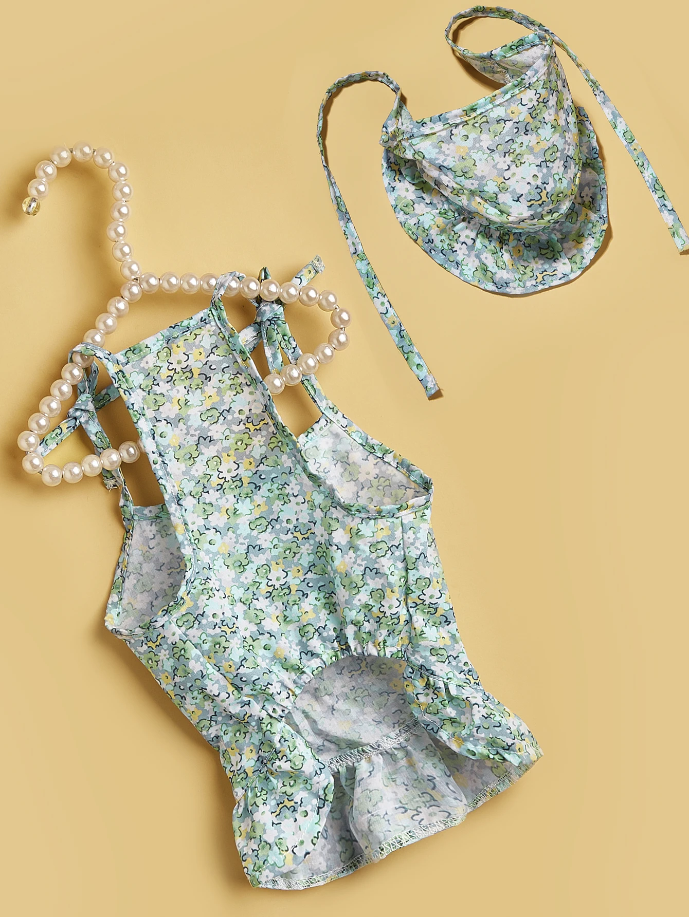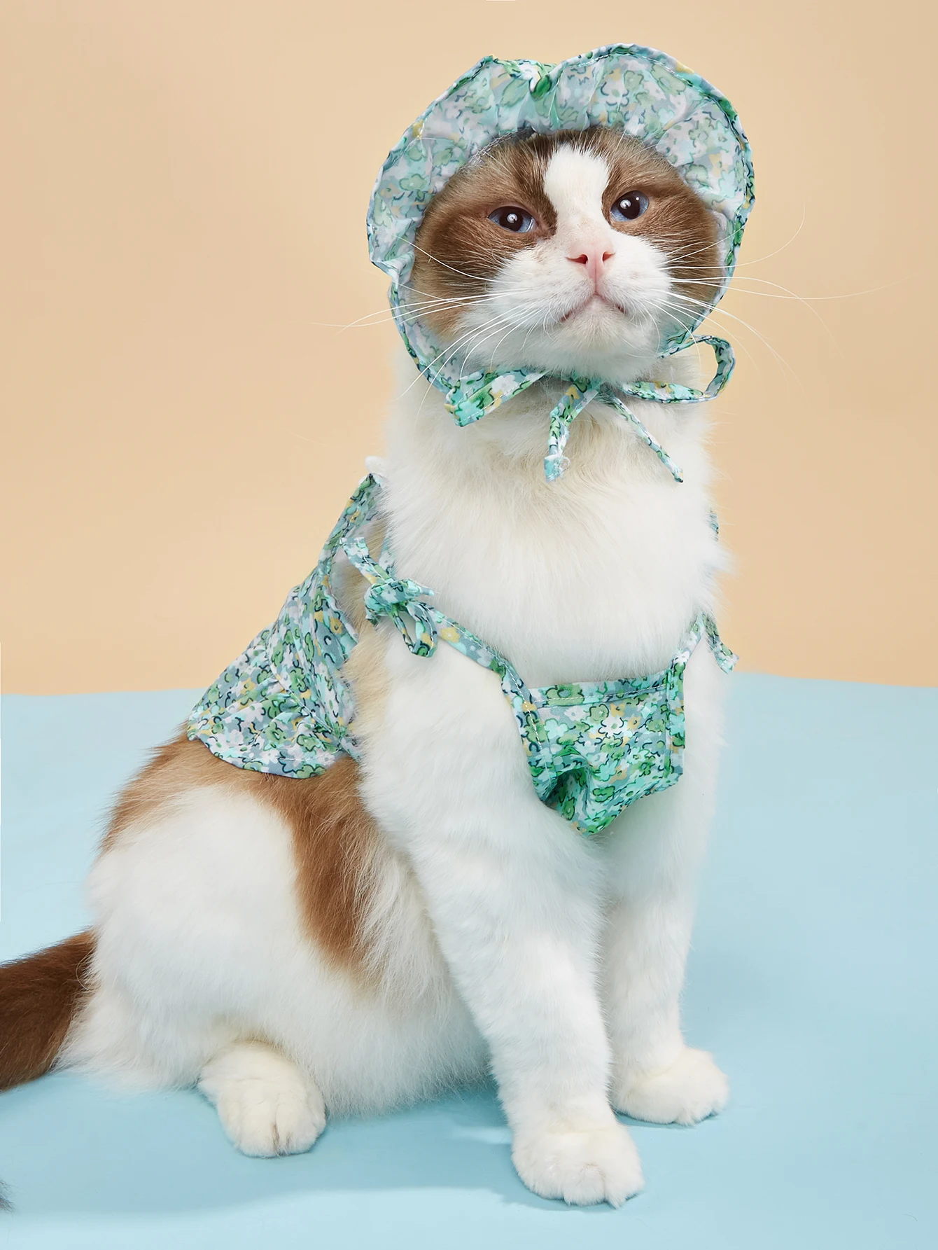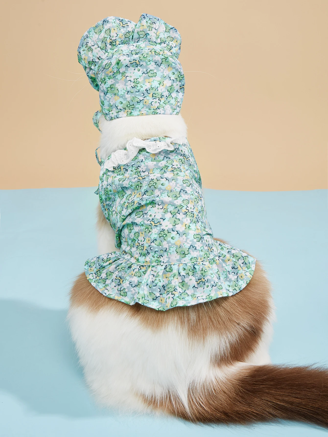 Vestido con tirantes para mascotas con conjunto de sombrero, estampado floral, correas y dobladillo con volantes, estilo INS, moda linda, transpirable suave para gatos/perros/cachorros
