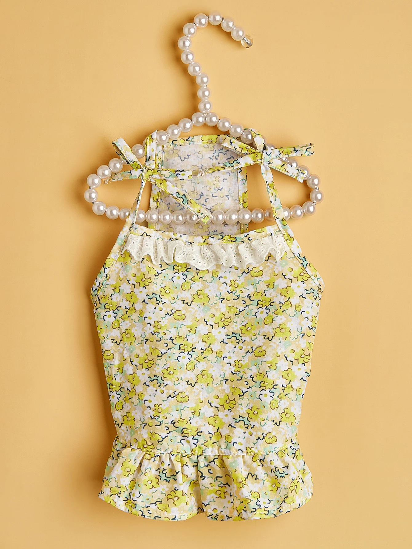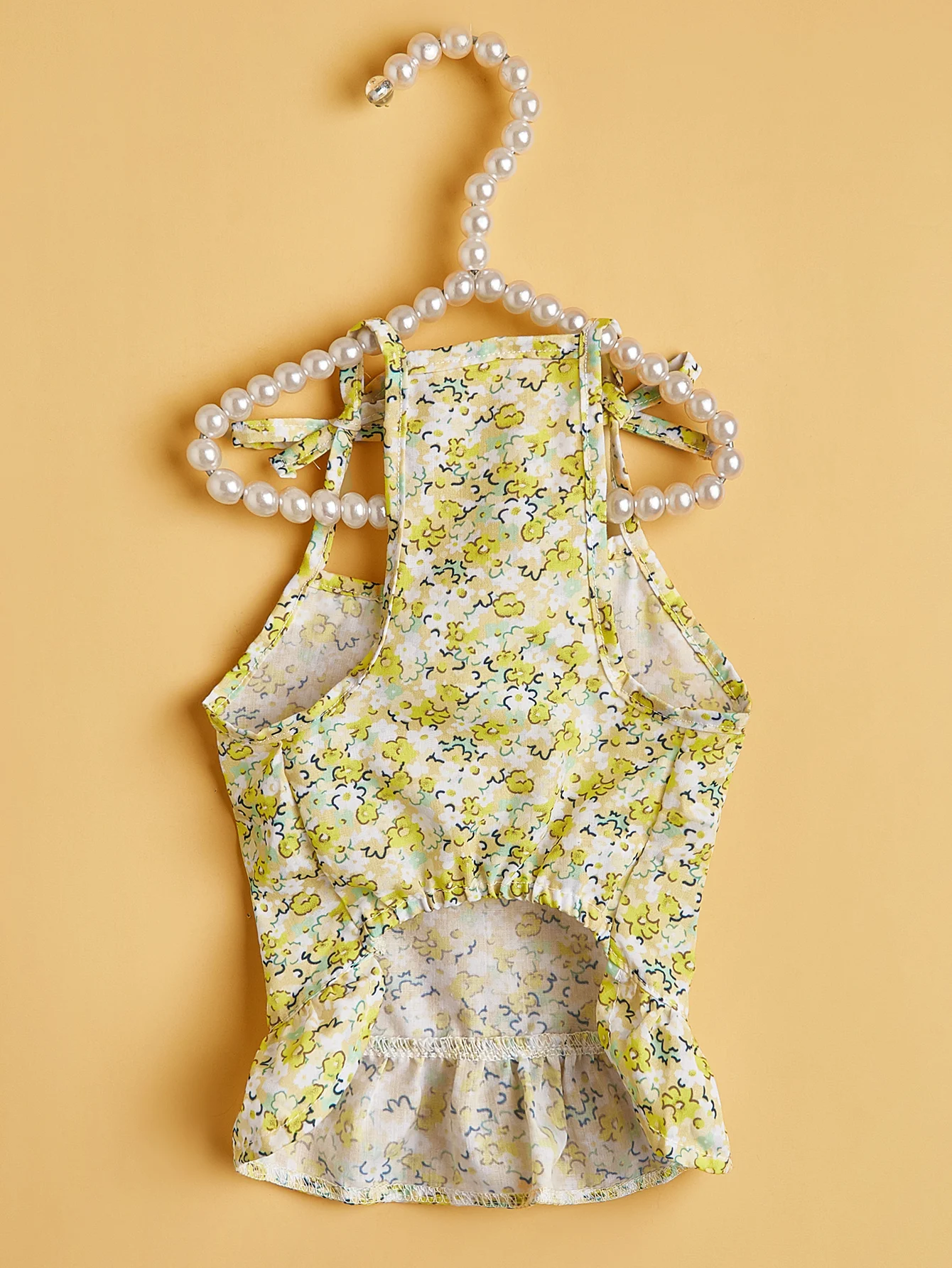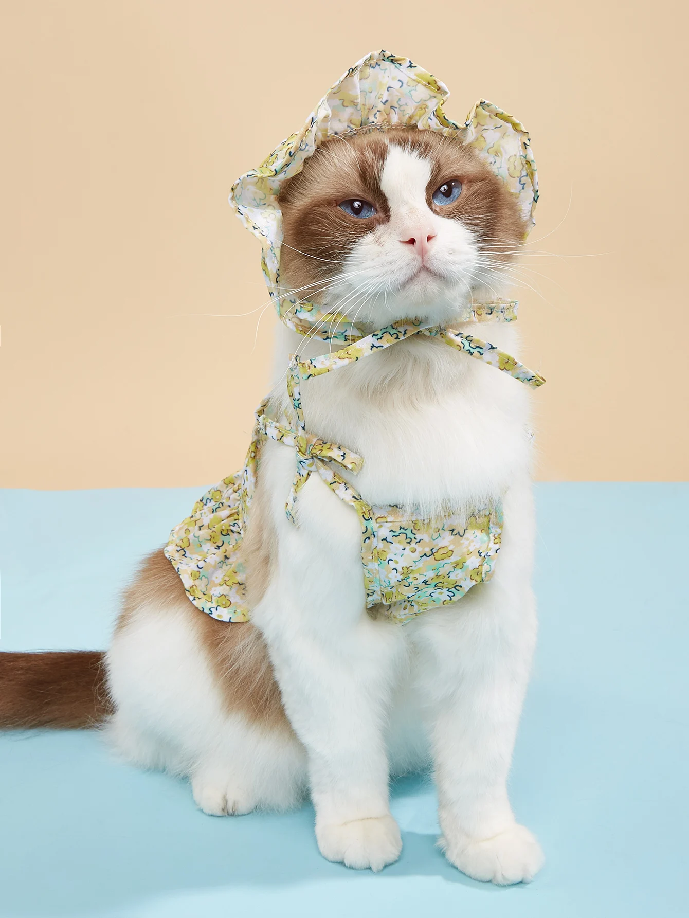 Vestido con tirantes para mascotas con conjunto de sombrero, estampado floral, correas y dobladillo con volantes, estilo INS, moda linda, transpirable suave para gatos/perros/cachorros