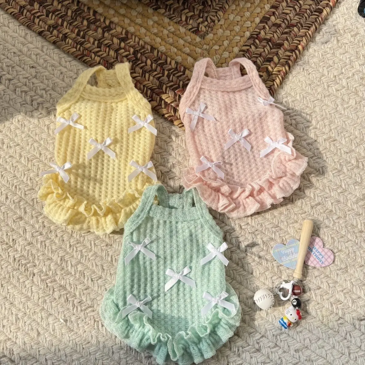 Vestido de tirantes para mascotas, vestido de encaje con lazo, Top fino y bonito para gatos, camiseta sin mangas de peluche, vestidos para perros pequeños para perros pequeños
