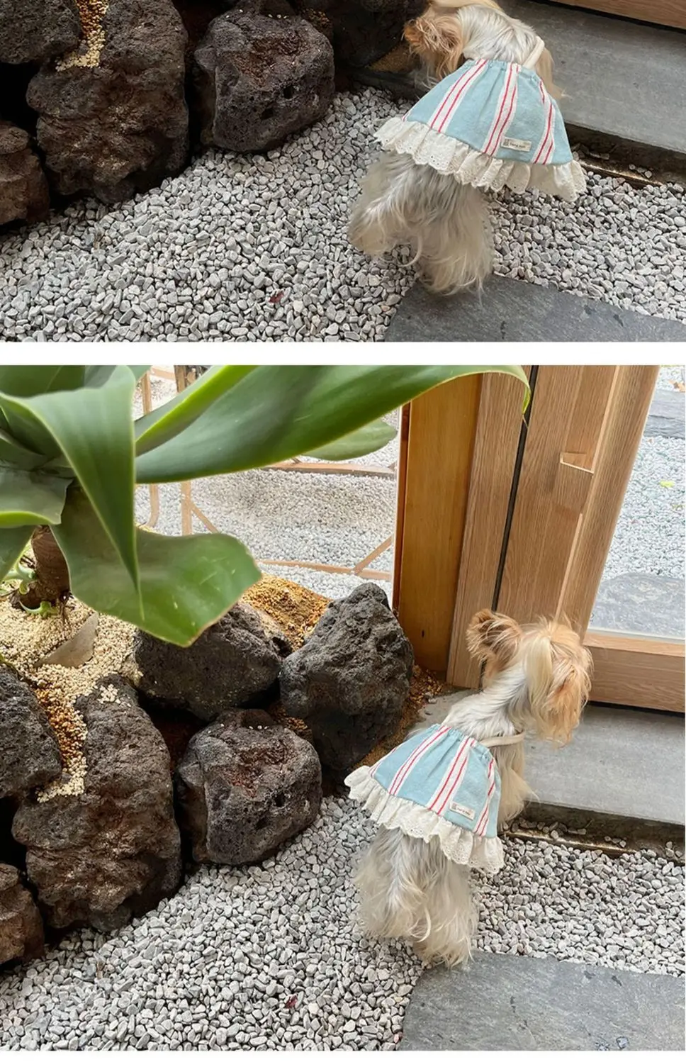 Vestido de tirantes para mascotas, vestido a rayas para perros, vestido de tirantes Rural Retro a rayas, oso de peluche Yorkshire, vestido para mascotas, vestidos para perros pequeños