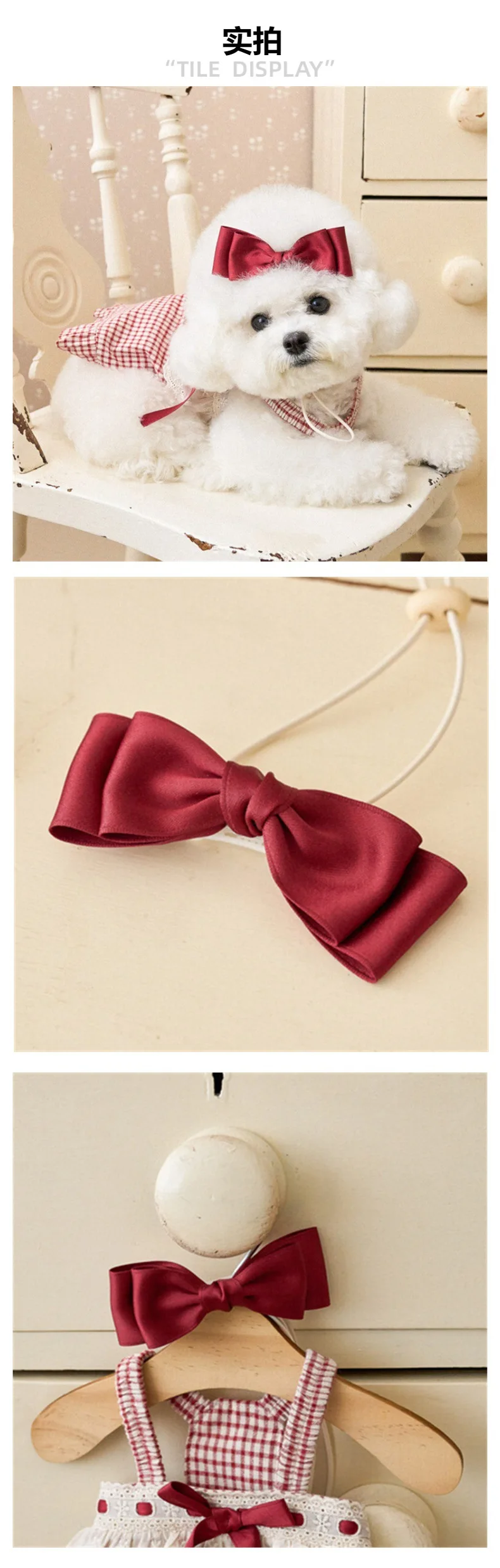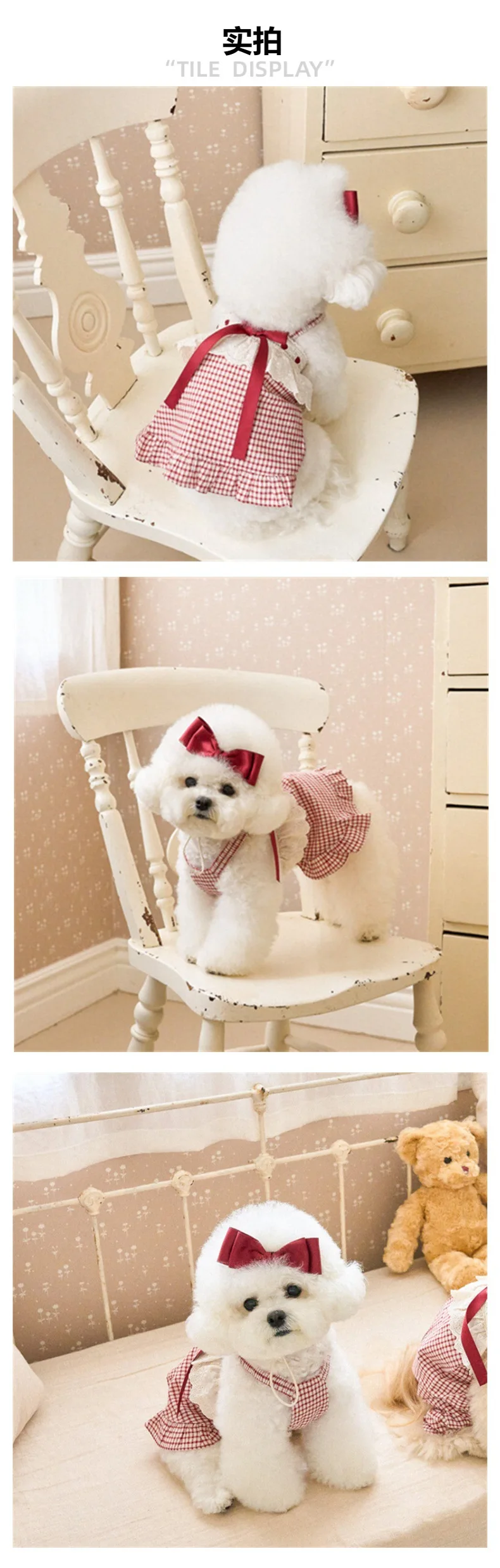 Vestido de tirantes para primavera/verano para mascotas, bonito tocado con lazo, lazo para perro, vestido de princesa a cuadros de encaje, tocado, ropa para cachorros pequeños