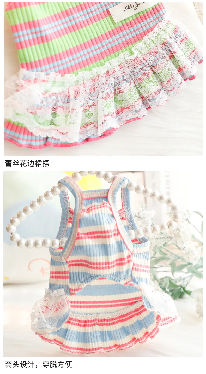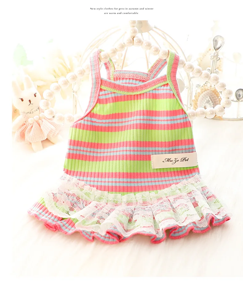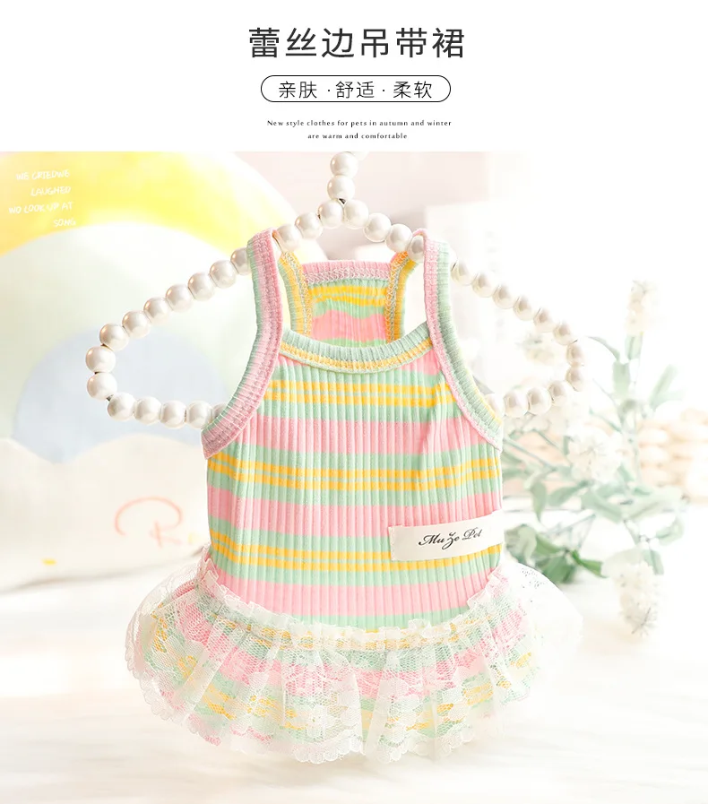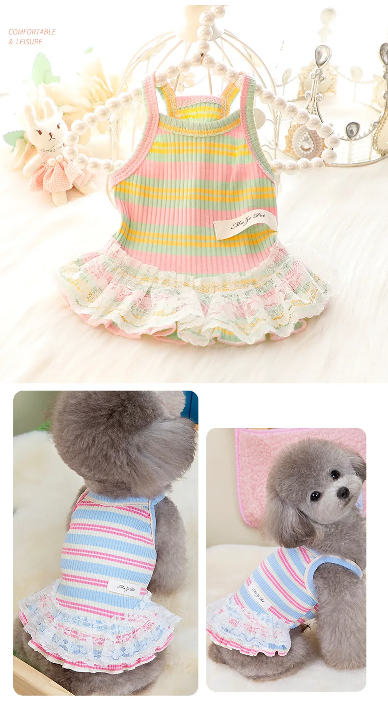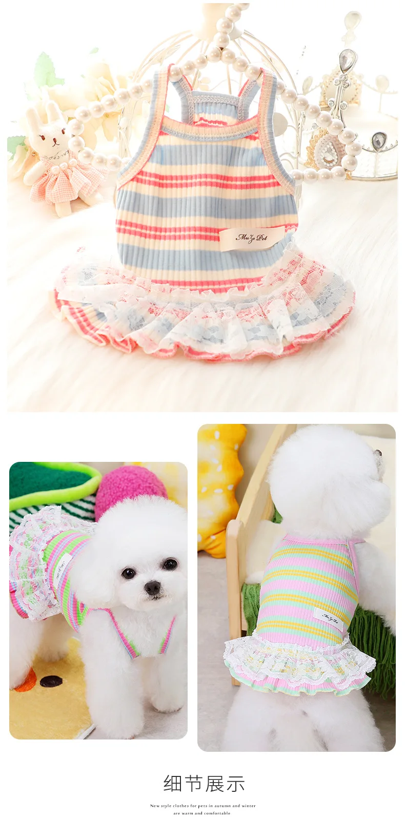 Vestido de tirantes a rayas para mascotas, vestido fino de princesa para gatos, camiseta sin mangas dulce con tirantes de encaje, Top de peluche para perros pequeños, ropa para cachorros