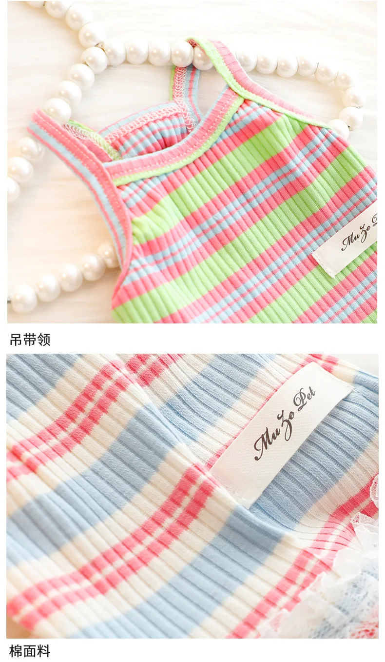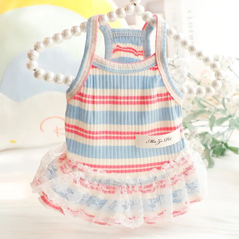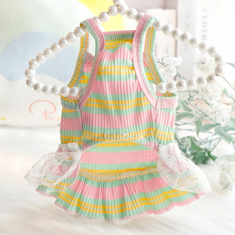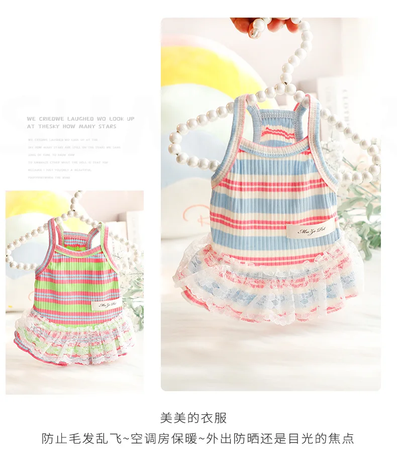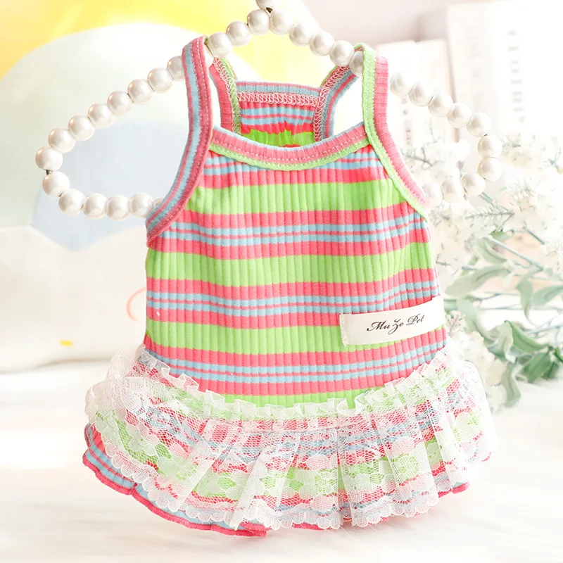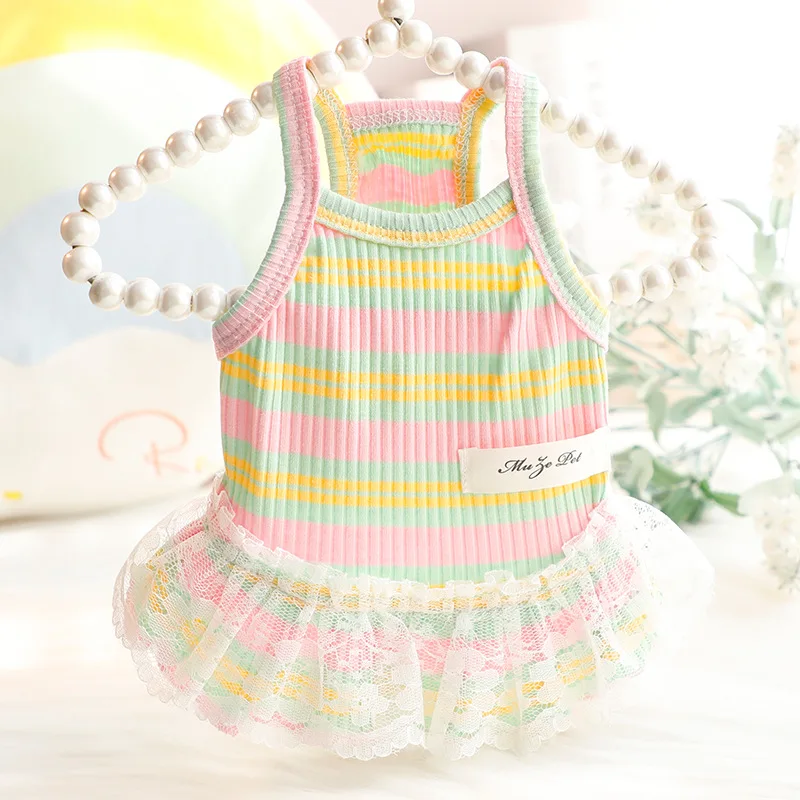 Vestido de tirantes a rayas para mascotas, vestido fino de princesa para gatos, camiseta sin mangas dulce con tirantes de encaje, Top de peluche para perros pequeños, ropa para cachorros