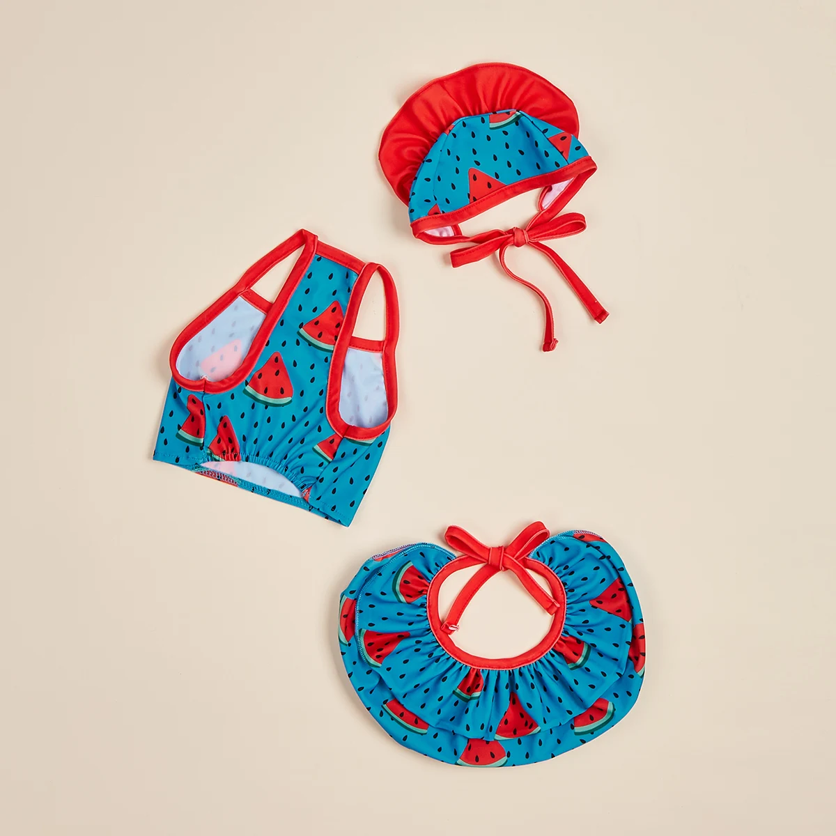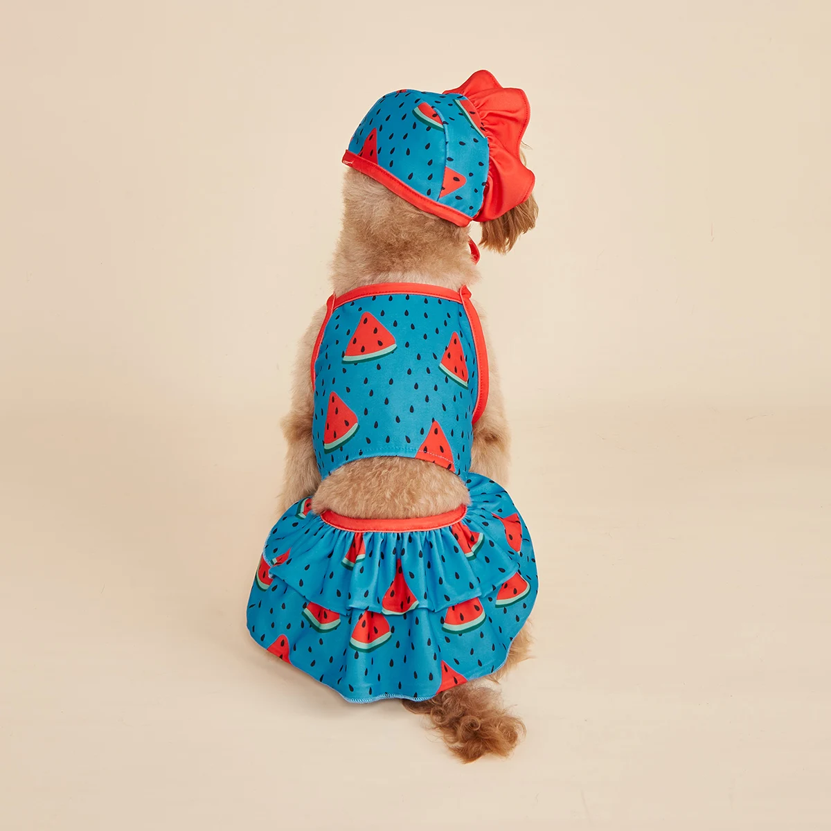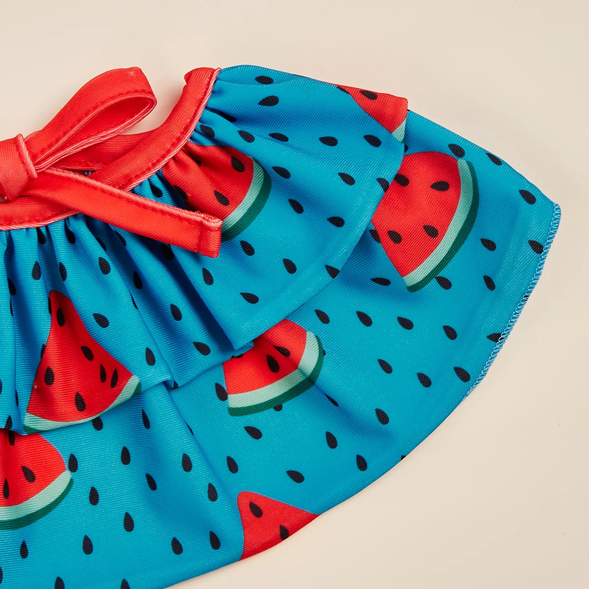 Vestido de tres piezas para perros pequeños, disfraz fresco con estampado de sandía, ropa para mascotas, ropa con volantes para perros, gatos, Dai