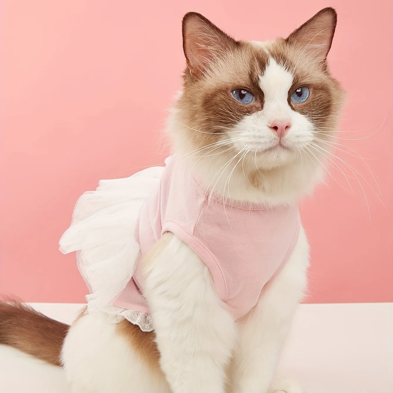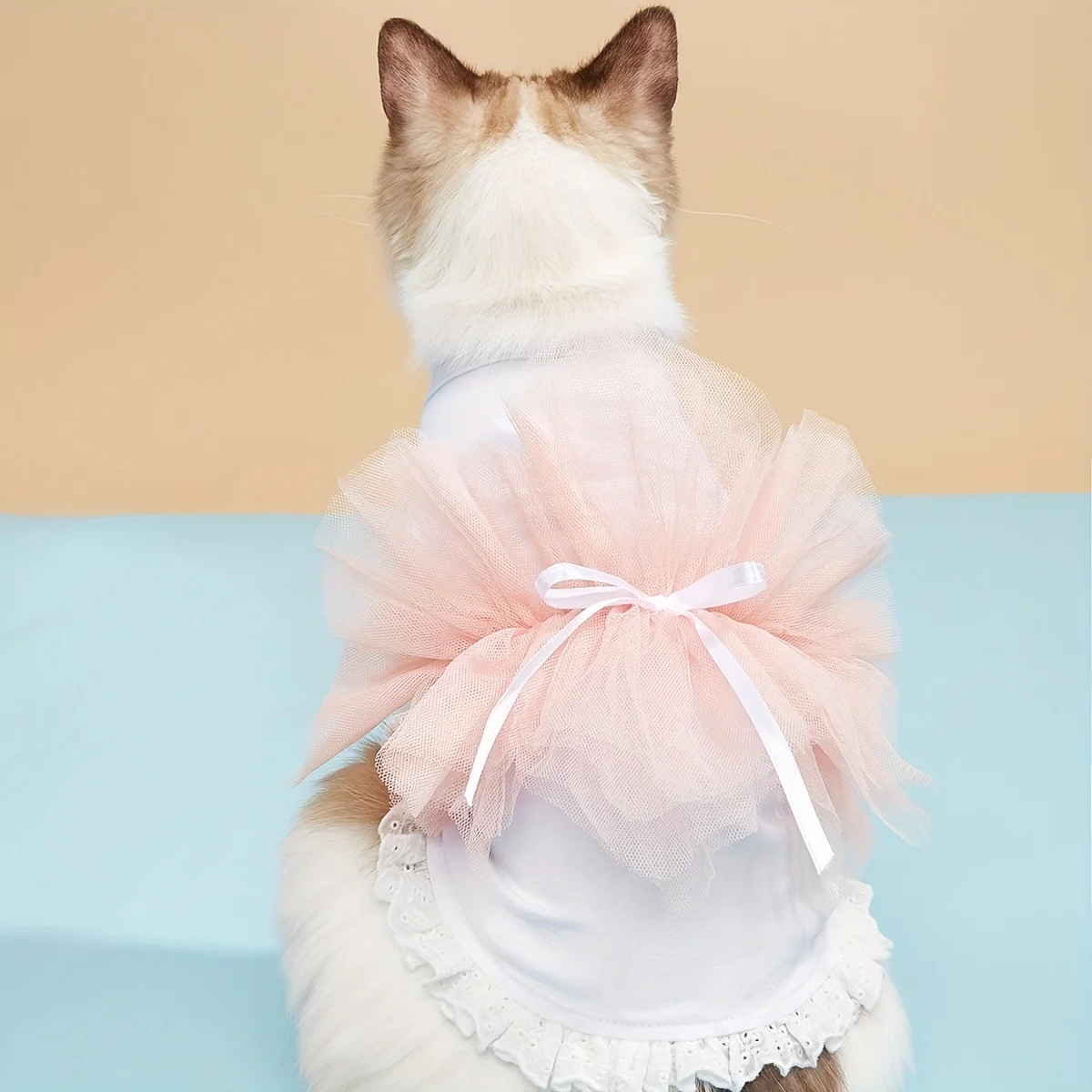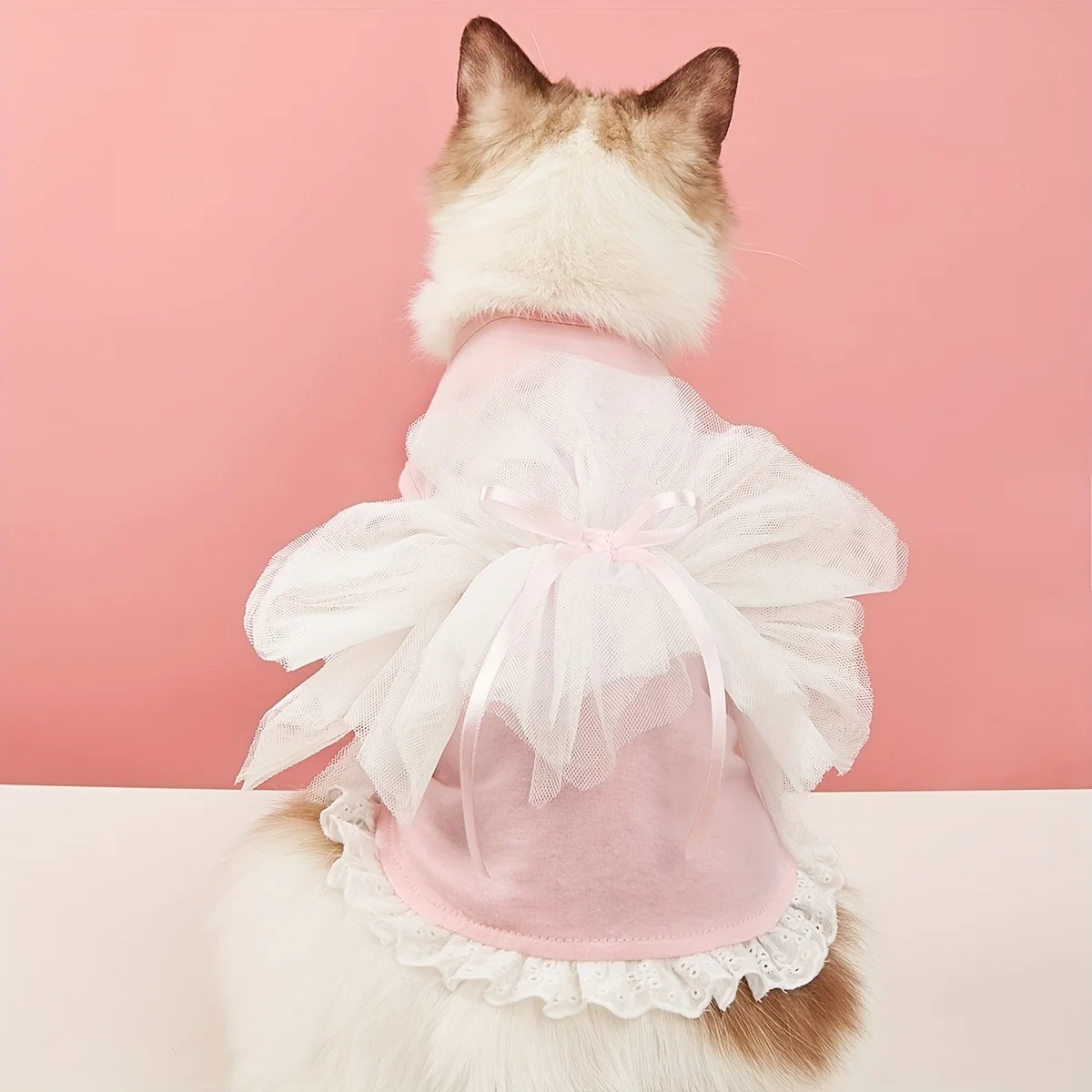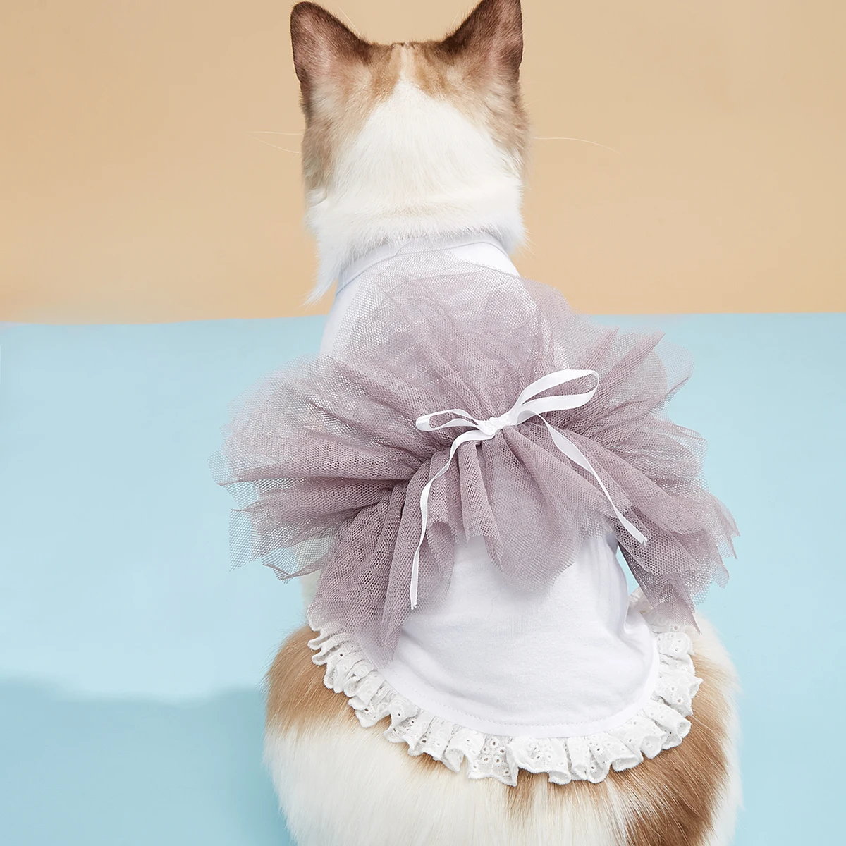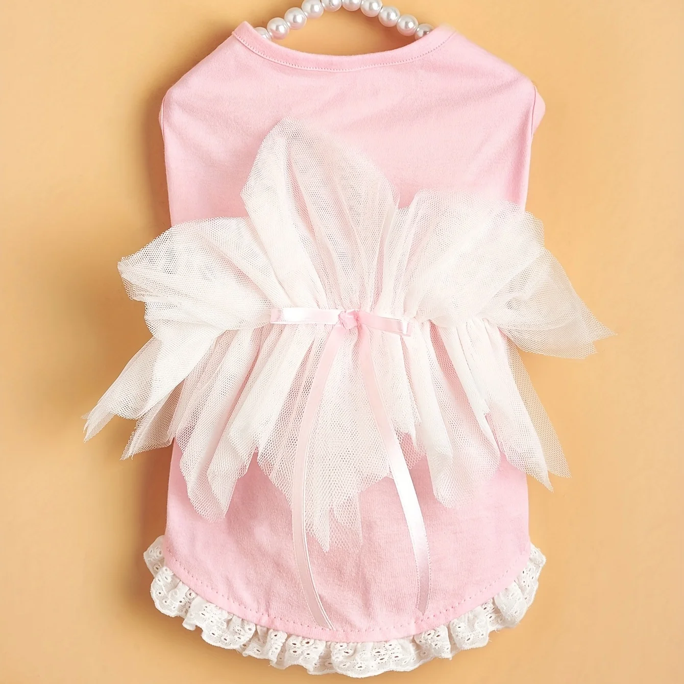 Vestido único sin mangas para mascotas, alas de tul y detalles de encaje, falda de princesa blanca, rosa y morada, perfecta para gatos, perros y cachorros