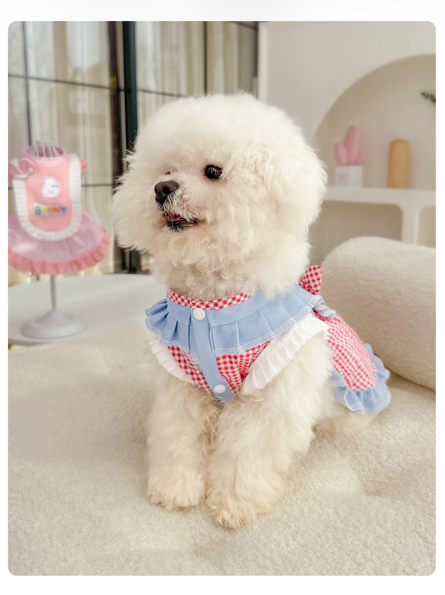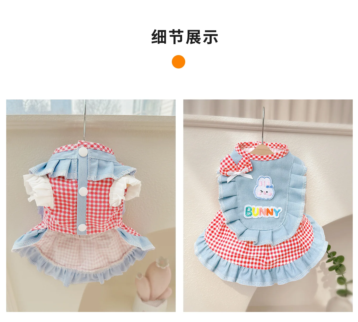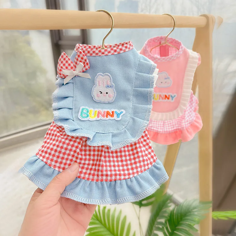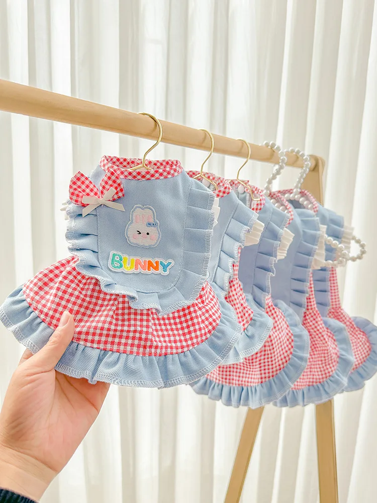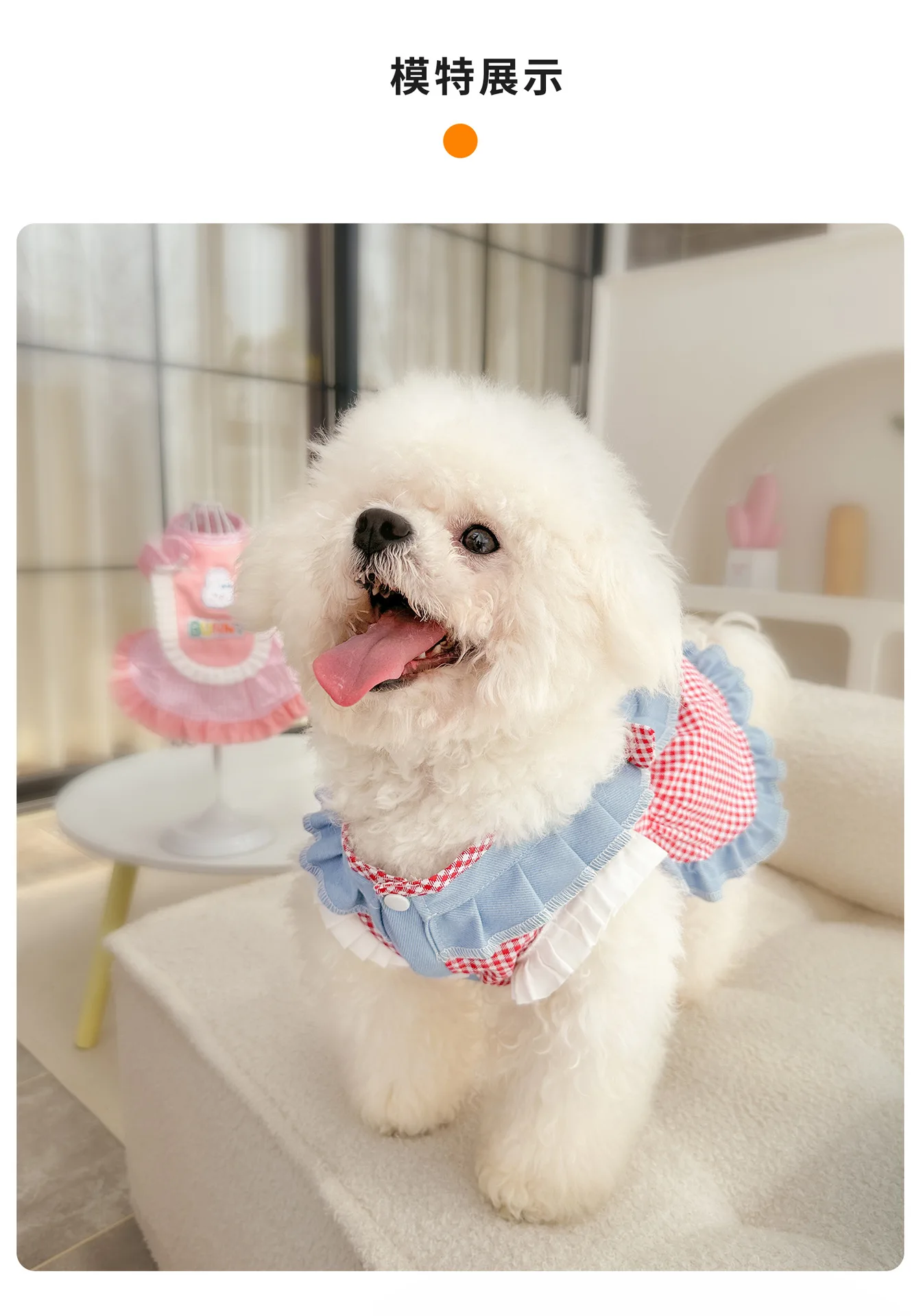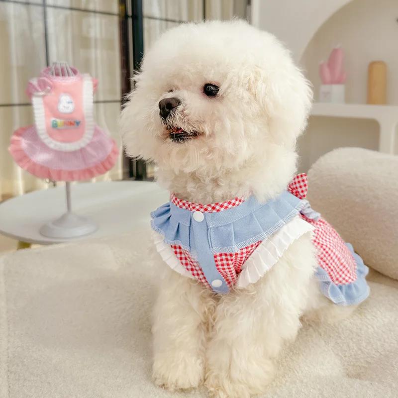Vestido vaquero a cuadros de primavera para mascotas, vestido de princesa para mascotas, ropa para perros pequeños y cachorros