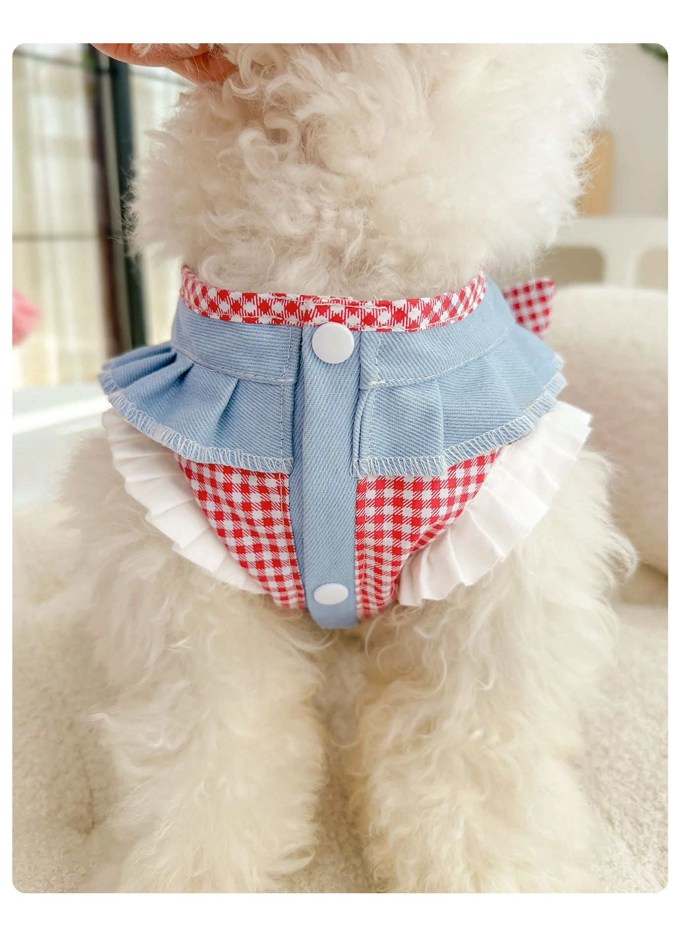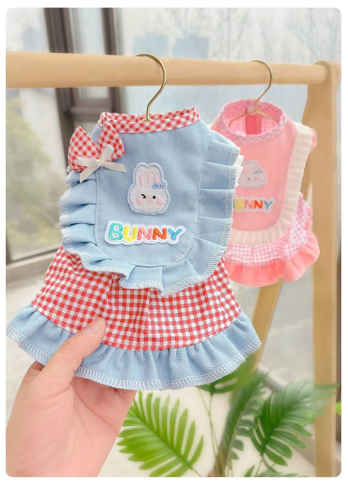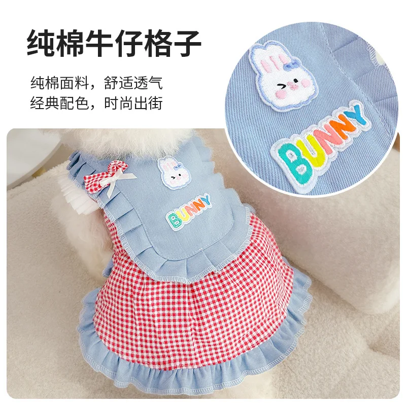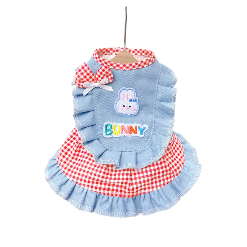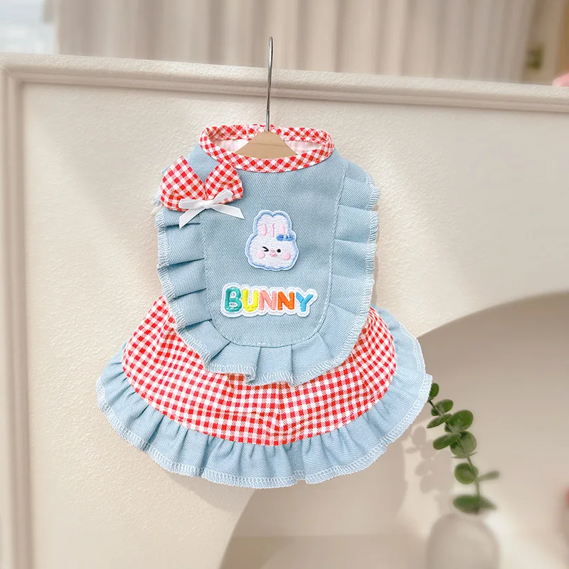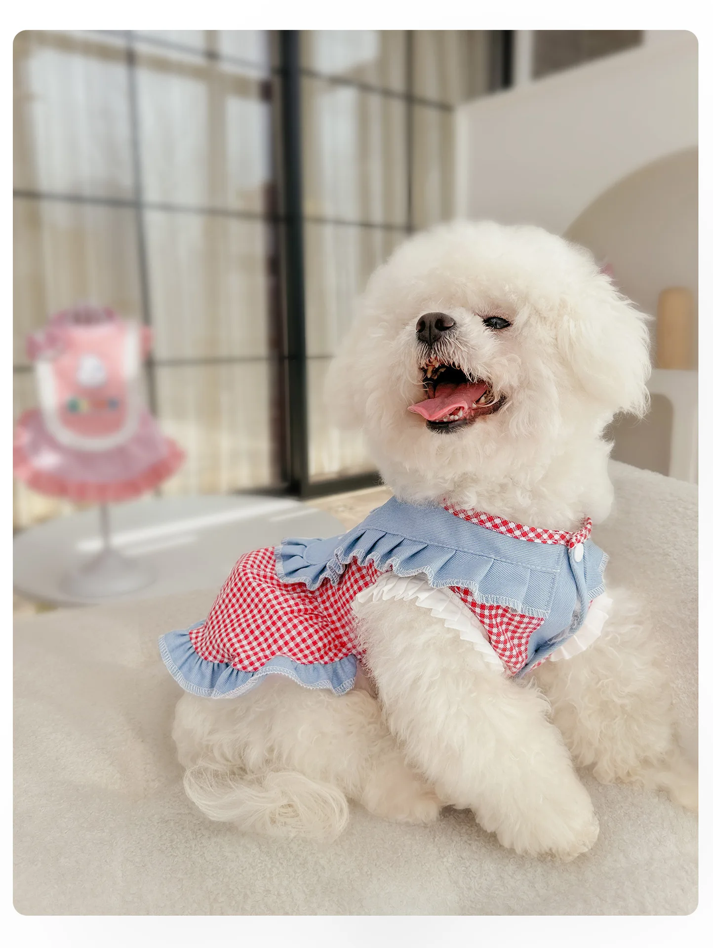 Vestido vaquero a cuadros de primavera para mascotas, vestido de princesa para mascotas, ropa para perros pequeños y cachorros