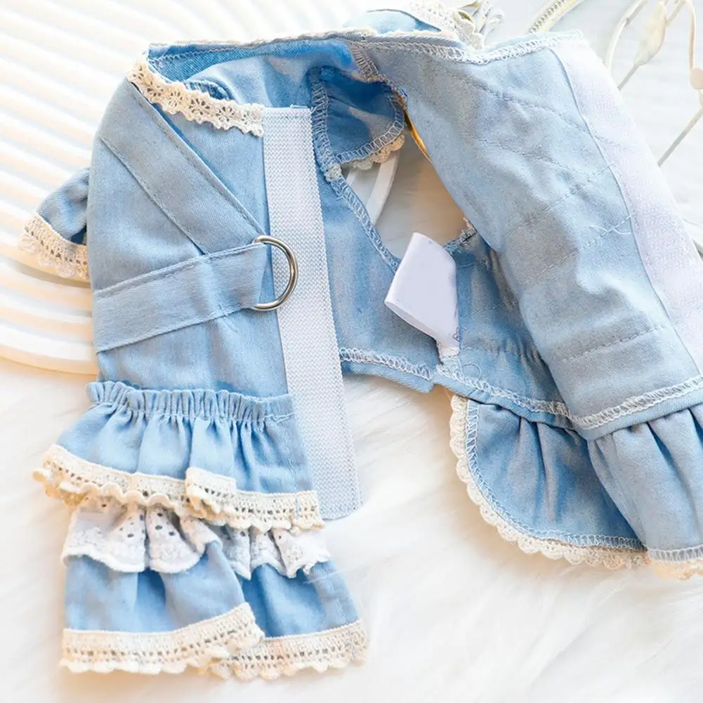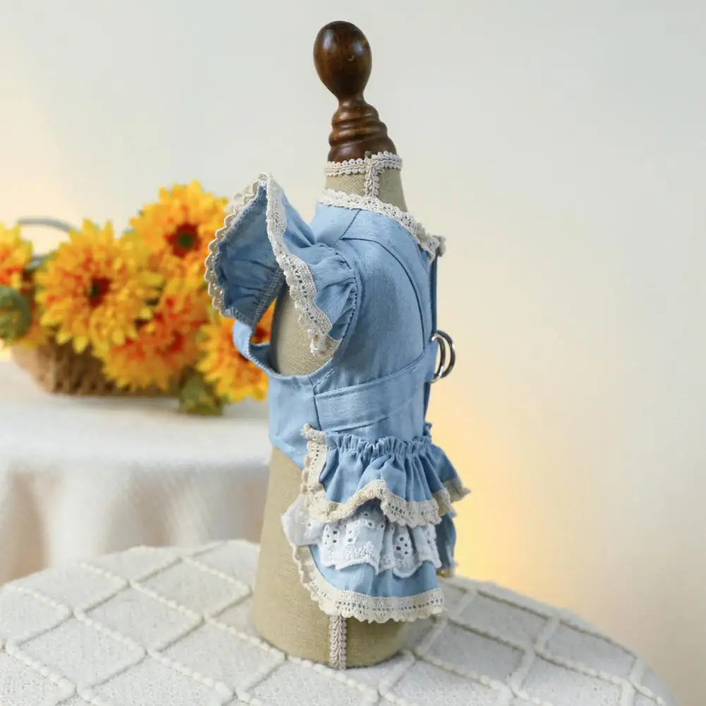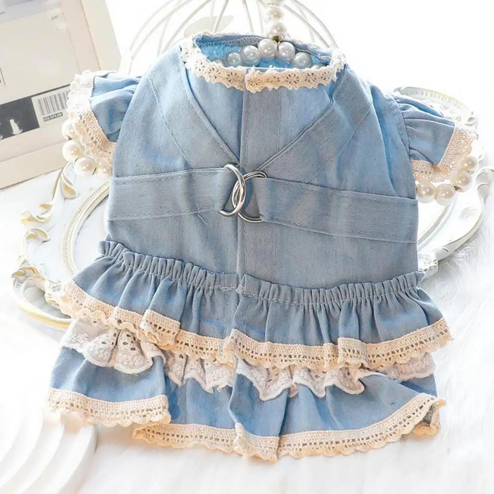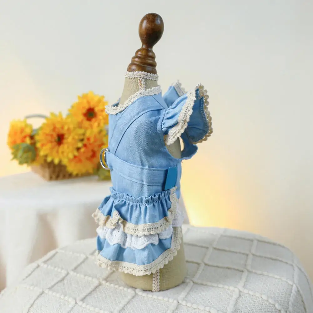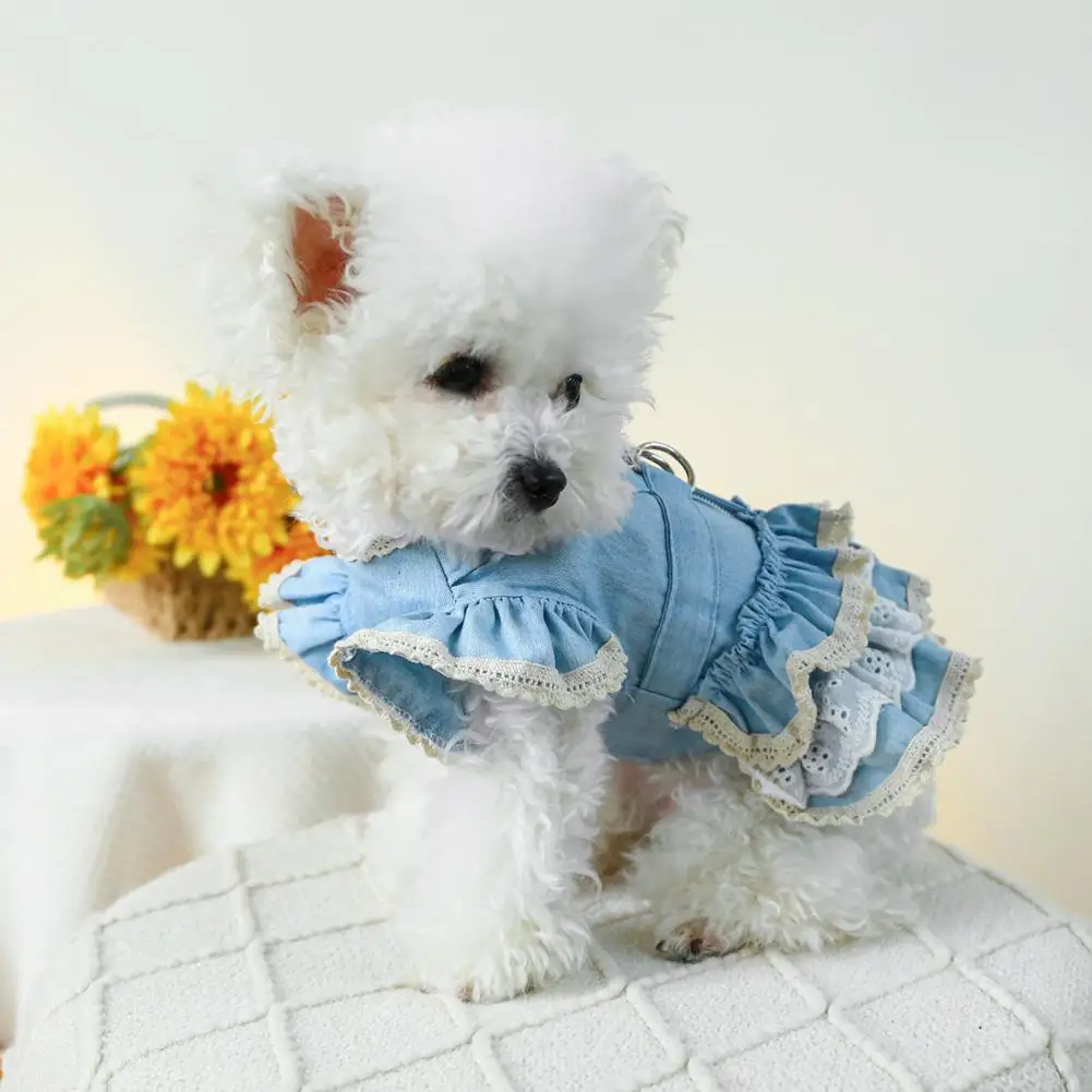 Vestido para mascotas Mangas con volantes Perro Vestido de mezclilla Cómodo perro Princesa Vestido con anillo de tracción Suministros para mascotas