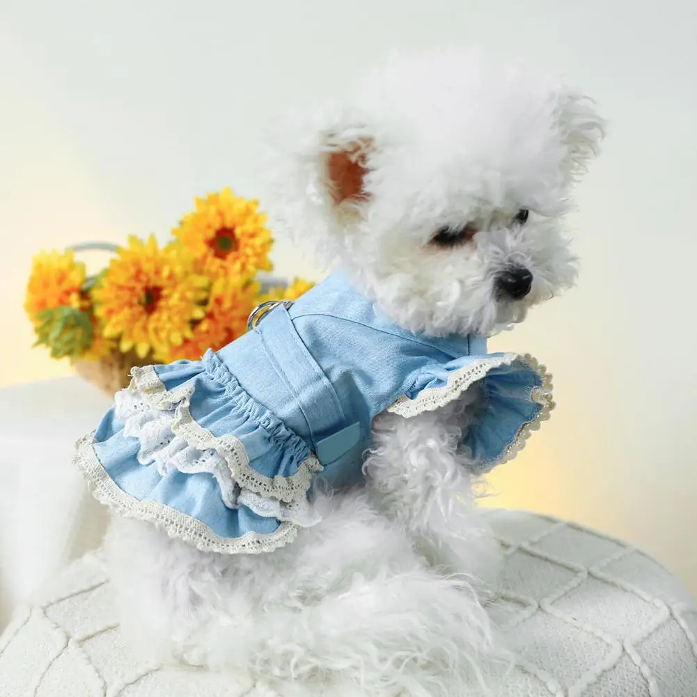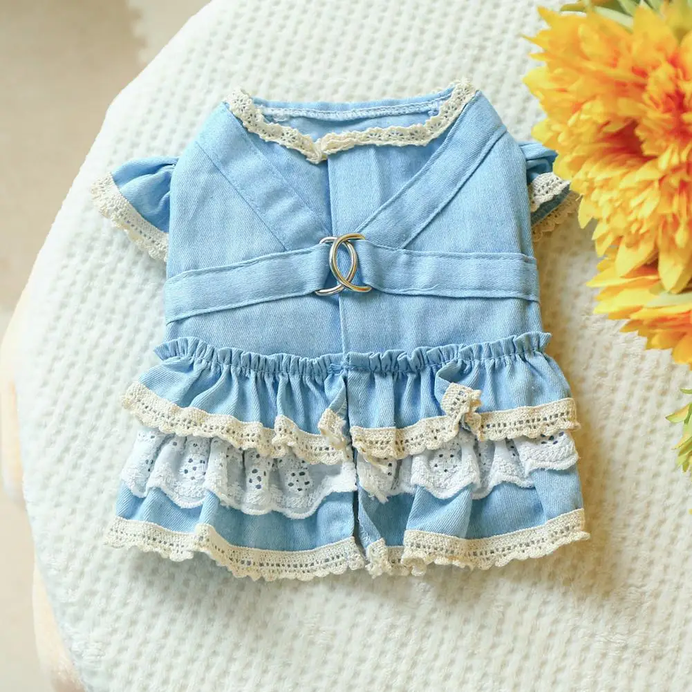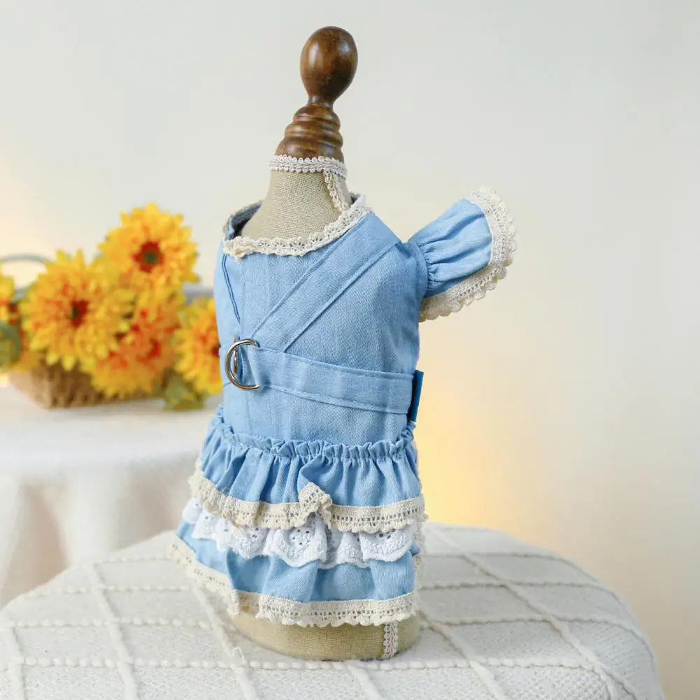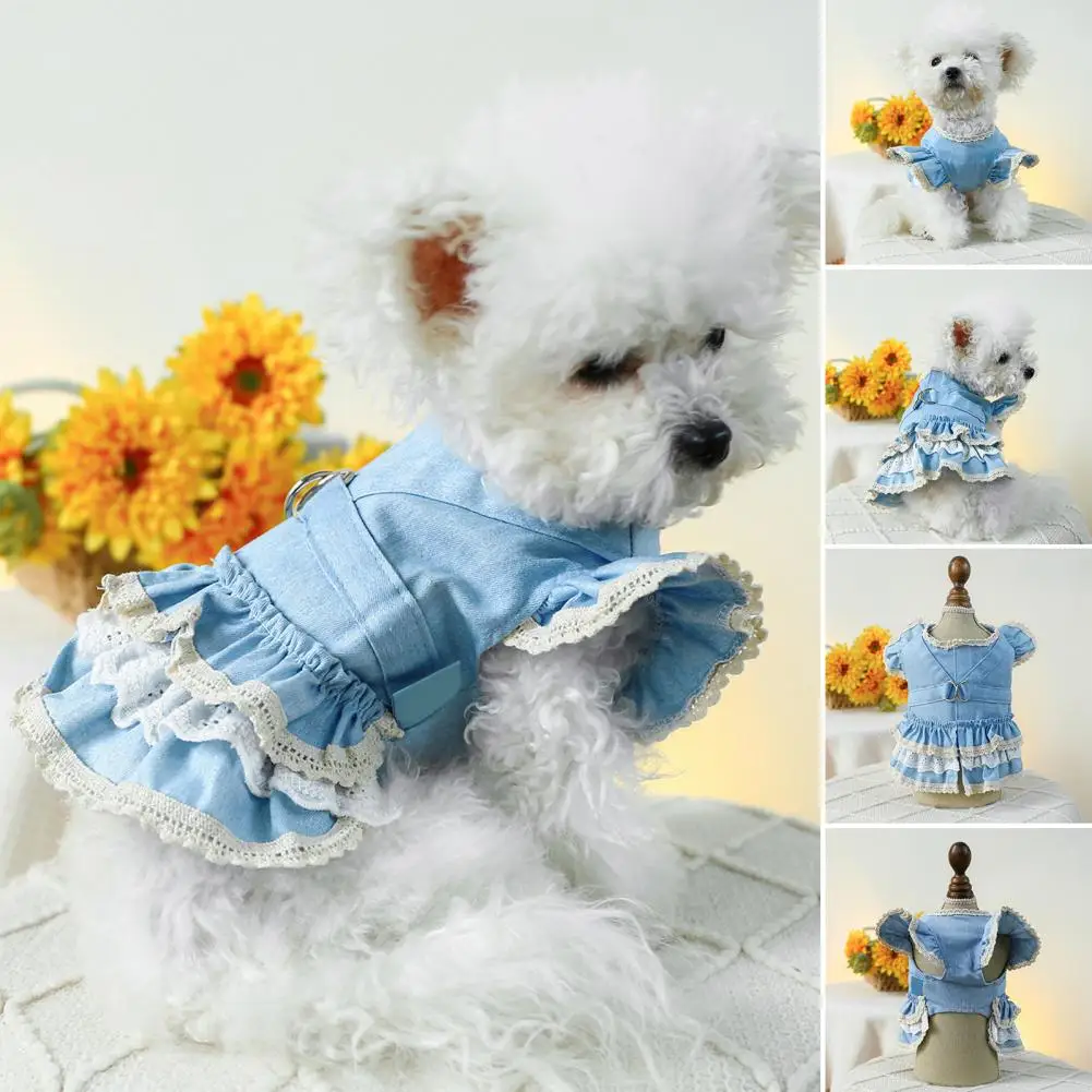 Vestido para mascotas Mangas con volantes Perro Vestido de mezclilla Cómodo perro Princesa Vestido con anillo de tracción Suministros para mascotas