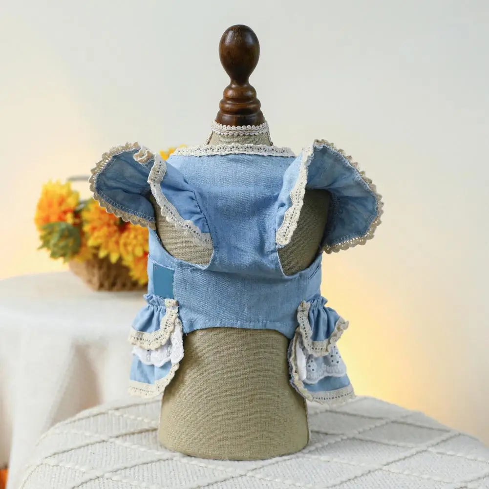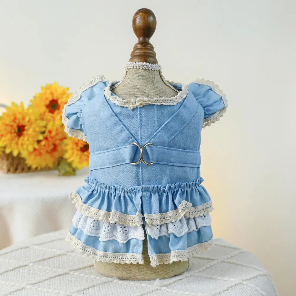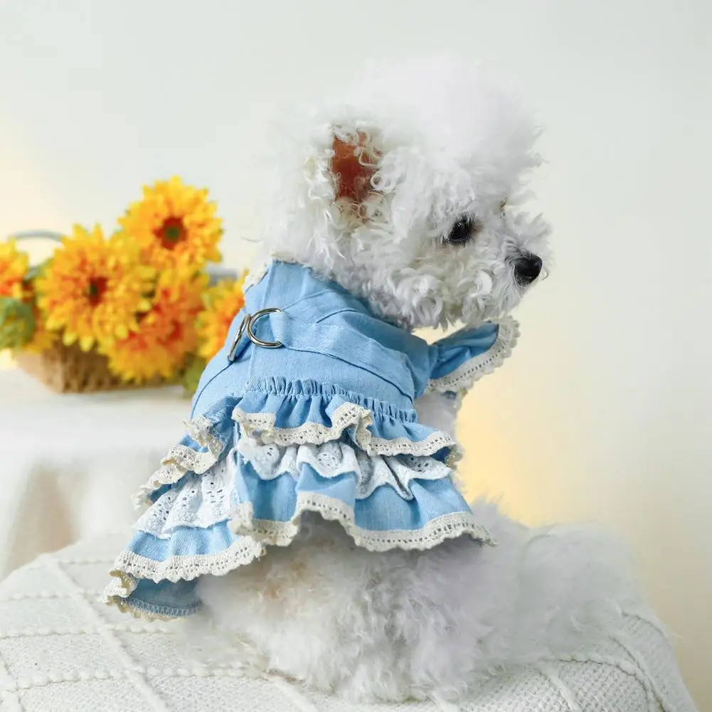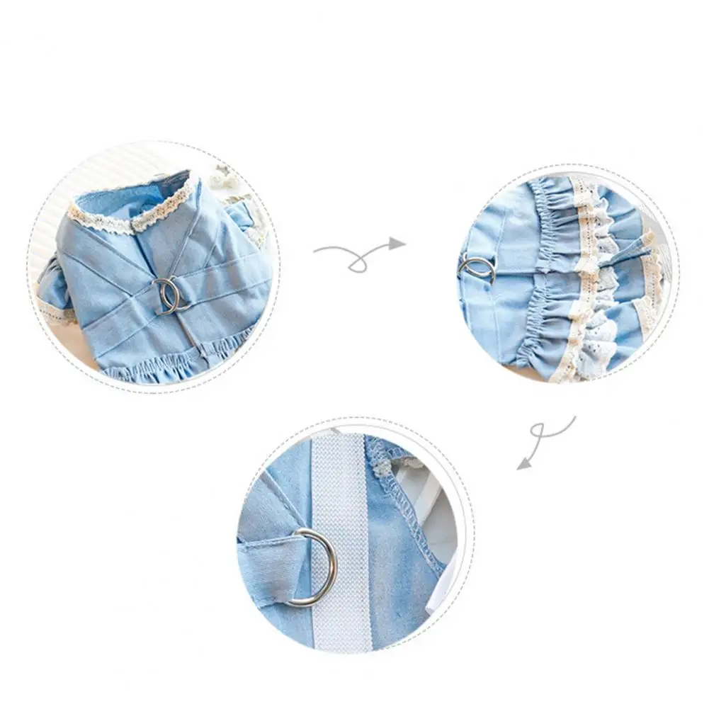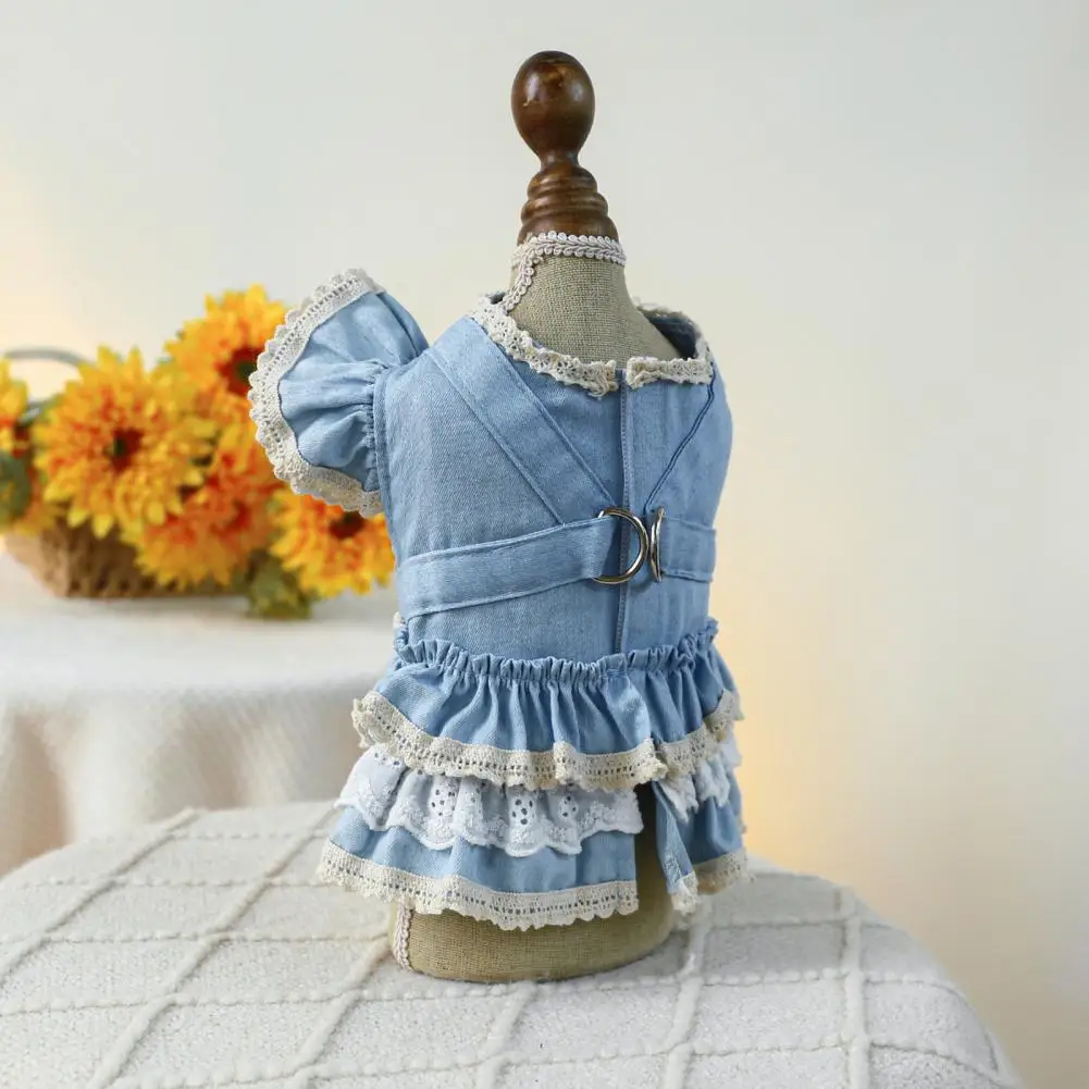 Vestido para mascotas Mangas con volantes Perro Vestido de mezclilla Cómodo perro Princesa Vestido con anillo de tracción Suministros para mascotas
