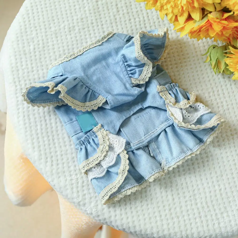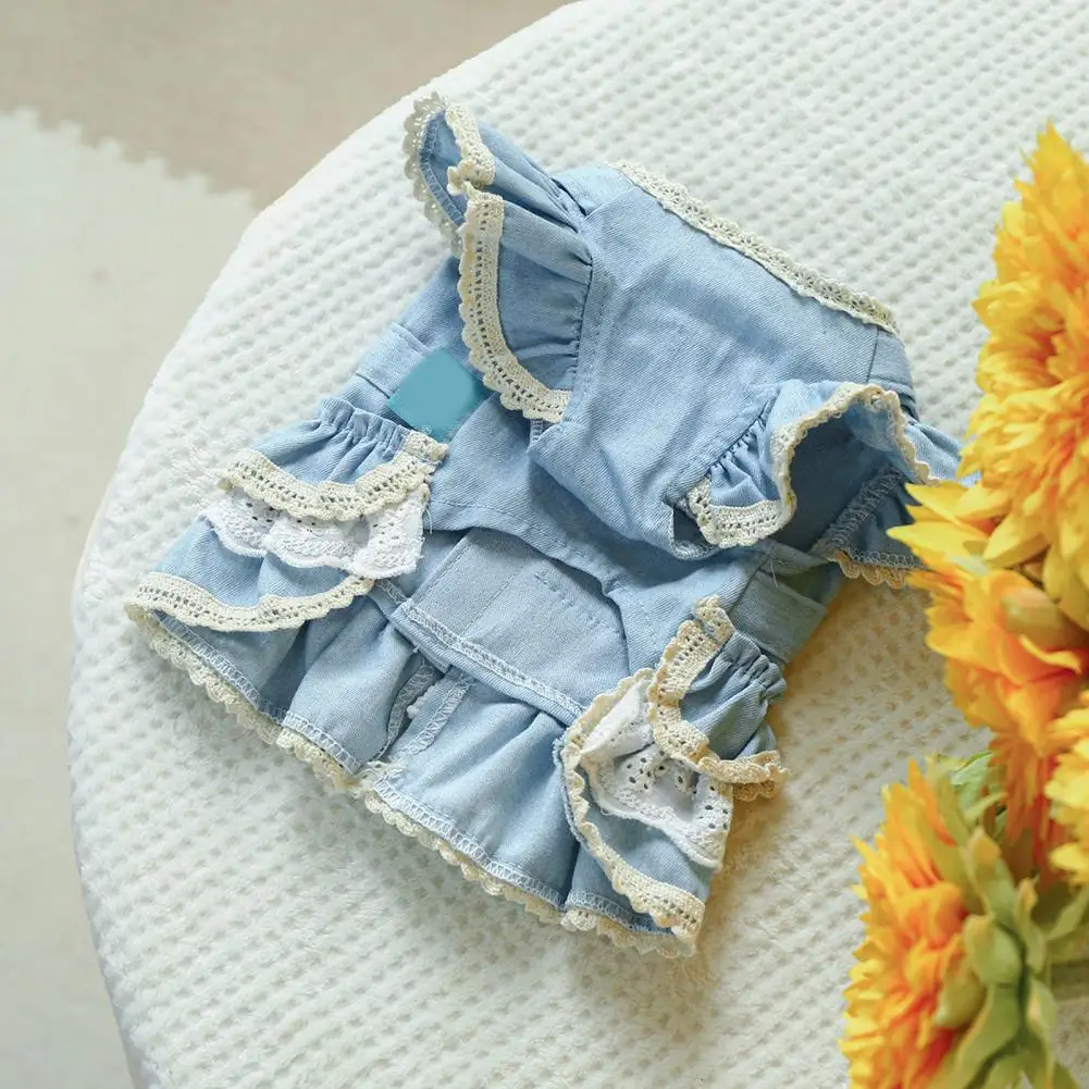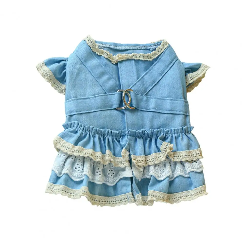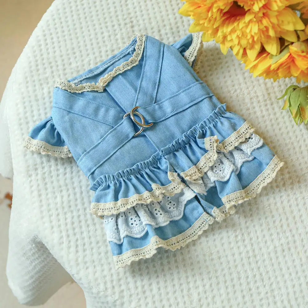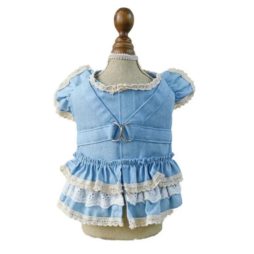 Vestido para mascotas Mangas con volantes Perro Vestido de mezclilla Cómodo perro Princesa Vestido con anillo de tracción Suministros para mascotas