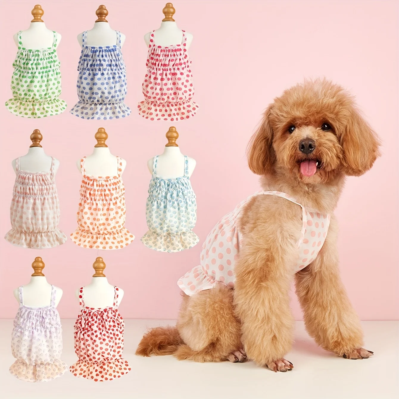 Vestido veraniego colorido de lunares para perros y niñas, vestido para mascotas pequeñas transpirable multicolor, ropa bonita sin mangas para cachorros, falda de ropa de verano