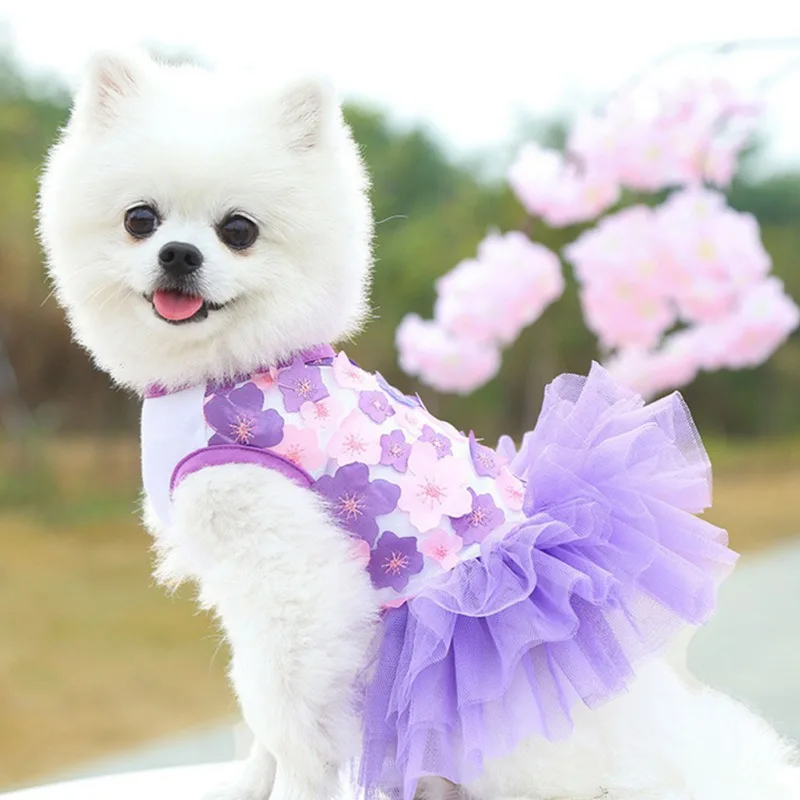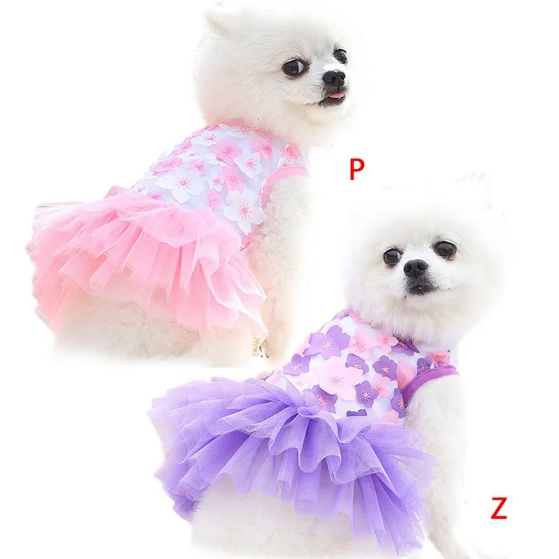 Vestido de Princesa para Perros y Gatos, Vestido de Gasa Floral para Mascotas, Ropa de Verano para Perros y Gatos