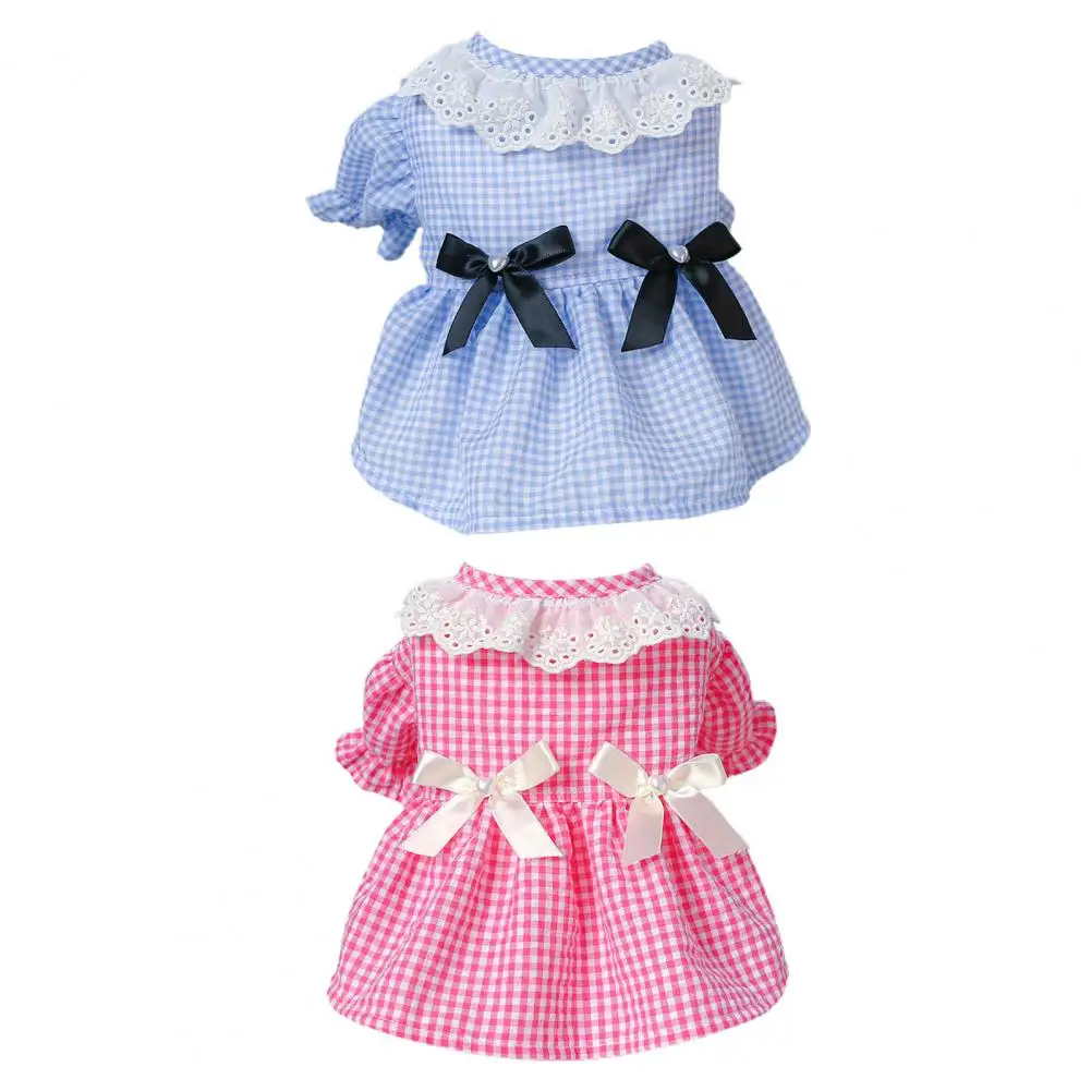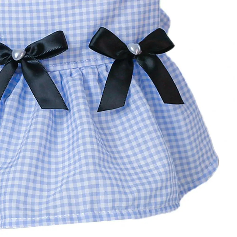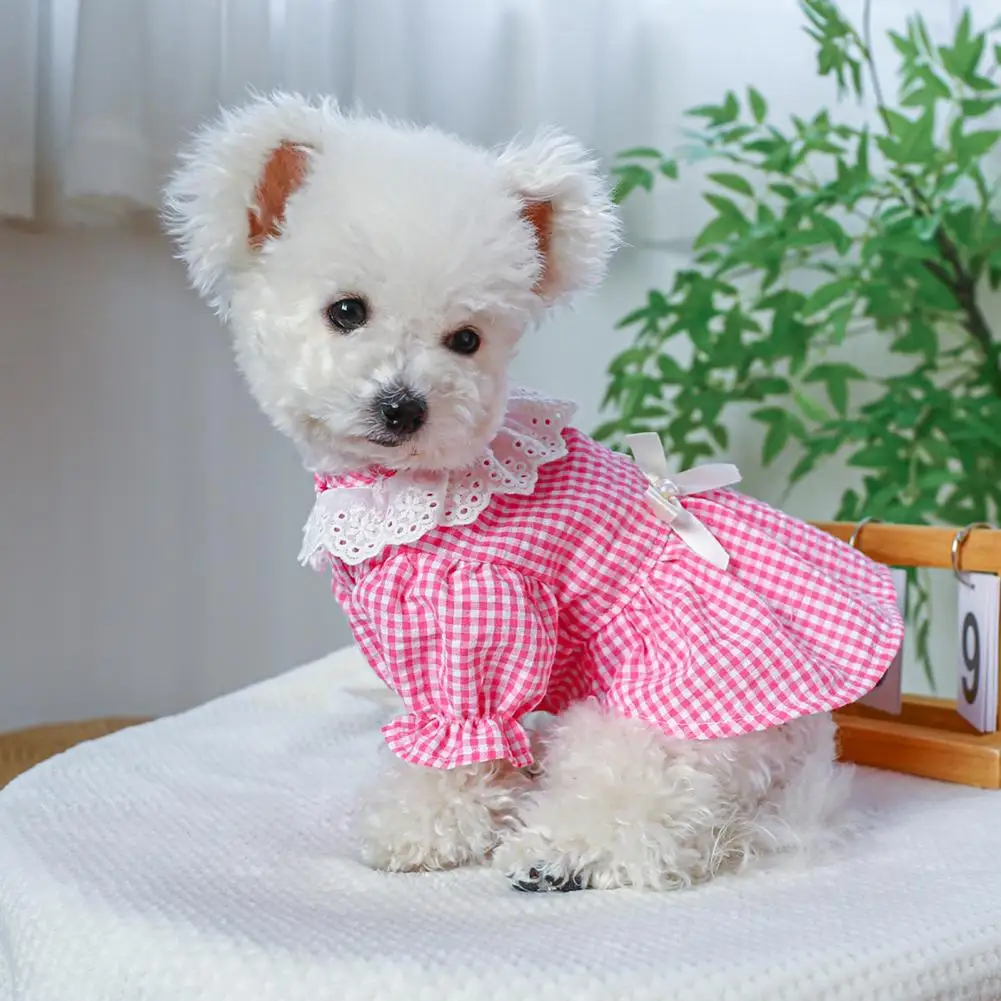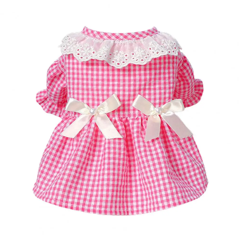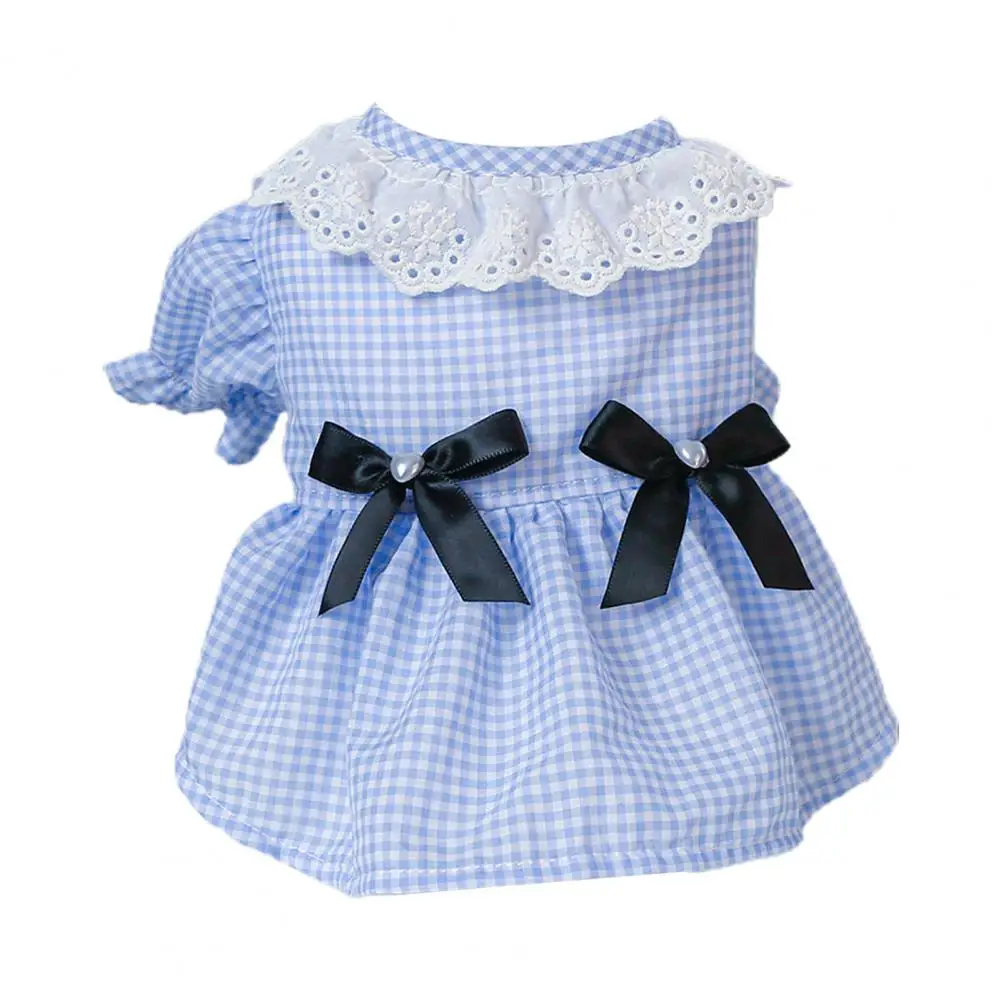 El vestido para mascotas tiene estampado a cuadros, cuello de encaje, decoración de lazo, mano de obra exquisita y colores brillantes. Se cierra con botones y es fácil de poner y quitar.
