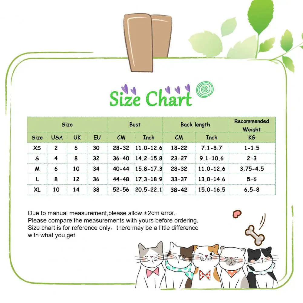 XS, pecho: 28cm-32cm/11,02 "-12,6", longitud de espalda: 18cm-22cm/7,09 "-8,66", peso recomendado: dentro de 1,5 kg (aprox.)