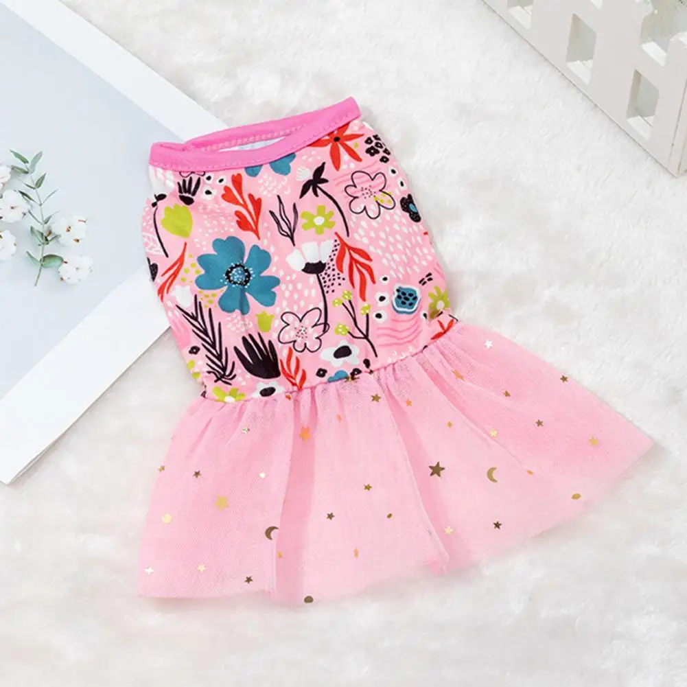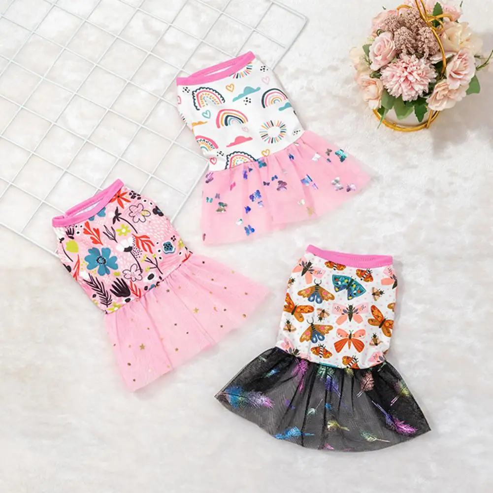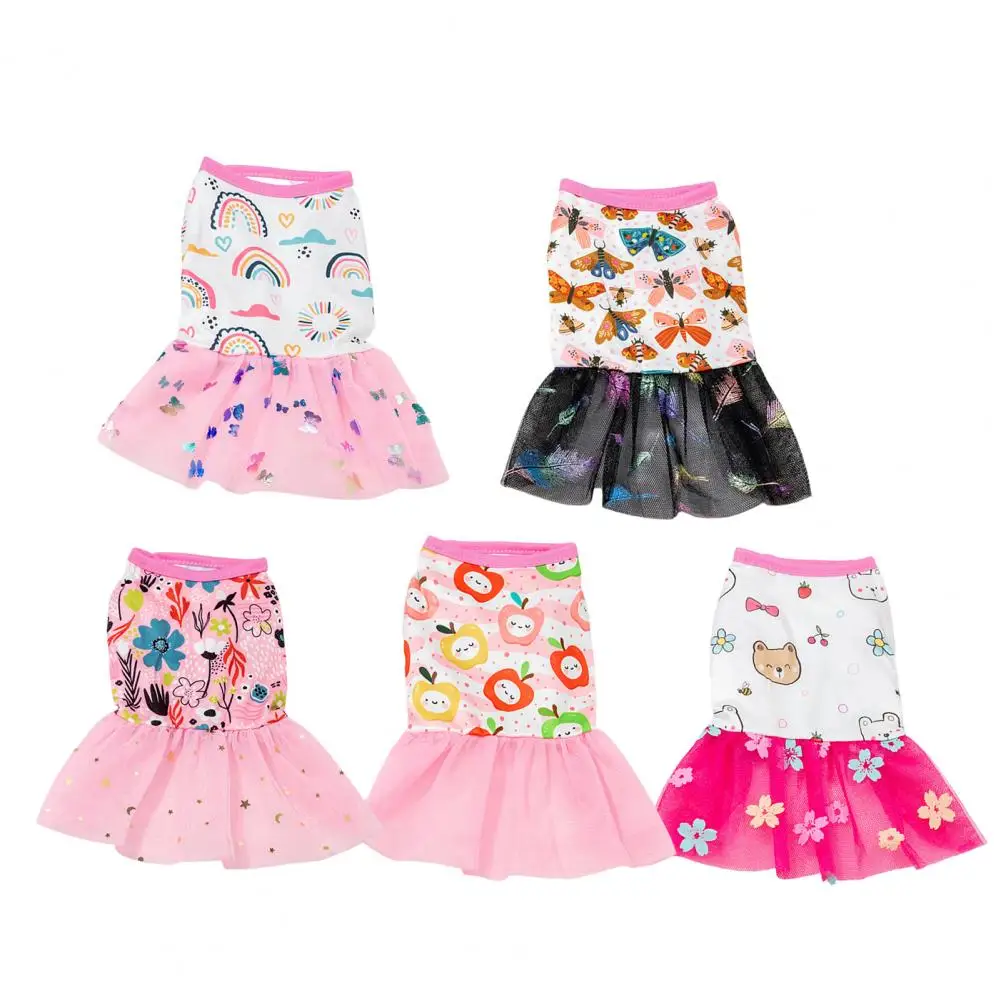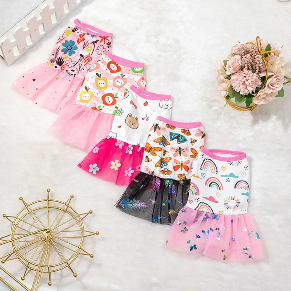 Vestido de verano para perros, traje de moda con dobladillo de encaje, camiseta sin mangas con tirantes estampados, vestido de princesa para mascotas para cachorros y gatos