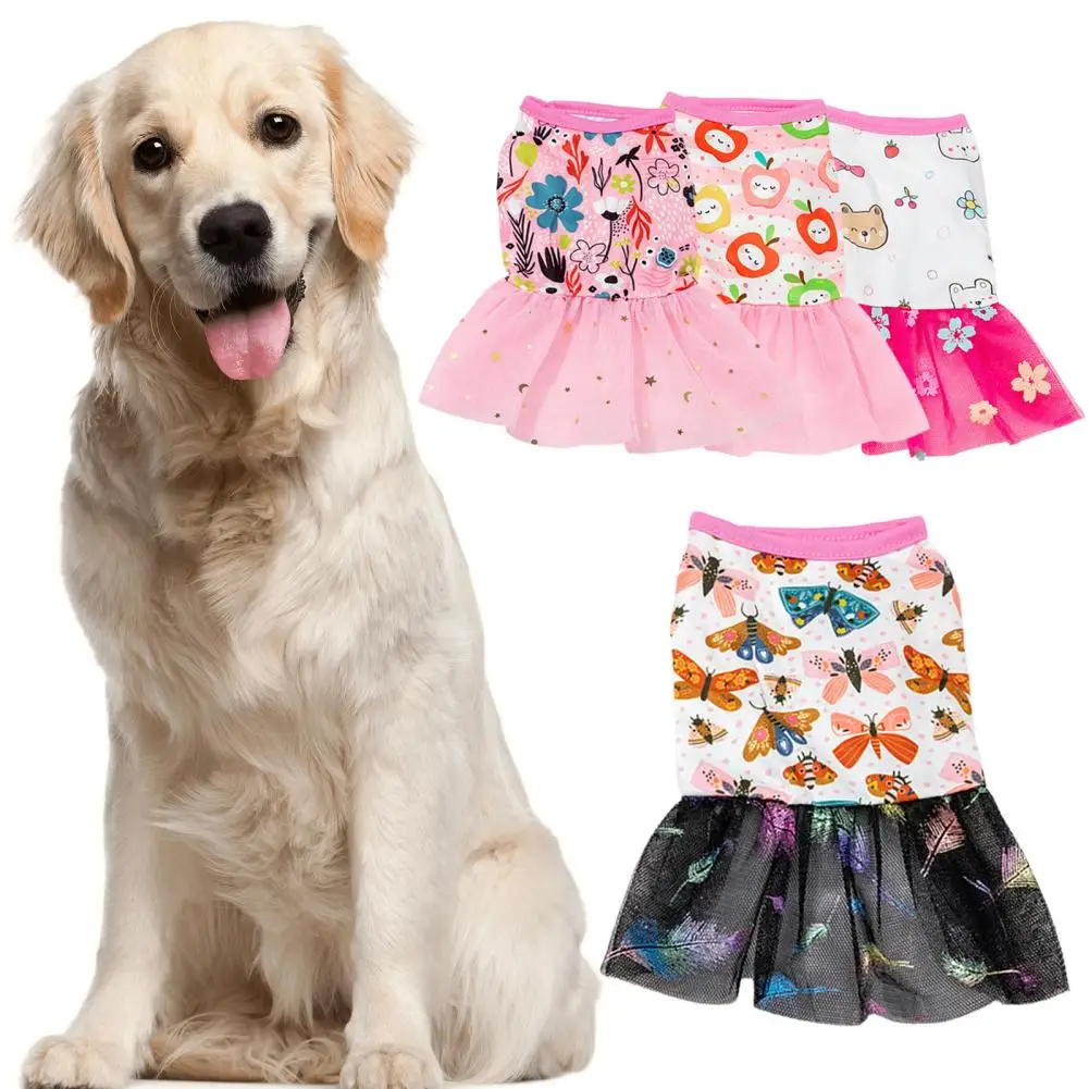 Con las características de un bonito estampado y dobladillo de encaje, el vestido sin mangas para mascotas está muy de moda y hace que el perro se vea más encantador y atractivo. El perro no se siente apretado al llevarlo, debido a que es suave y elástico.