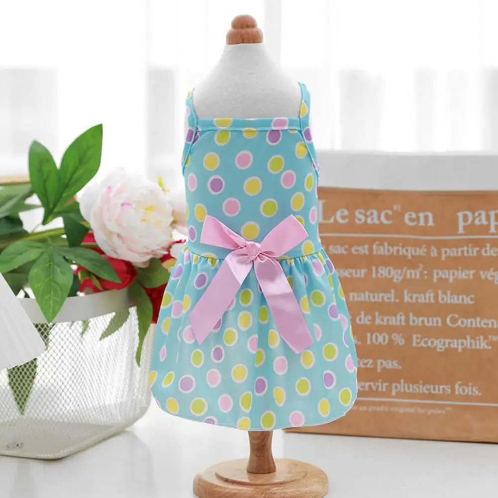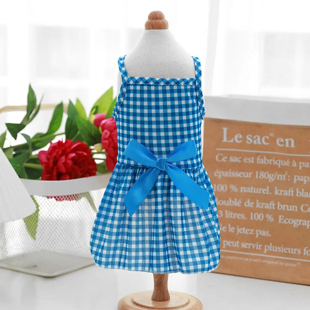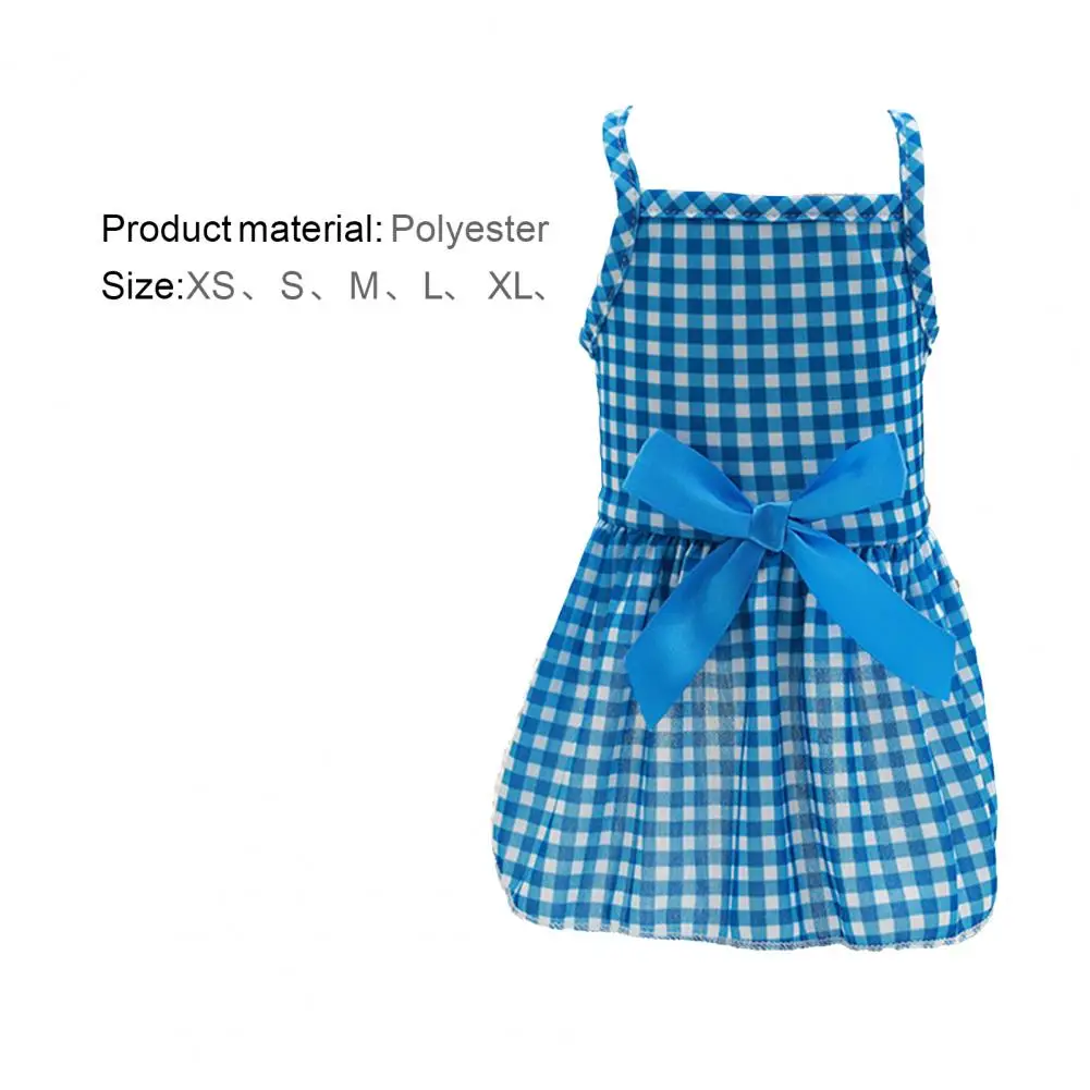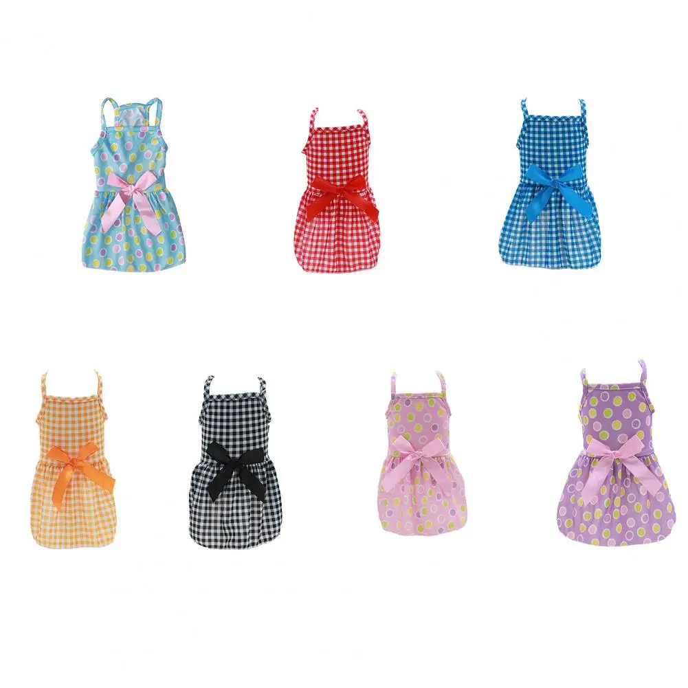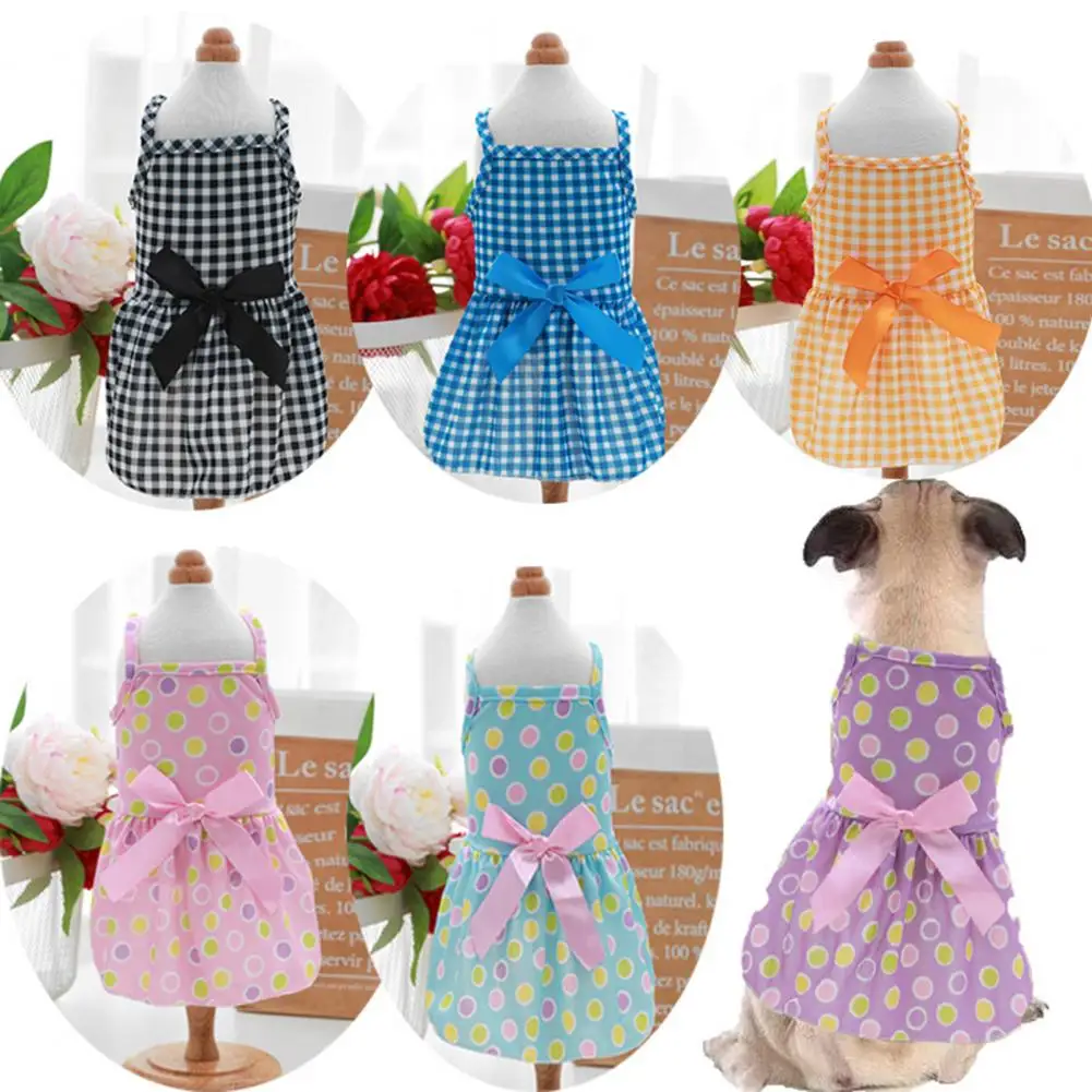 Vestido para mascotas con estampado de puntos a cuadros, decoración con lazo, cuello cuadrado, ropa de gatito de verano, trajes para perros para el hogar