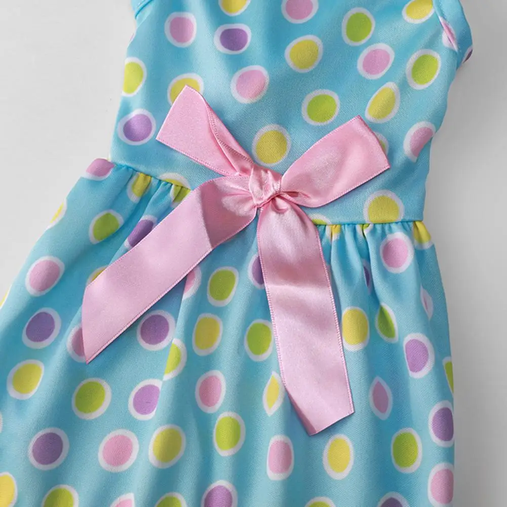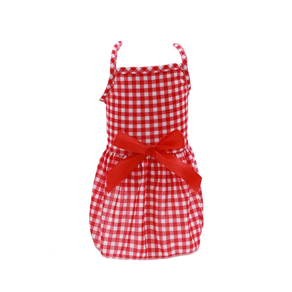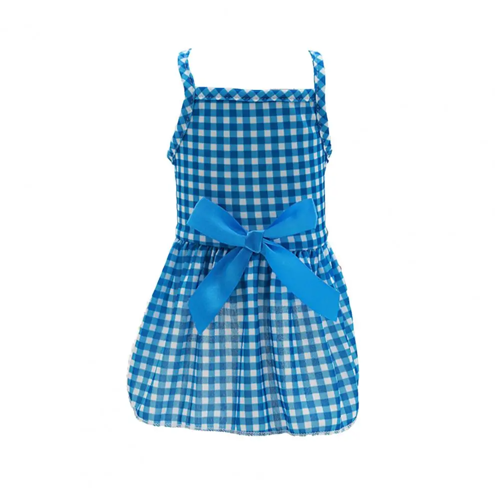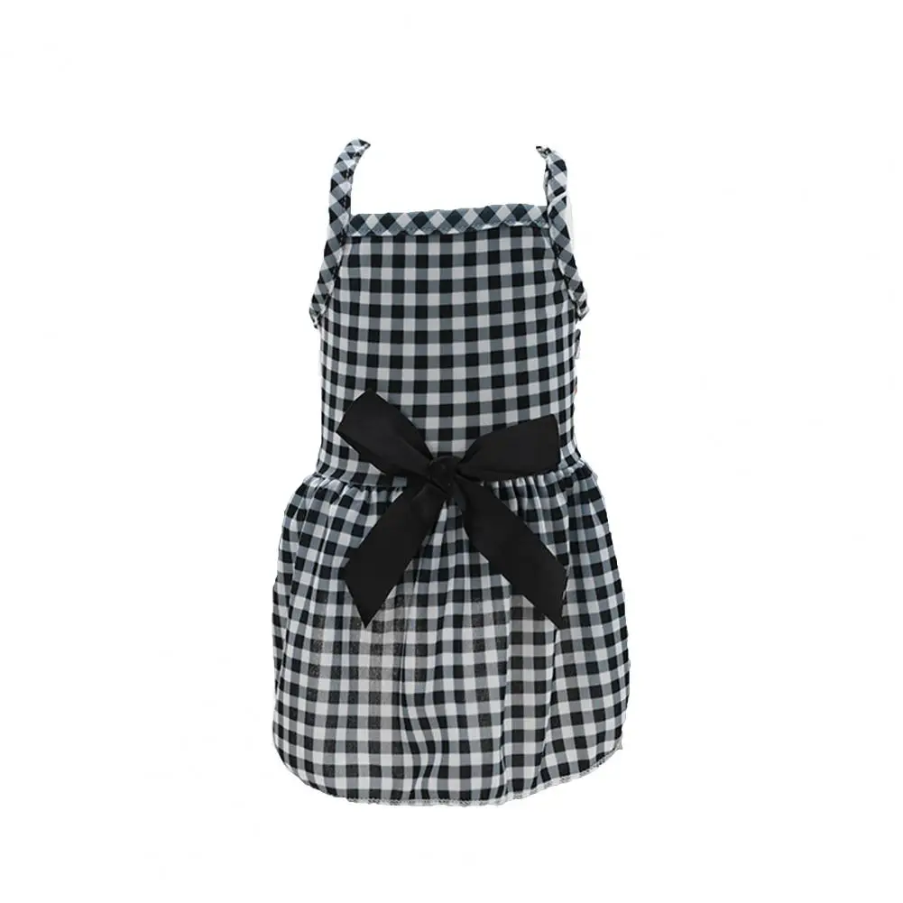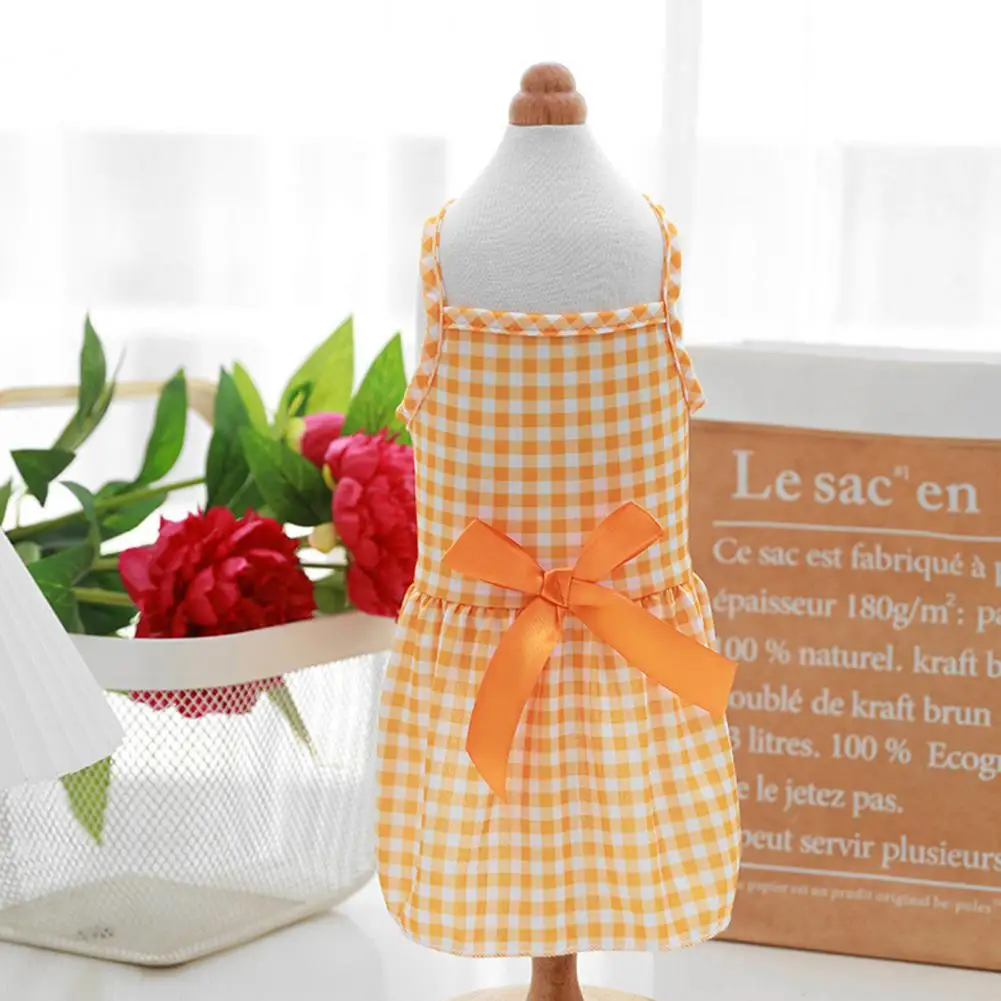 Vestido para mascotas con estampado de puntos a cuadros, decoración con lazo, cuello cuadrado, ropa de gatito de verano, trajes para perros para el hogar