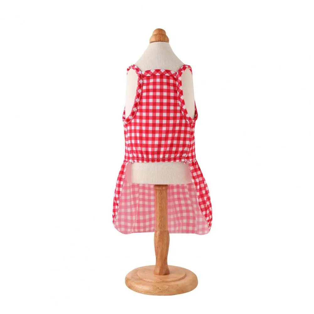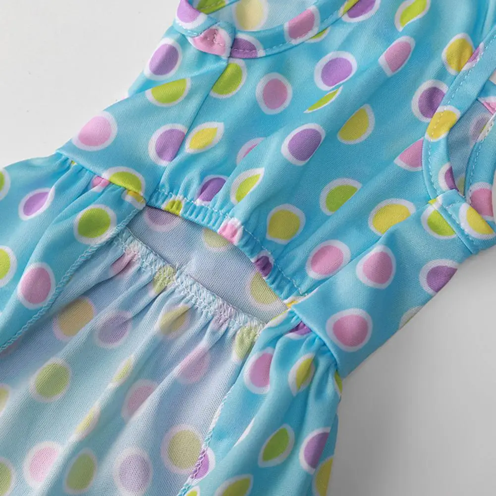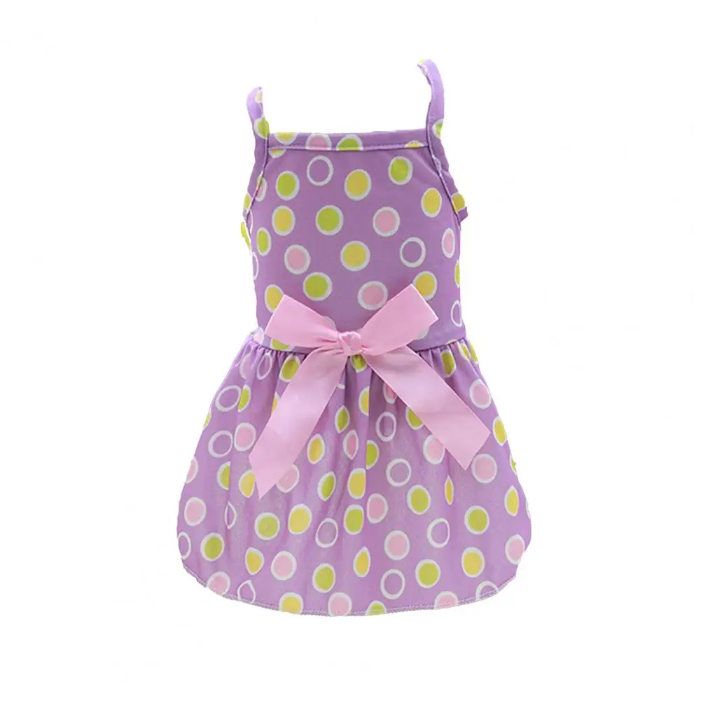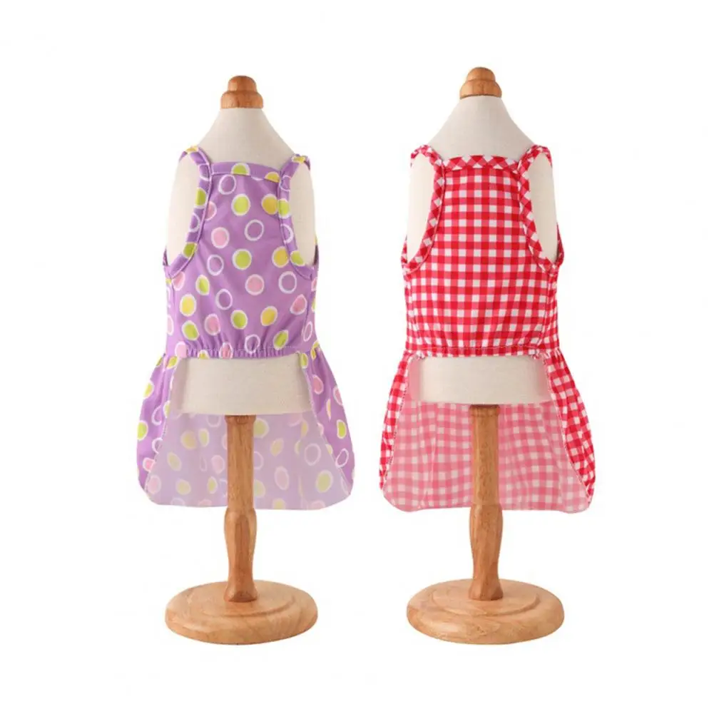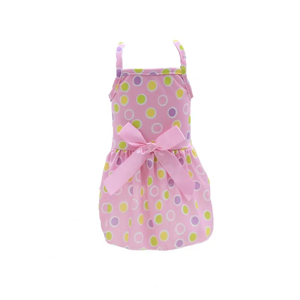 Vestido para mascotas con estampado de puntos a cuadros, decoración con lazo, cuello cuadrado, ropa de gatito de verano, trajes para perros para el hogar
