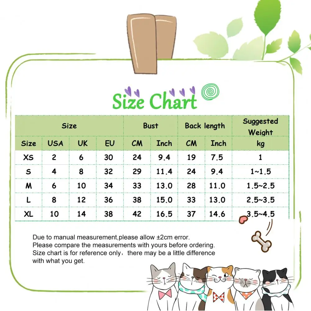 Tamaño: XS, circunferencia del busto: 24cm/9,4 ", longitud de espalda: 19cm/7,5", peso: 0-1KG (aprox.)