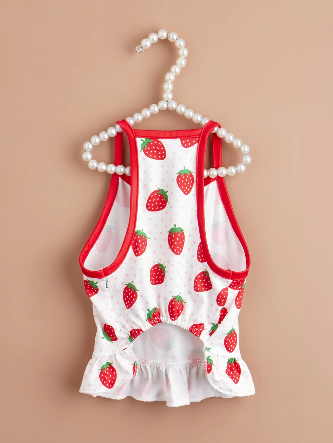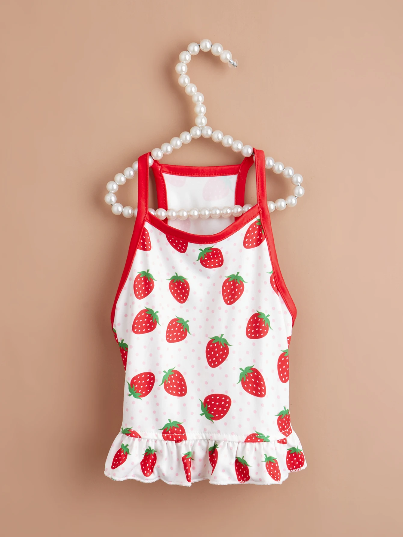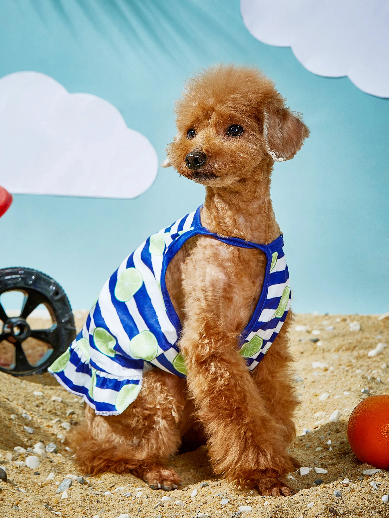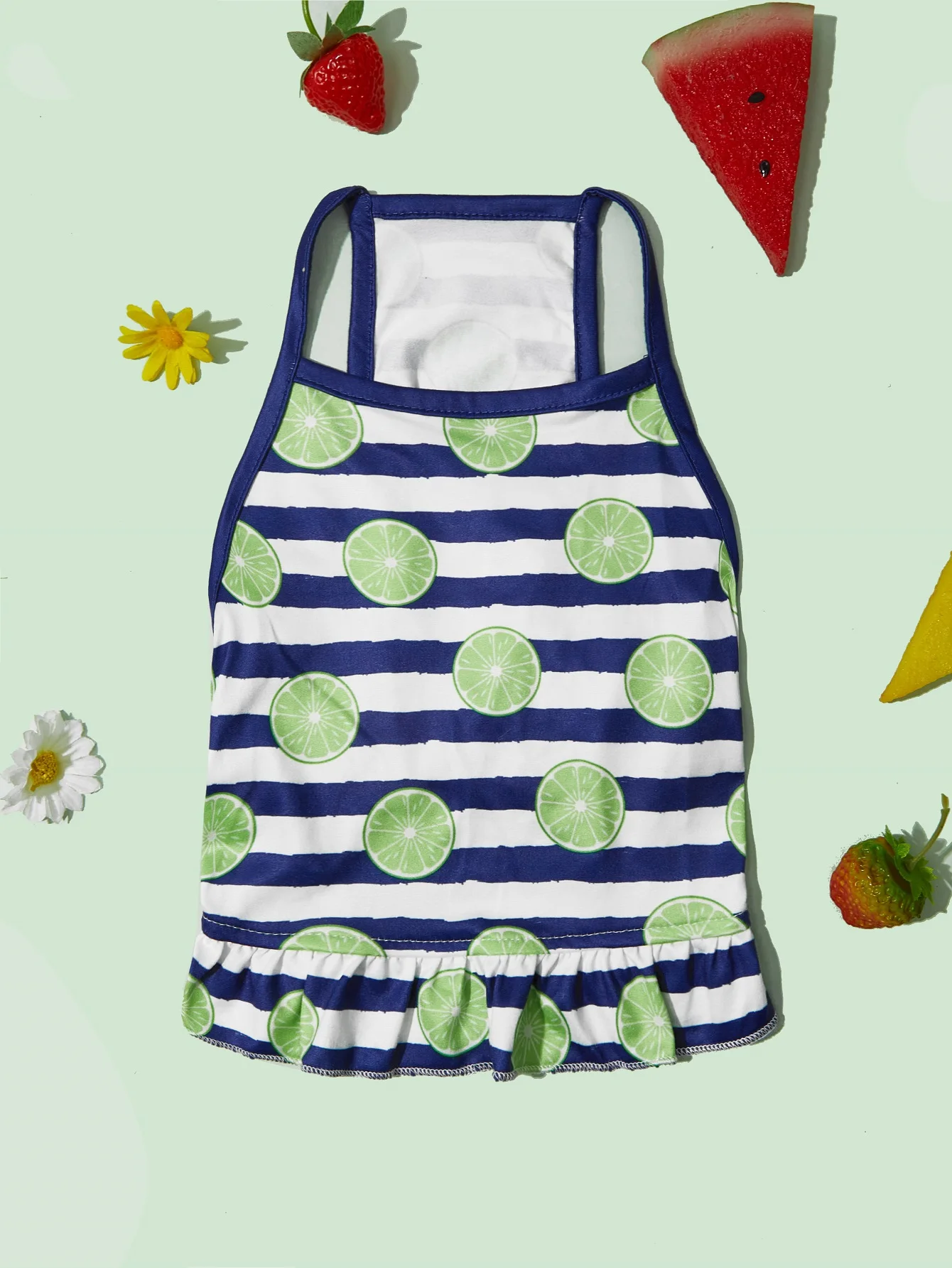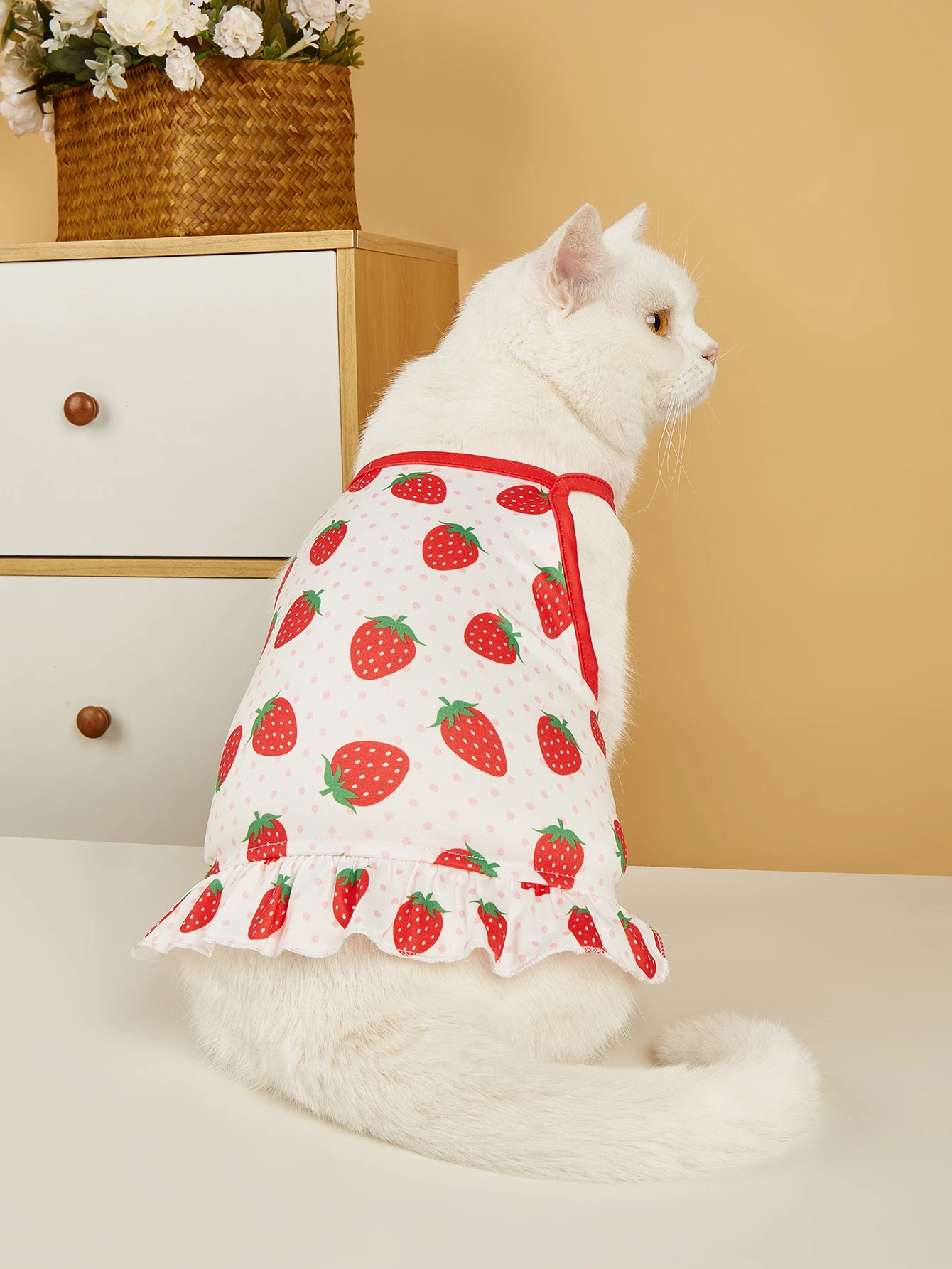 Vestido de verano para perros pequeños, estampado de fresa y lima, dobladillo con volantes, ropa para gatos, vestidos para cachorros y niñas con estampado de frutas