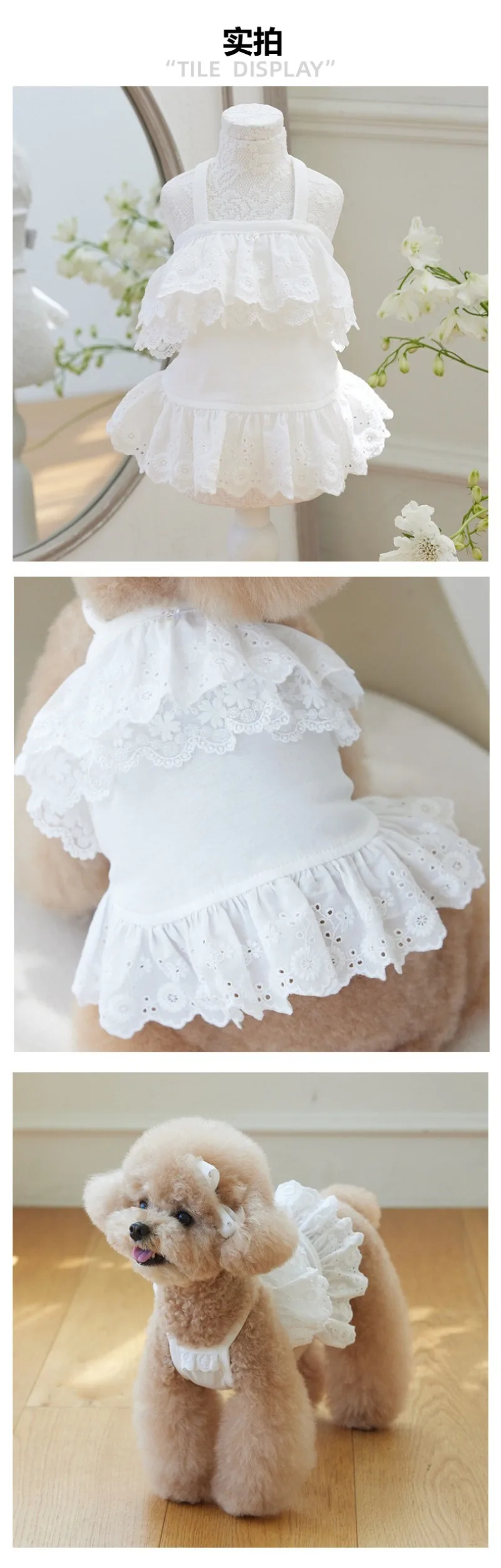 Vestidos blancos para mascotas, falda con tirantes de encaje de verano, camiseta sin mangas para perros y gatos, vestido de encaje para perros pequeños, vestidos para perros pequeños
