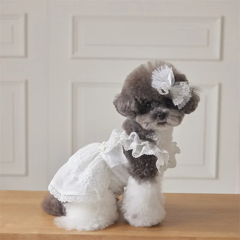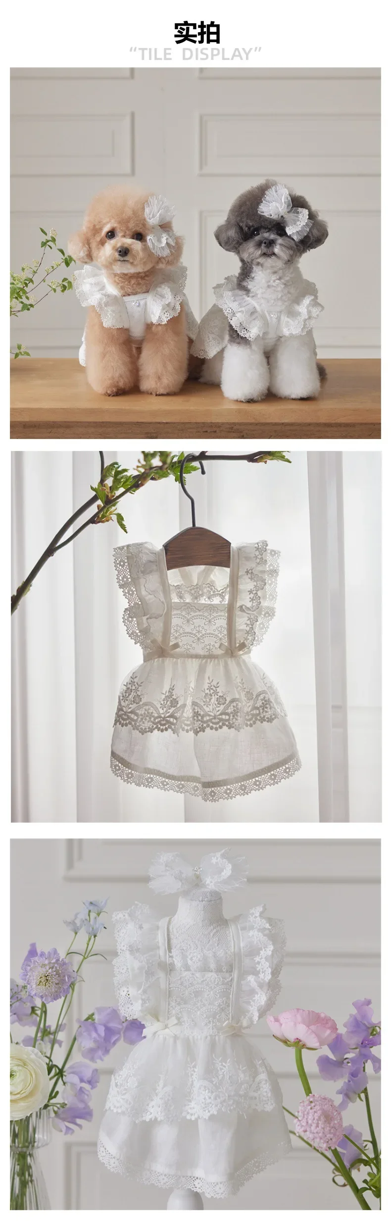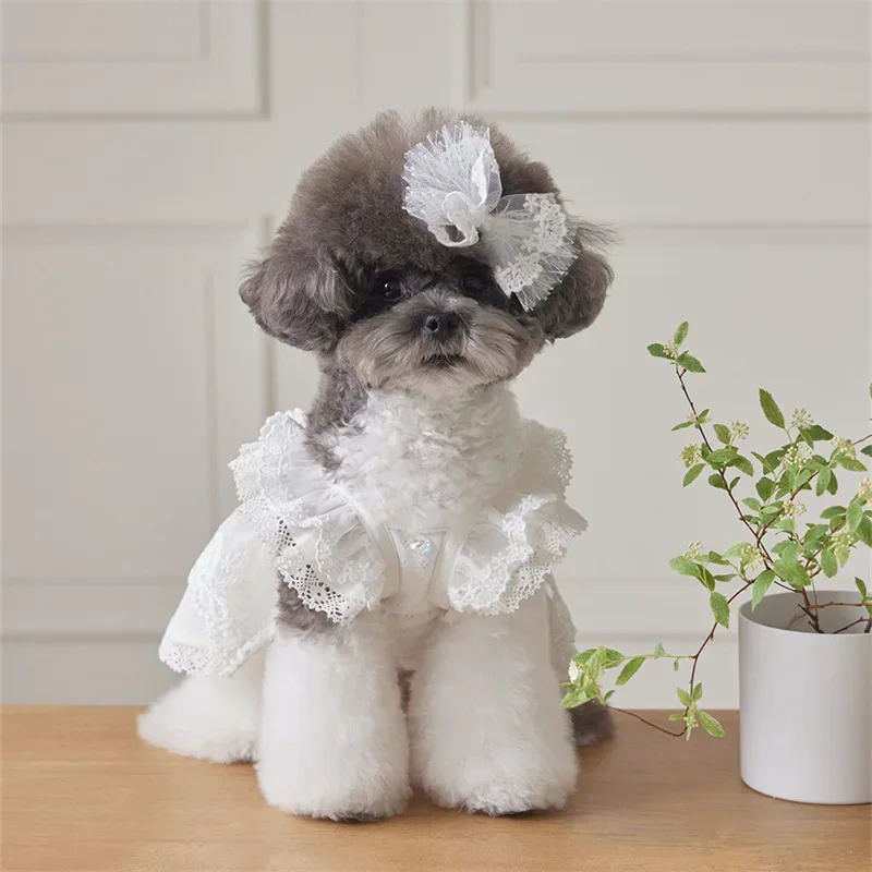 Vestidos blancos para mascotas, vestido de encaje con mangas voladoras para cachorros, Top para gatos, vestido de princesa de encaje para primavera y verano, vestidos para perros pequeños